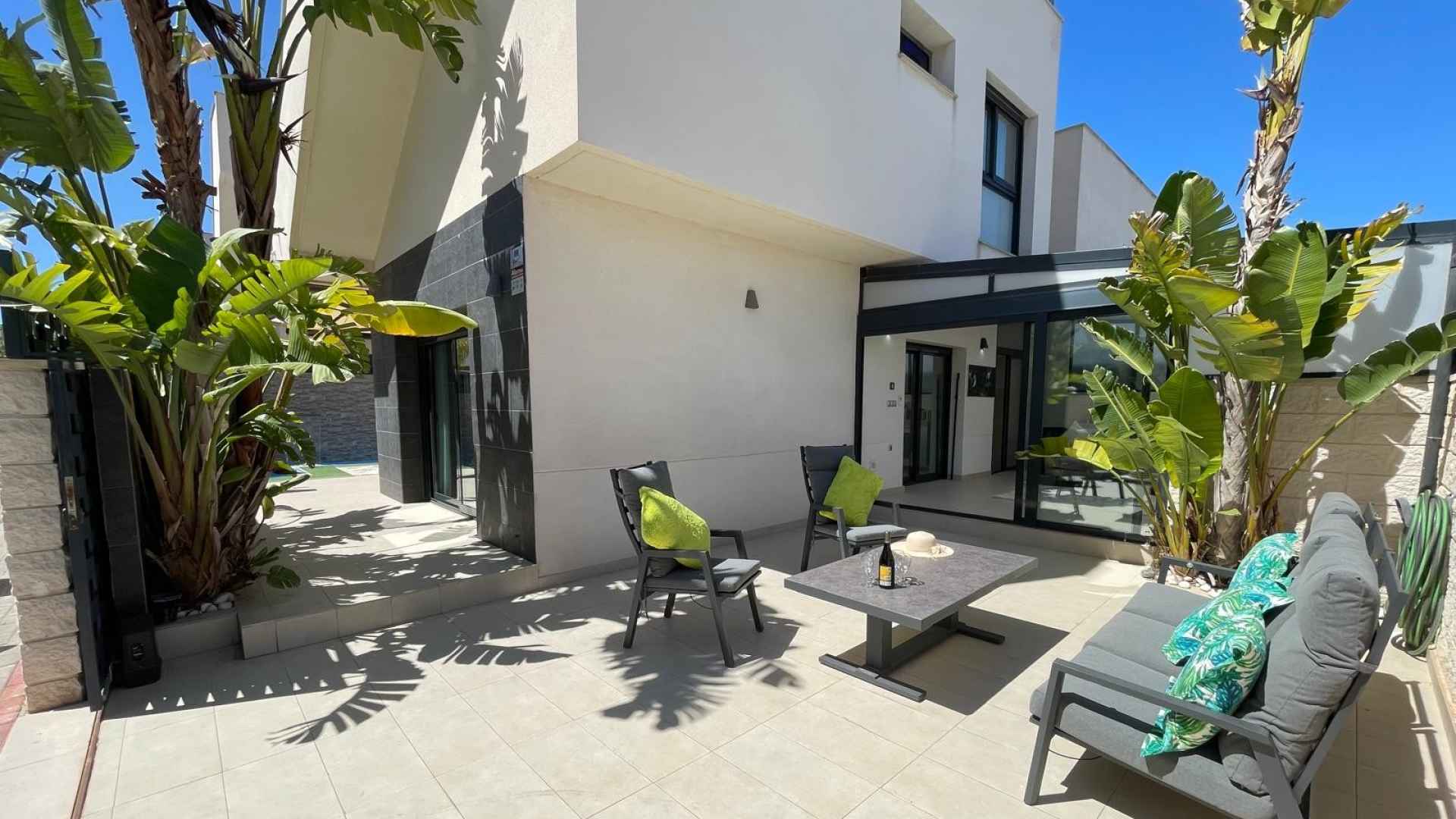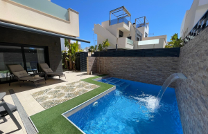 This Terrific, Spacious and Modern, three bedroom, two bathroom newbuild, resale detached villa is located in the charming Spanish village of Benijofar on the Costa Blanca South. This wonderful property comes with a lot of extras and offers luxurious living in a traditional Spanish setting. The village square with its church and water feature, several commercial centres and the many services and amenities that Benijofar has to offer are all within walking distance. A short drive away you will find the neighbouring town of Ciudad Quesada which boasts its own water park and the stunning La Marquesa golf course. The beautiful sandy blue flag beaches of Guardamar del Segura and la Mata are just a 10/15 minute drive away.