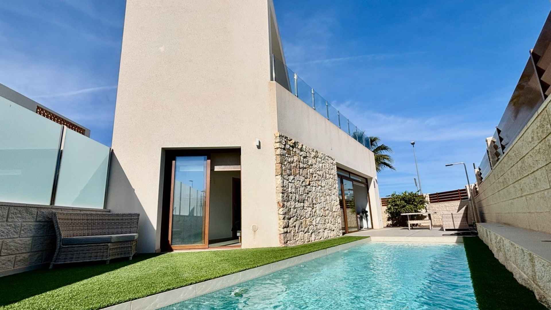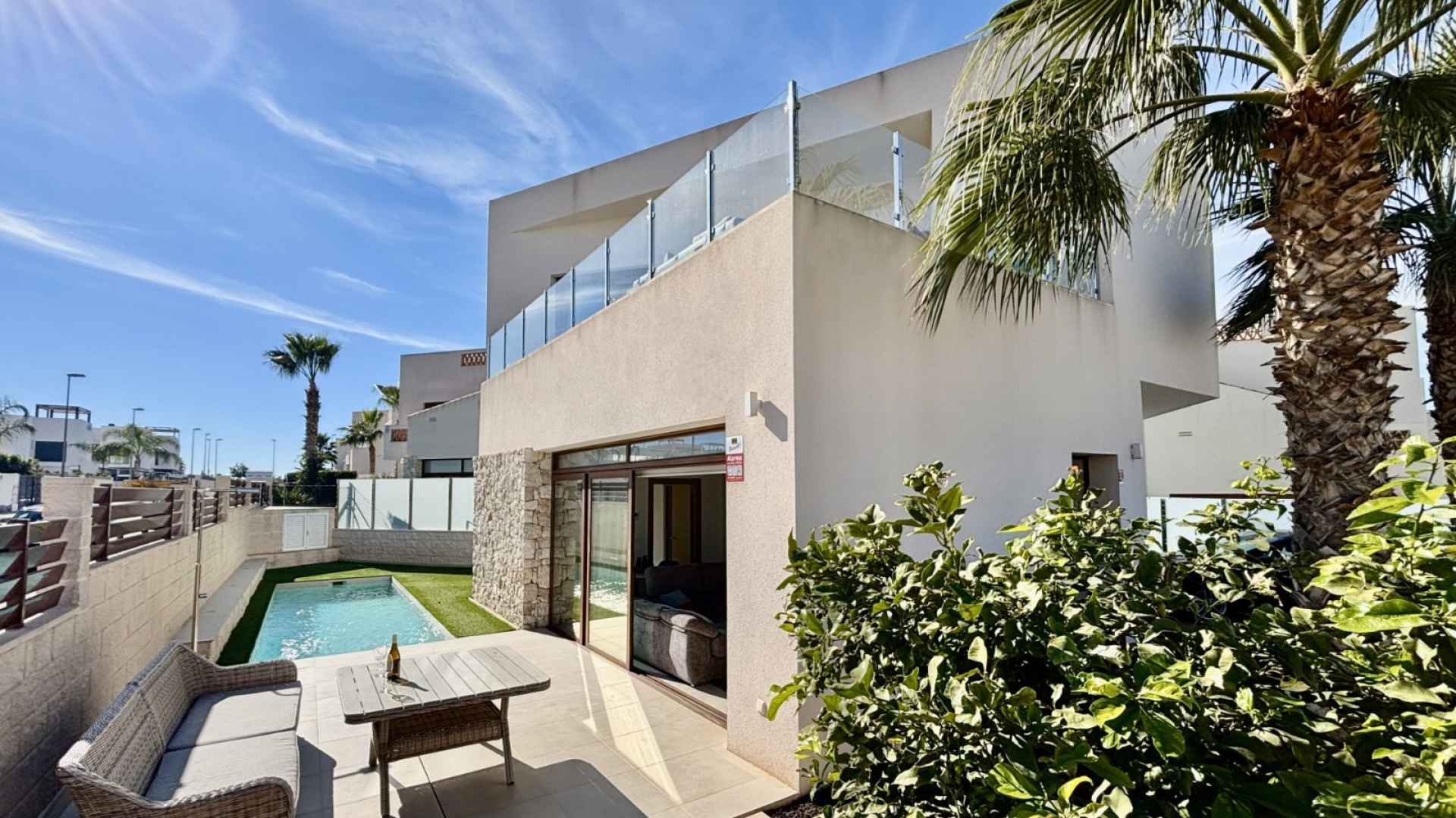 This Exceptional, Unique Style, 3 bedroom, 3.5 bathroom newbuild resale detached villa is located in the charming Spanish village of Benijofar on the Costa Blanca South. This wonderful property comes with a lot of extras and offers luxurious living in a traditional Spanish setting. The village square with its church and water feature, several commercial centres and the many services and amenities that Benijofar has to offer are all within walking distance. A short drive away you will find the neighbouring town of Ciudad Quesada which boasts its own water park and the stunning La Marquesa golf course. The beautiful sandy blue flag beaches of Guardamar del Segura and la Mata are just a 10/15 minute drive away.