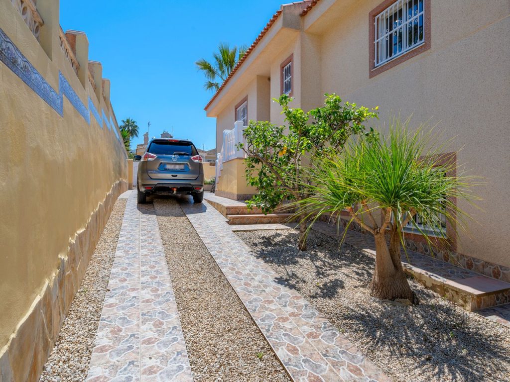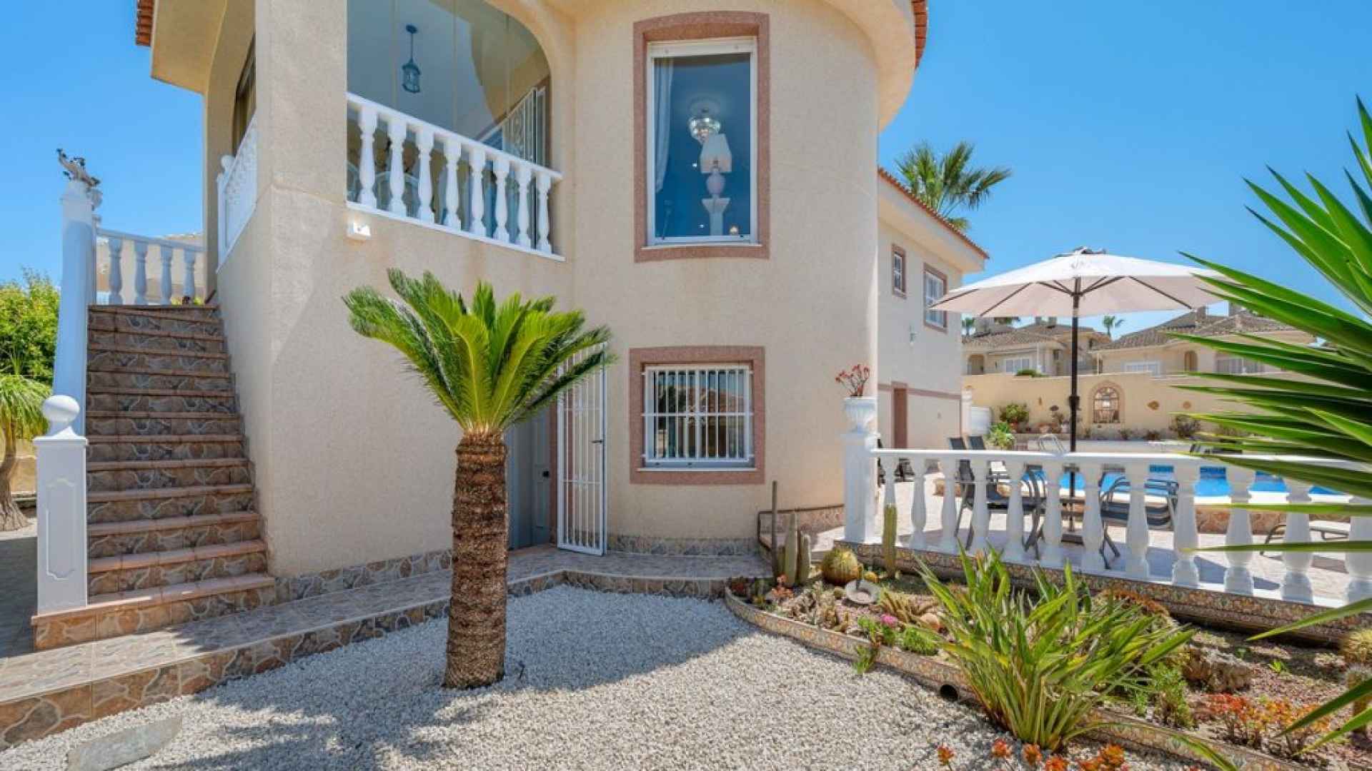 This Attractive and Immaculately Presented, five bedroom, three bathroom detached villa is located on the popular urbanisation of Benimar, Rojales on the Costa Blanca South. Benimar is a very sought-after residential area and plays host to an array of nationalities. At the entrance there are two large commercial centres boasting a great choice of bars, restaurants, shops, and even a Veterinary hospital. There is also a large park and recreational area where you will find a lake, playground, seating areas, pedestrian and bicycle paths plus a woodland and BBQ area along with a new cafe! Within walking distance, you can reach both the charming villages of Rojales and Benijofar where you will find another great choice of amenities. Just a short drive will take you to the very popular area of Ciudad Quesada which has its own Aqua Park and golf course as well as bustling high street. The nearest stunning beaches at Guardamar del Segura can be reached in an easy 10–15-minute drive and for the keen golfer you have a fabulous choice of courses in the area including; La Finca, La Marquesa, Vistabella and Las Colinas.