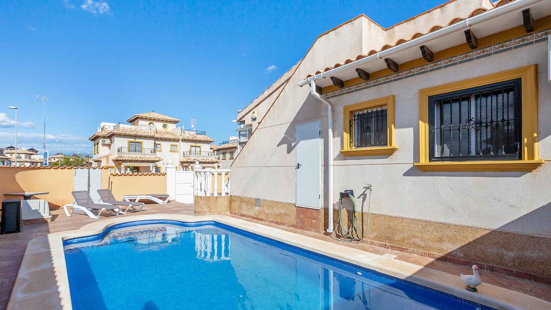 This charming and nicely maintained, two bedroom, corner plot quad style villa is located is located in the popular area of La Regia, Cabo Roig, Orihuela Costa on the Costa Blanca South. Ideally situated close to the wonderful Zenia Boulevard shopping mall and a great choice of bars and restaurants along the popular Cabo Roig strip. The nearest sandy beaches can be reached in a 15 minute walk plus there are plenty of other beaches all along the Orihuela Costa resorts such as La Zenia, Playa Flamenca and Campoamor. For the keen golfer you have a great selection of golf courses nearby including; Villamartin, Las ramblas, Campoamor and Las Colinas.