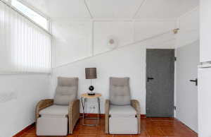 A staircase from the glazed terrace leads to the solarium, where you’ll discover an additional room complete with windows and sliding doors, perfect for using as a third bedroom for visiting family and friends. The solarium also offers two handy storage spaces and plenty of space for sun lovers to enjoy all year around sunshine.