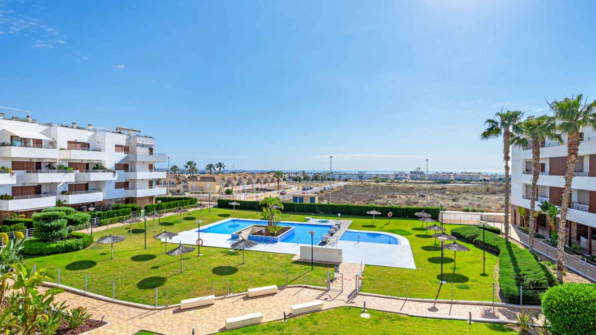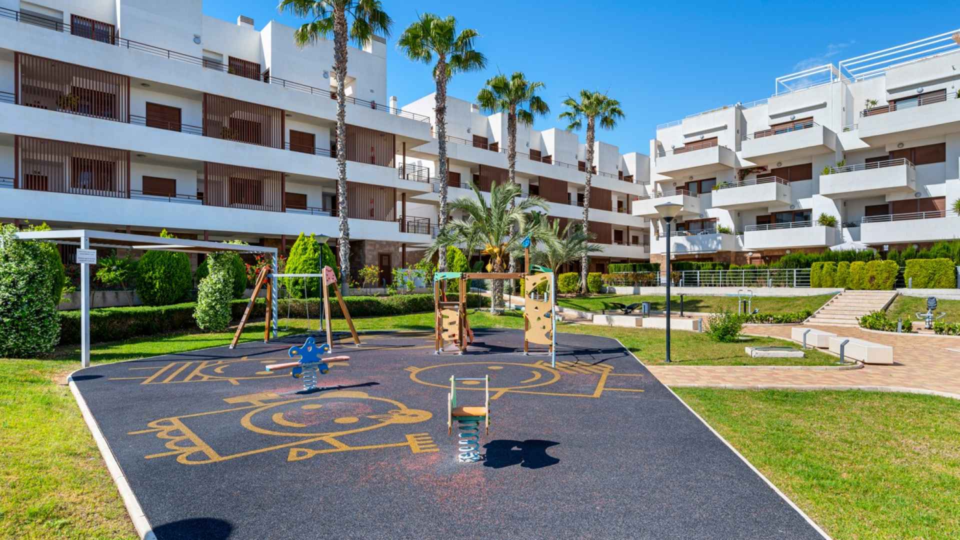 The property is situated on the simply stunning Terrazas de Campoamor gated urbanisation which boasts, a fabulous central swimming poo area, gardens, a kids park, a Jacuzzi, plus an outside gym.