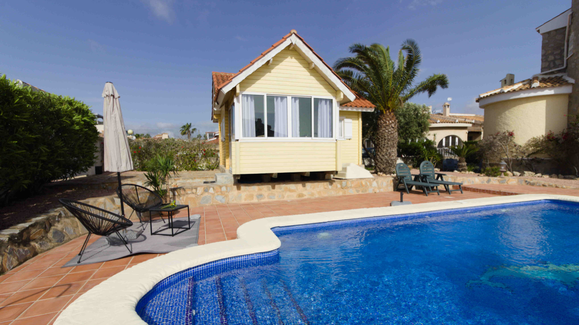 Outside, the property occupies a generous and very private plot of over 800m2 where you will find a fantastic and very inviting private swimming pool with plenty of room for sun loungers. There is also off-road parking, some nice plants, trees and borders, plus ample space in which to create several lovely seating/dining areas where you can relax and enjoy the famous Spanish sunshine.