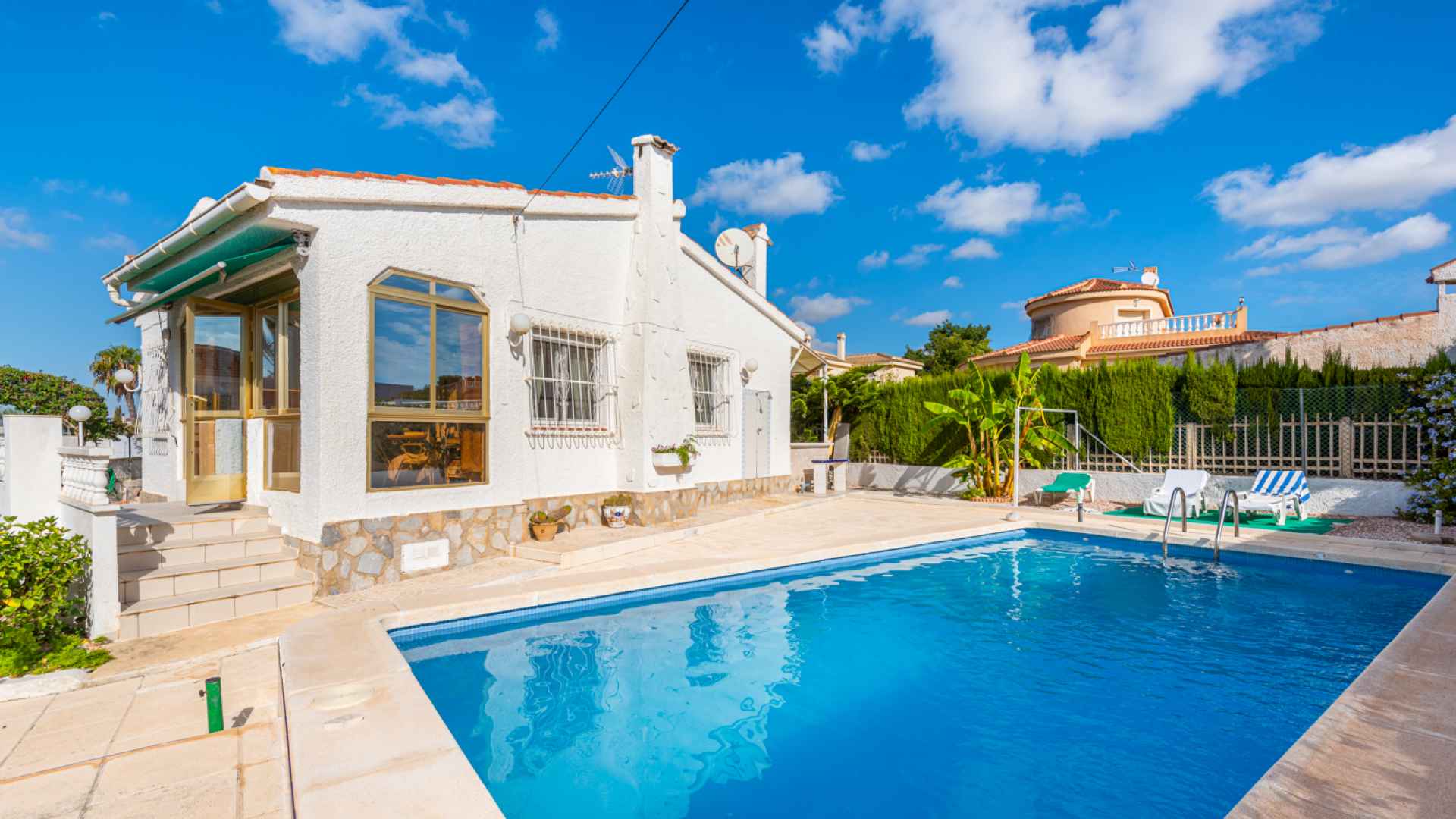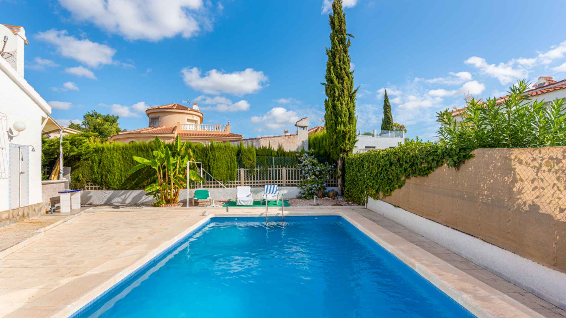 This lovely property has a build size of 121 m2, a quiet cul-de-sac location and benefits from a separate apartment, it needs some updating and reformation in places but offers an excellent opportunity to own a large detached property on a big plot with a private pool close to to the main town centre.