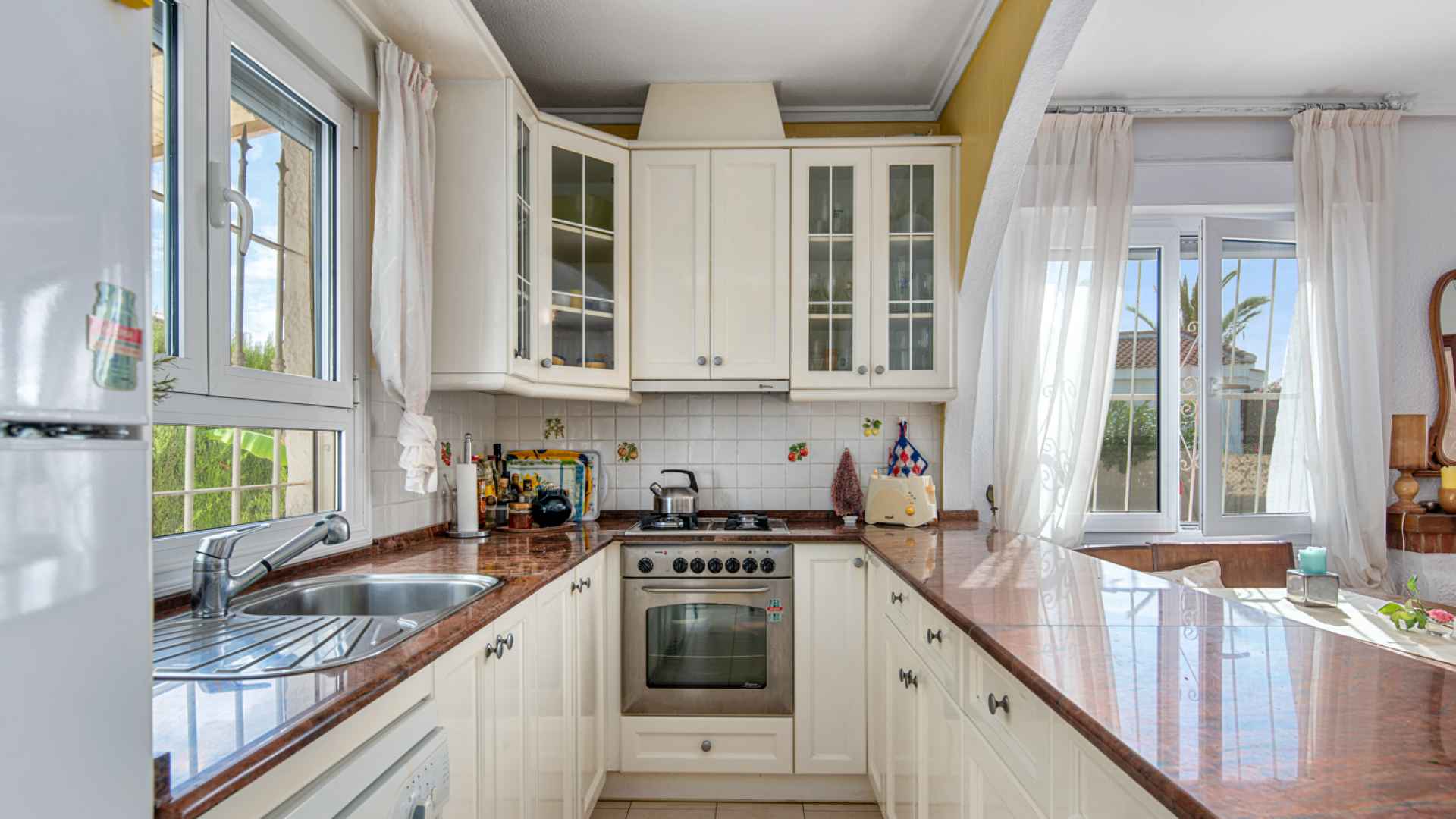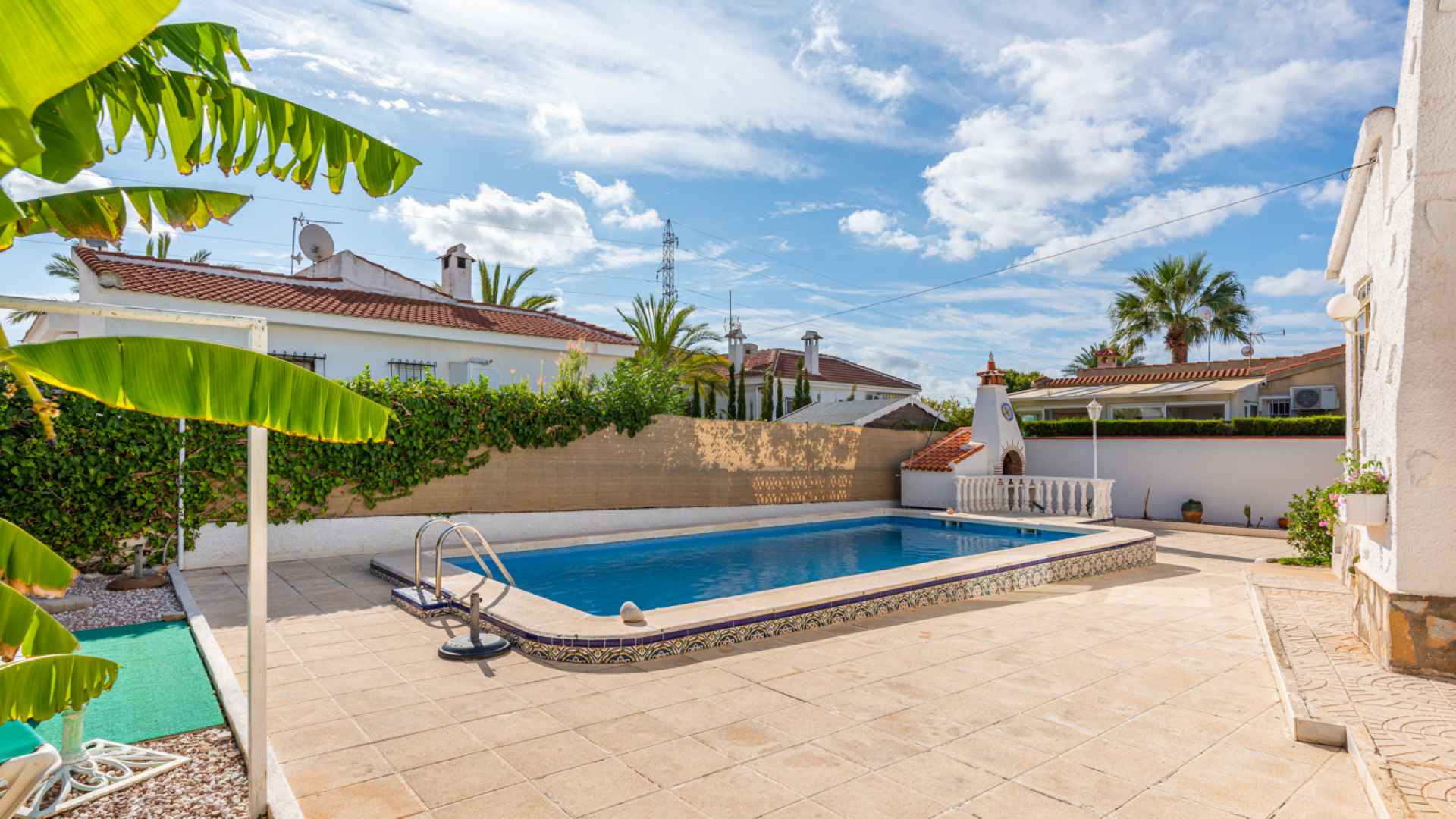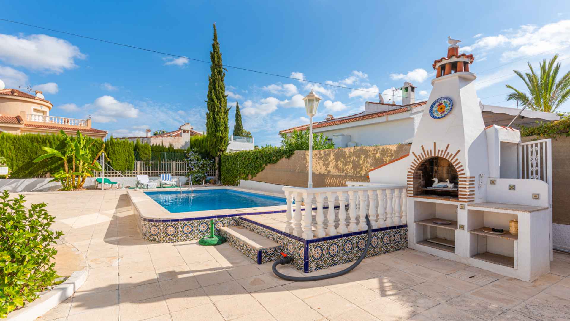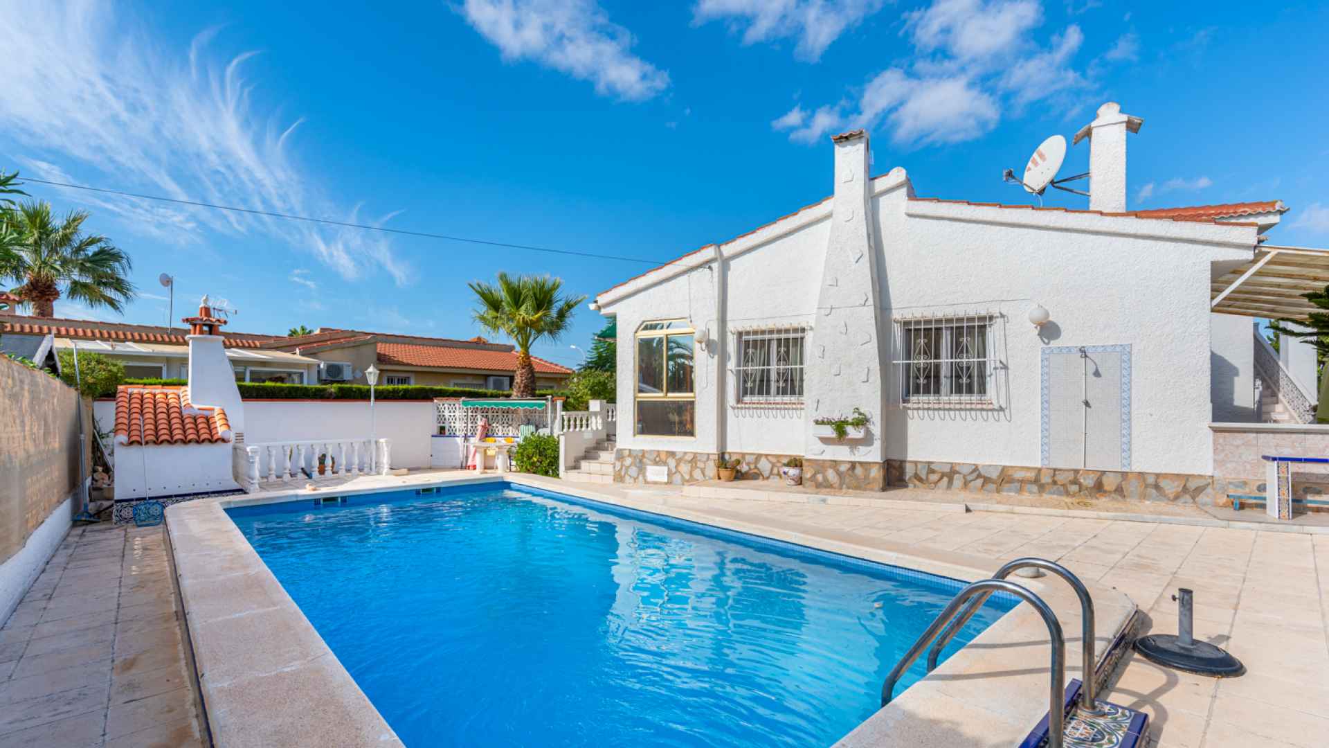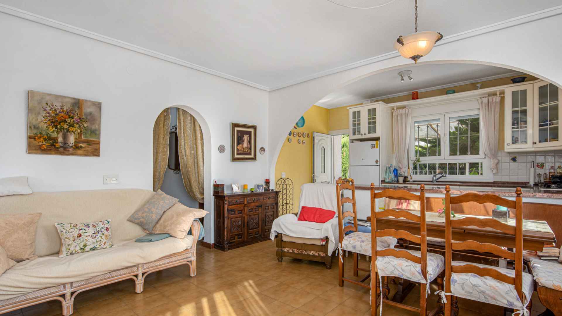 This delightful, spacious, traditional Spanish style three bedroom, two bathroom villa is located in a lovely central residential area of Ciudad Quesada on the Costa Blanca South. Ideally situated within walking distance of the main Quesada high street where you will find an abundance of amenities and services such as; bars, restaurants, shopping boulevards, banks, supermarkets and much more. The beautiful La Marquesa golfing area of Quesada is also nearby where you will find a further great selection of amenities plus the charming clubhouse. The nearest award winning sandy beaches can be found in Guardamar del Segura in less than a 10 minute drive.