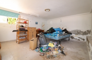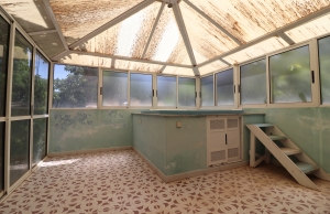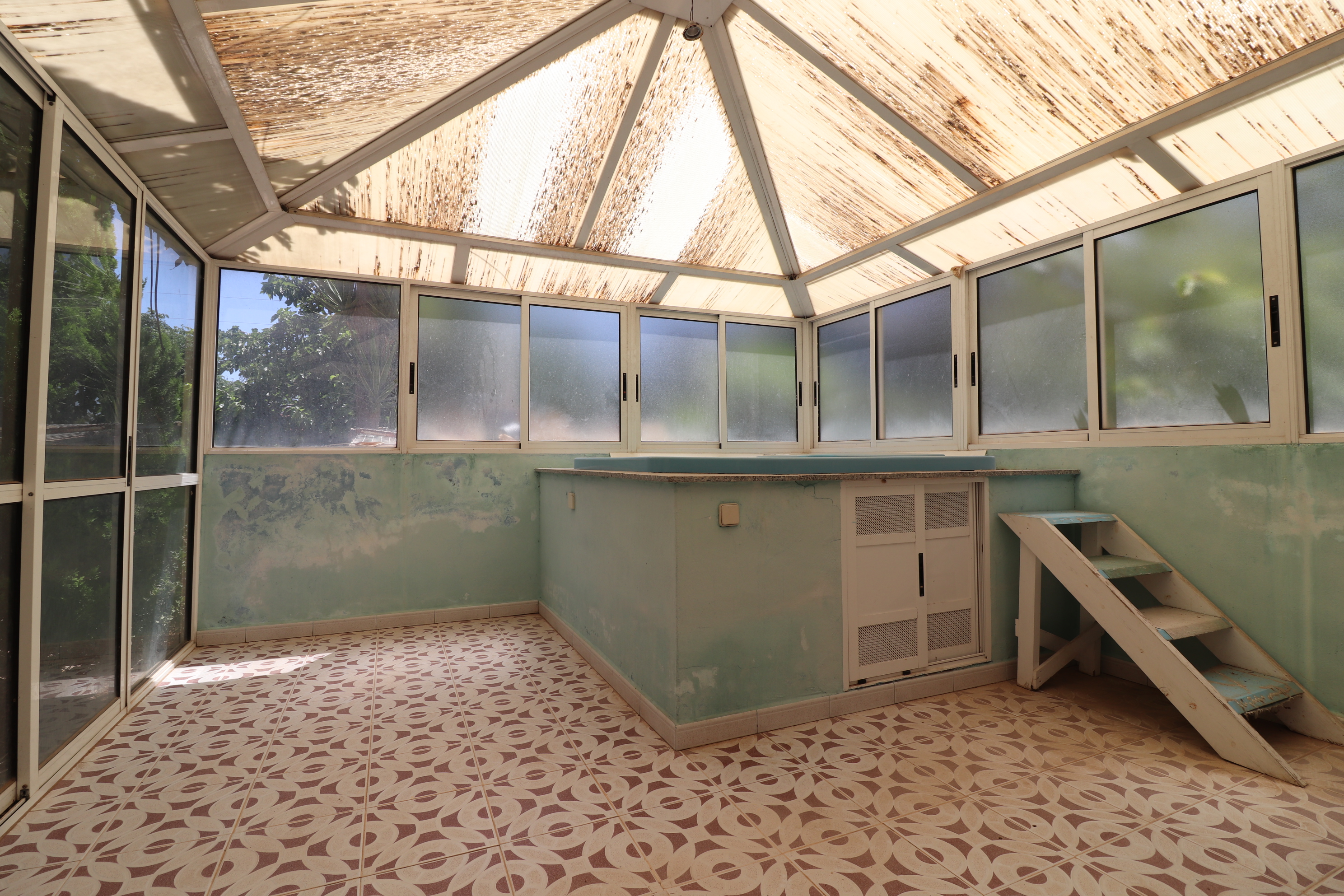 Outside is a stunning sized plot of some 965m2, with lots of potential, and work needed, currently graveled and tiled, with ample off road parking under the car port, a private glazed Jacuzzi area, water well, plenty of space to dine, sit, relax, BBQ and entertain outdoors, but most importantly lots of potential!