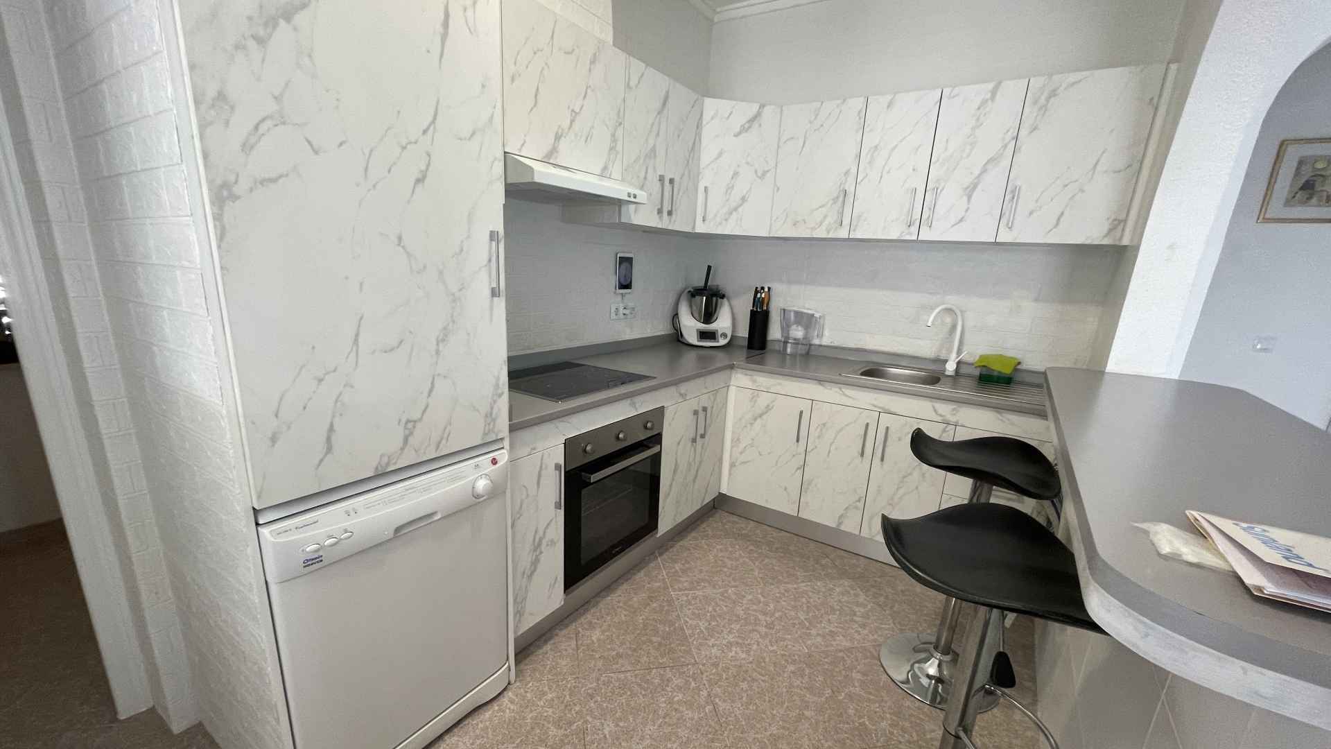Open-plan kitchen, fully equipped with a breakfast bar and a dishwasher, plus access to a spacious pantry with plenty of storage space.