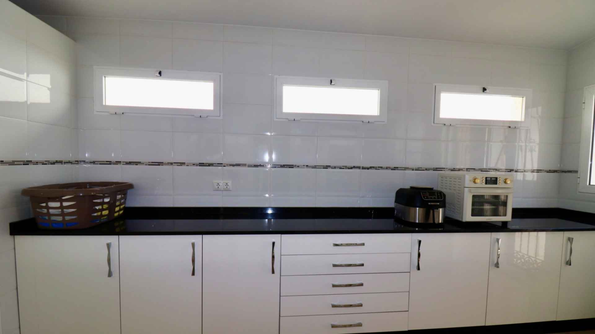 The villa is all set out over one level and comprises of; a spacious lounge area with a feature fireplace which flows into a wonderful, modern style kitchen and formal dining area, three bedrooms, the master bedroom with a dressing area and en-suite bathroom with shower, plus there is a family bathroom with both a shower and a roll top feature bathtub. There is also a larger than average utility room.