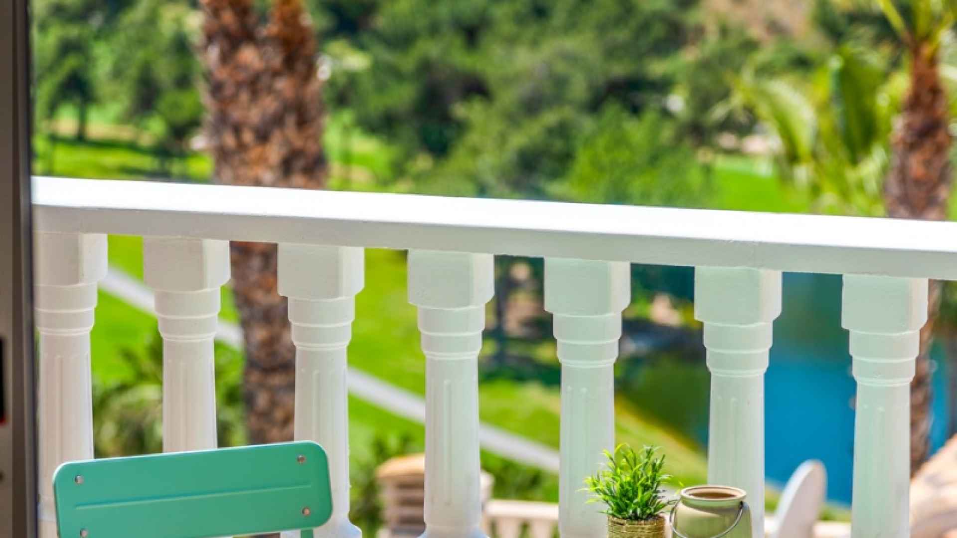 The top floor leads to a private, sun-drenched rooftop solarium with panoramic views of the surrounding landscape and golf course, an ideal spot for sunbathing, reading, or enjoying the sunset in total privacy.