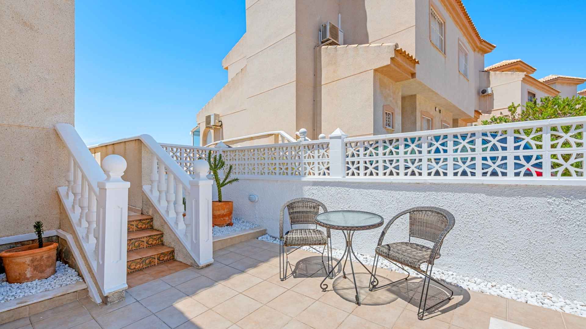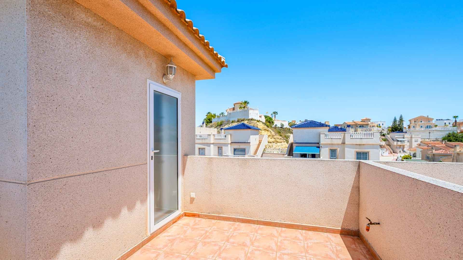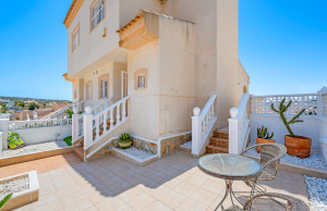 This spacious and beautifully presented, three bedroom, two bathroom semi-detached villa is located in La Marquesa, Ciudad Quesada on the Costa Blanca South. Within a 15/20 minute walk you will find a great choice of amenities down on the golf course itself including; bars, restaurants, a main brand supermarket, plus the new clubhouse. Just a short drive away you have the very popular main Quesada high street where you will find a further wealth of amenities such as shopping boulevards, banks, supermarkets, a bowling alley and much more. The nearest stunning sandy beaches can be reached in a short drive of approx 10 minutes at Guardamar del Segura.