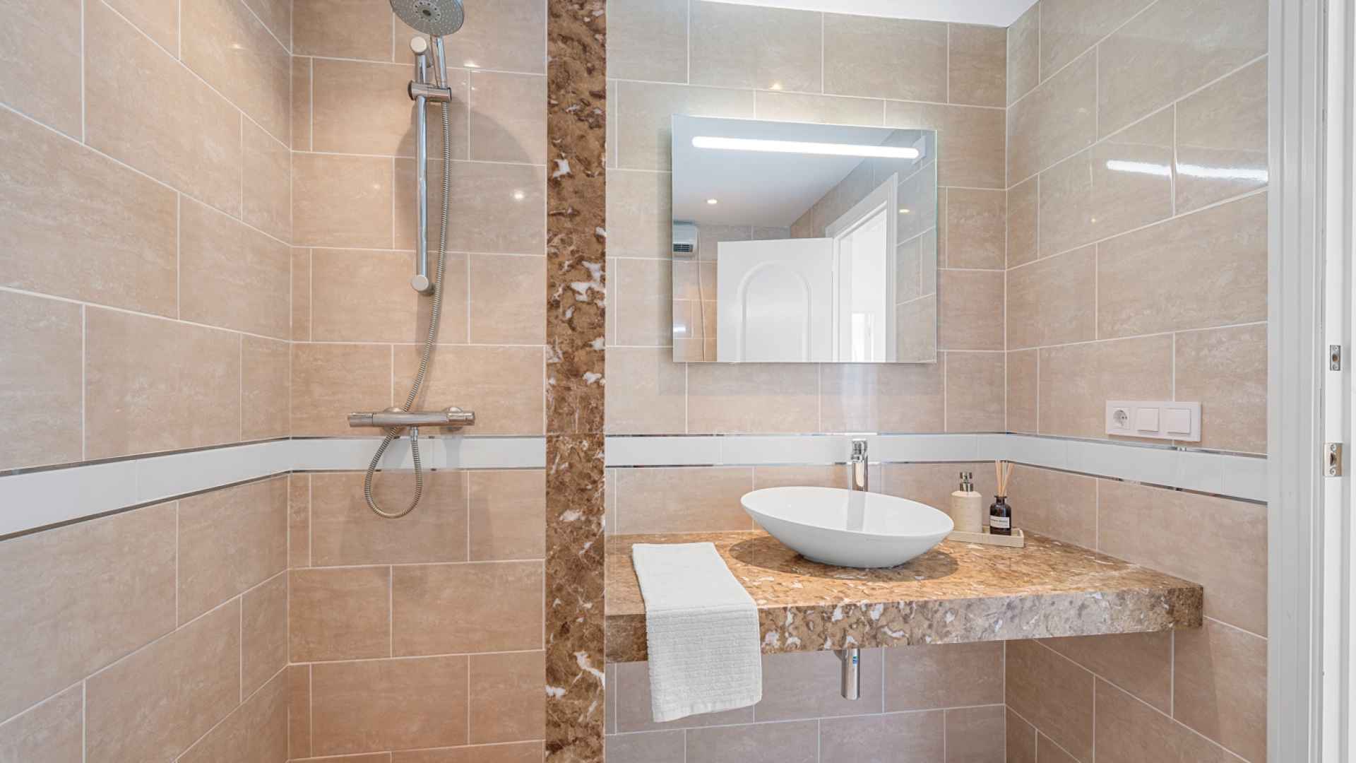 On the first floor you will find two additional bedrooms both with fitted wardrobes and a bathroom. From the master bedroom you can enjoy the beautiful views of the golf course and the mountains.