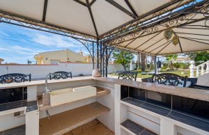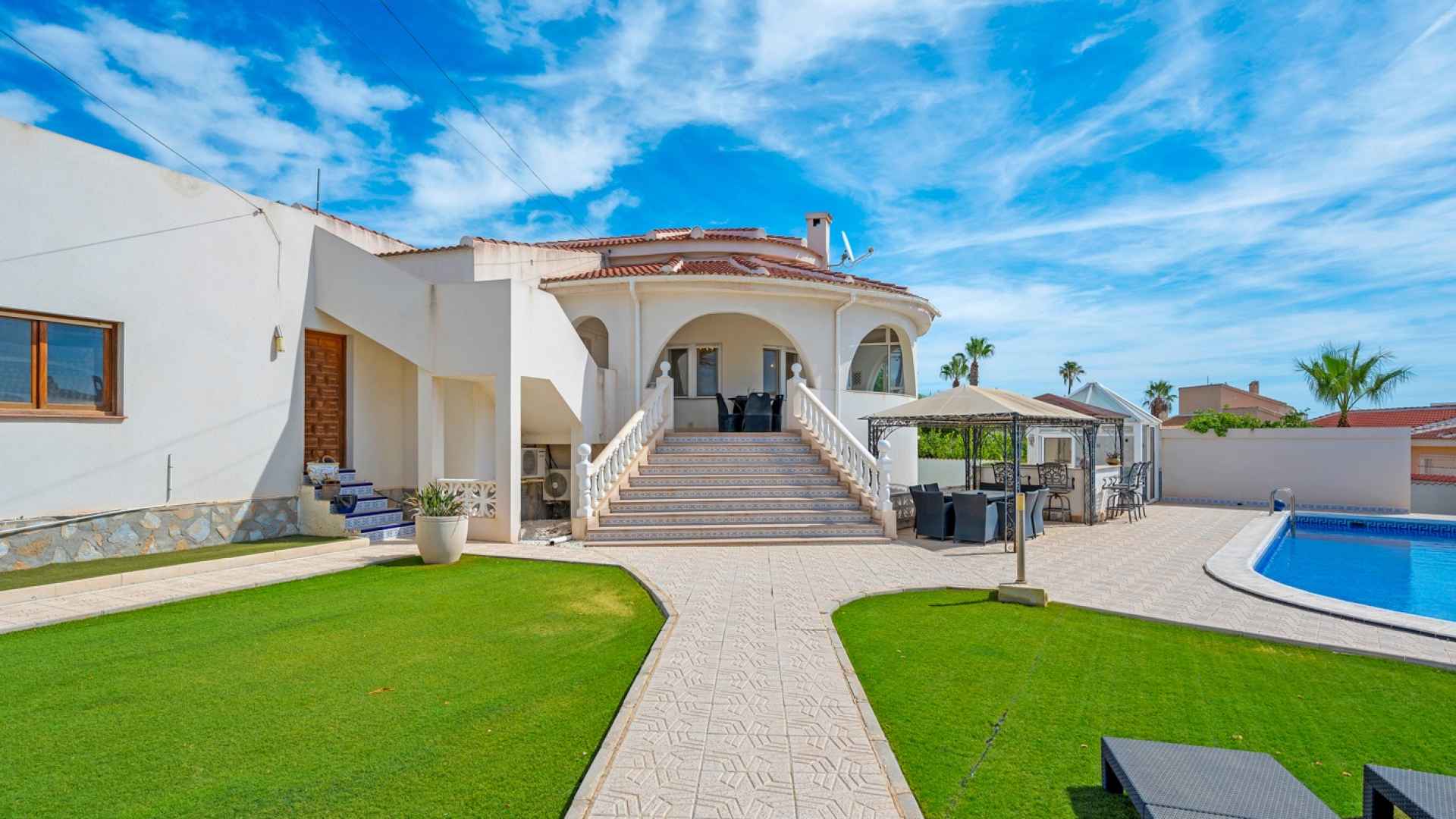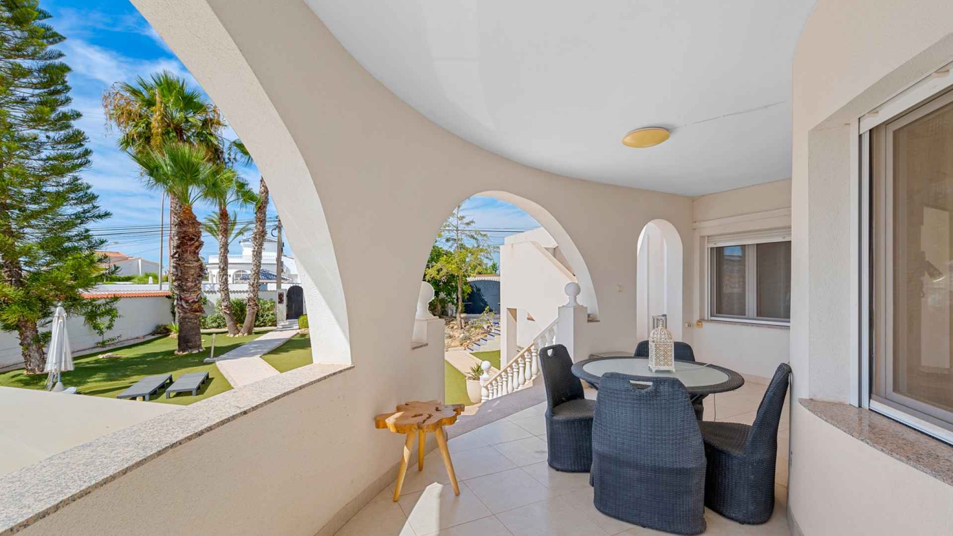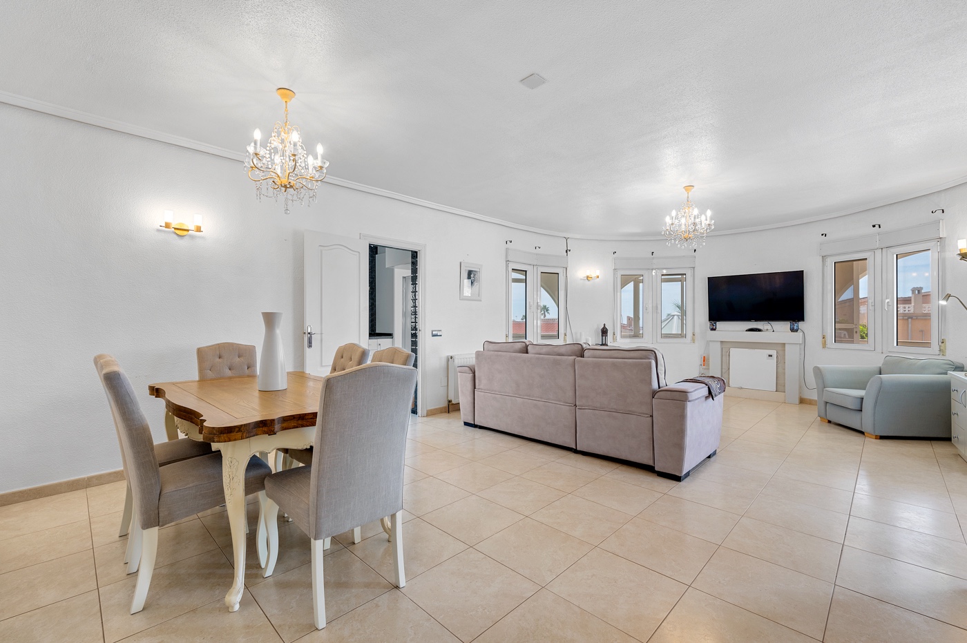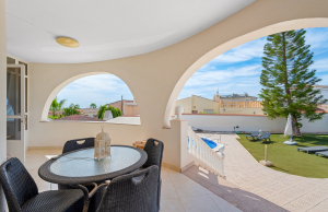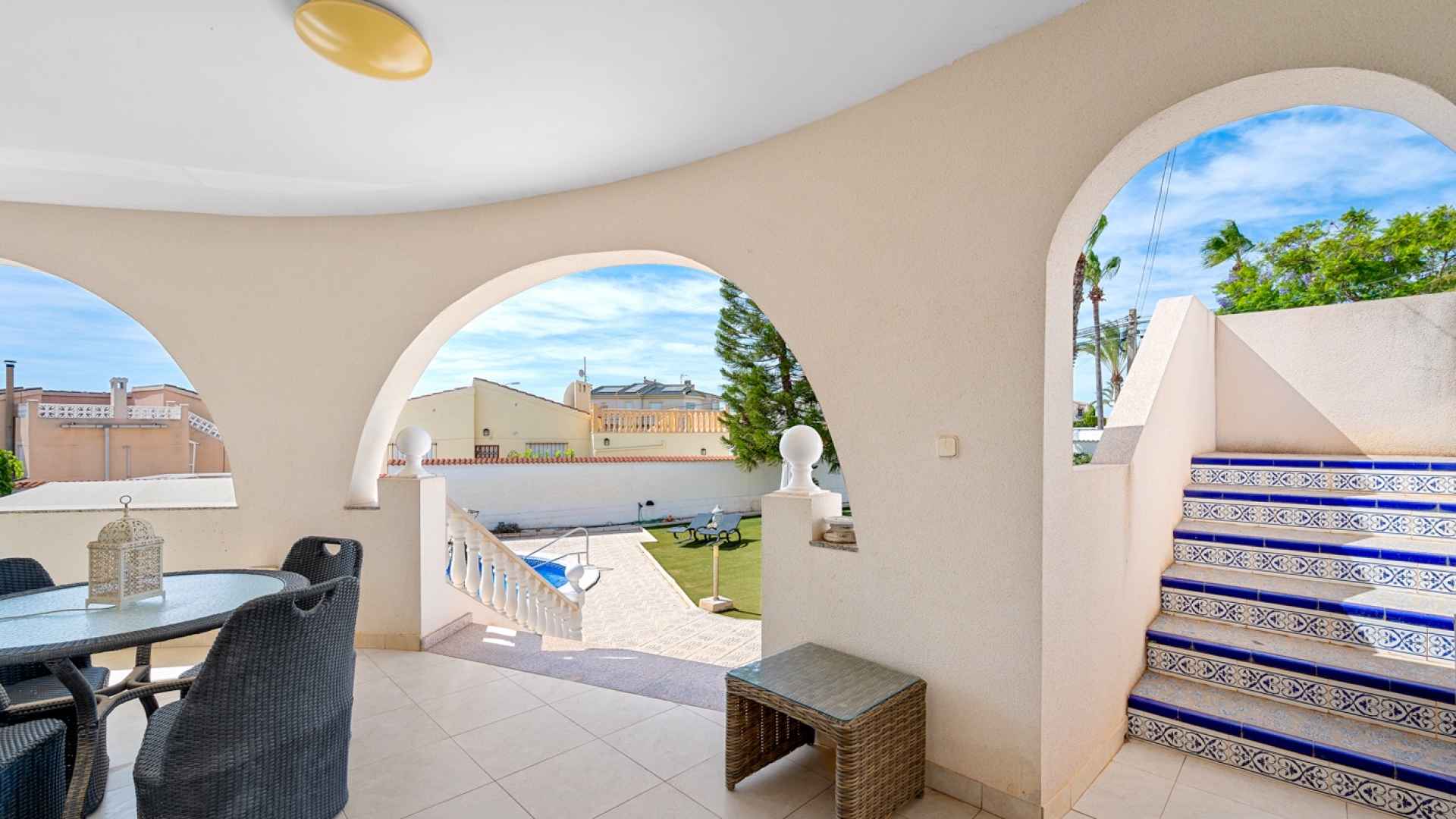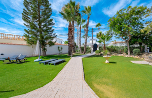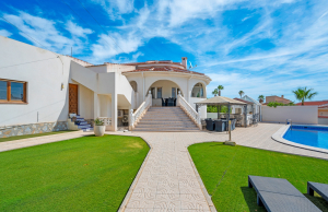This Impressive, Attractive, five bedroom three bedroom detached villa is located in a quiet residential of Ciudad Quesada on the Costa Blanca South. Within a short 5 minute drive you will find a good choice of amenities down on the golf course including; a main brand supermarket, bars, restaurants along with the new clubhouse. Within easy walking distance you have the pretty Recorral nature park with its lovely lakes and picnic area. The main Quesada high street is just a short drive away where you will find a great choice of amenities such as; banks, shopping boulevards, supermarkets, bars, cafes, restaurants and much more. The nearest lovely sandy beaches are just a 10 minute drive away at Guardamar del Segura.