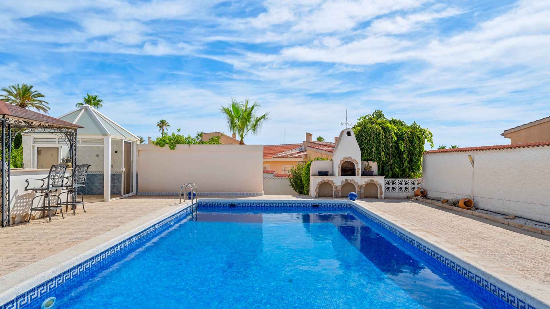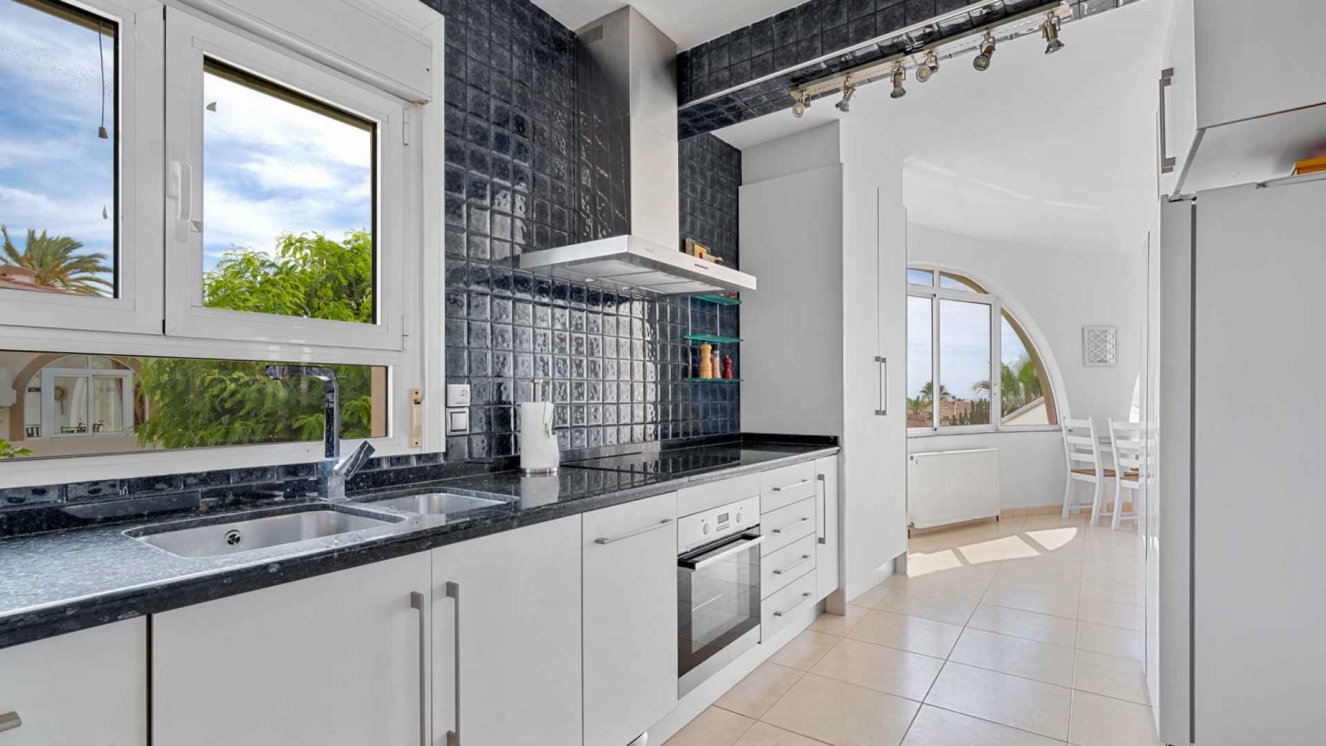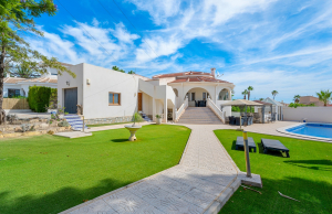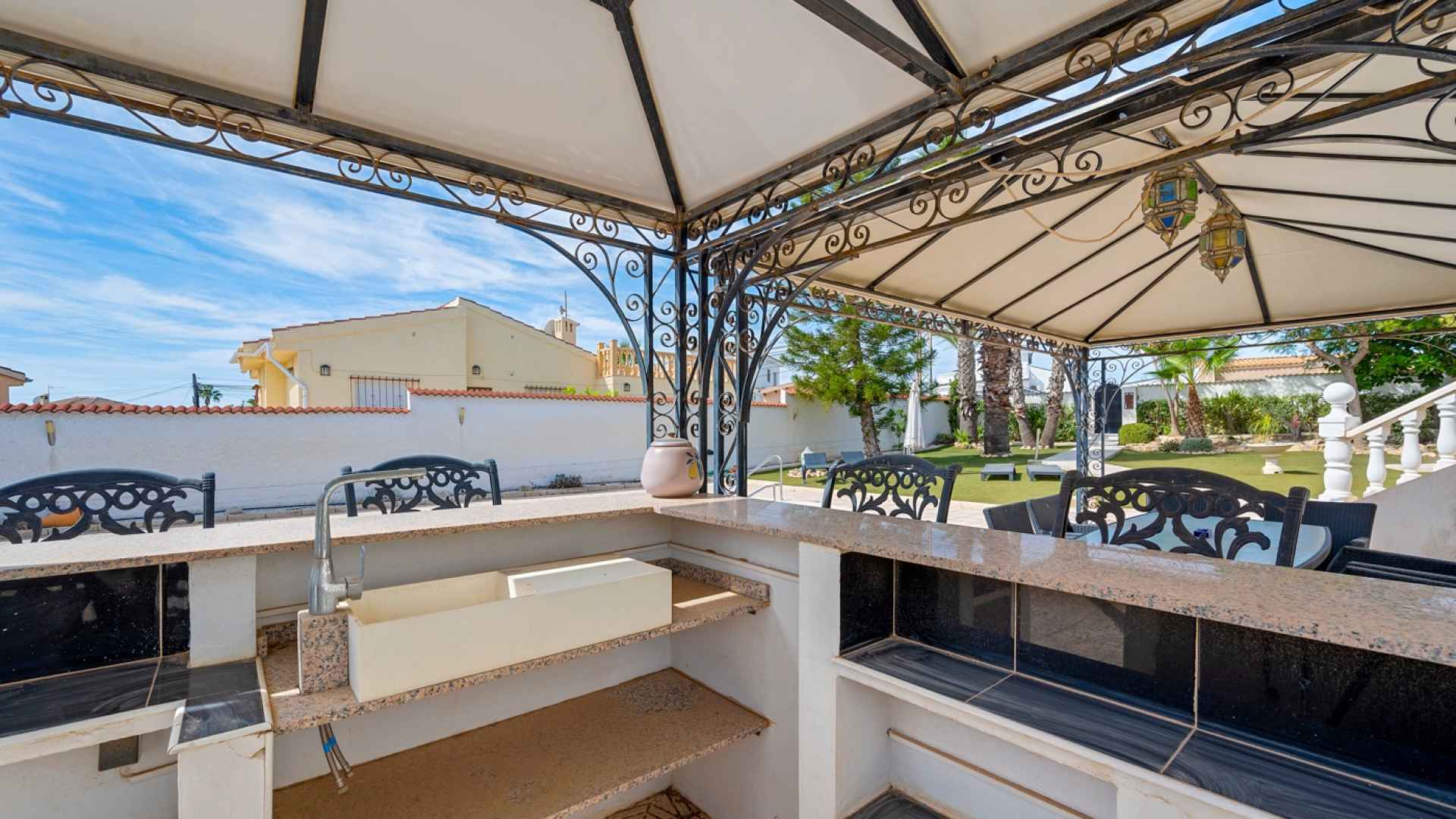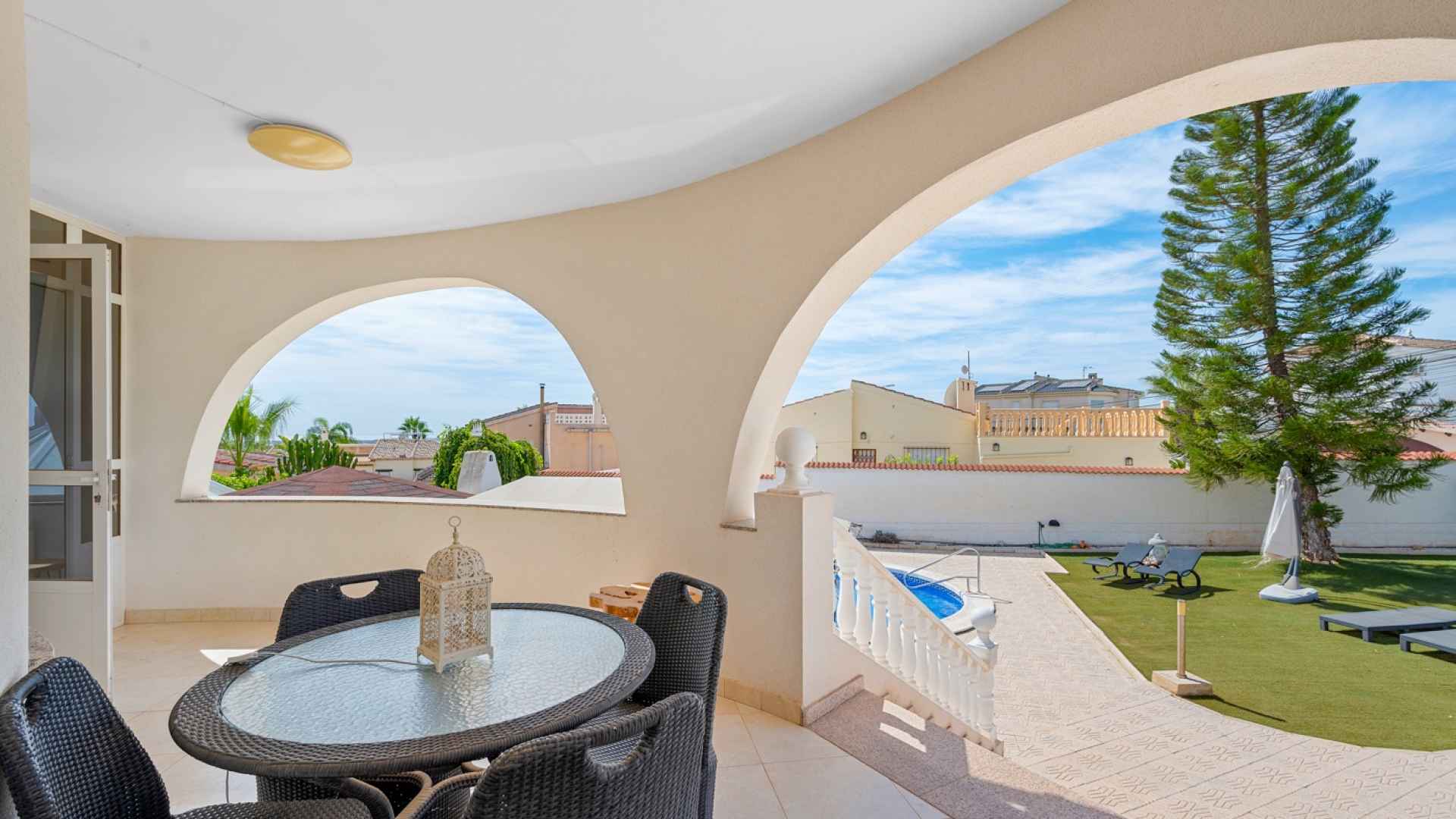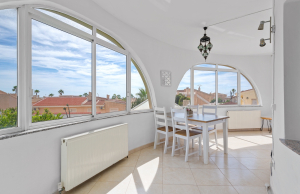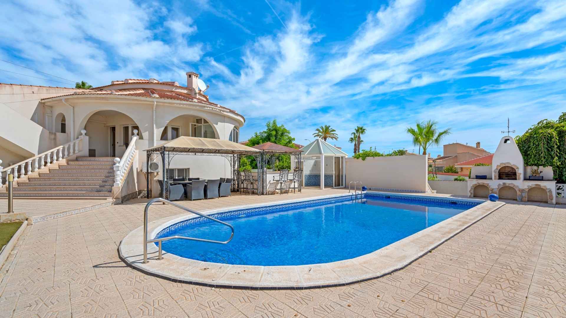 This Impressive, Attractive, five bedroom three bedroom detached villa is located in a quiet residential of Ciudad Quesada on the Costa Blanca South. Within a short 5 minute drive you will find a good choice of amenities down on the golf course including; a main brand supermarket, bars, restaurants along with the new clubhouse. Within easy walking distance you have the pretty Recorral nature park with its lovely lakes and picnic area. The main Quesada high street is just a short drive away where you will find a great choice of amenities such as; banks, shopping boulevards, supermarkets, bars, cafes, restaurants and much more. The nearest lovely sandy beaches are just a 10 minute drive away at Guardamar del Segura.