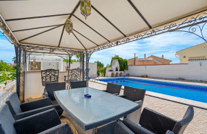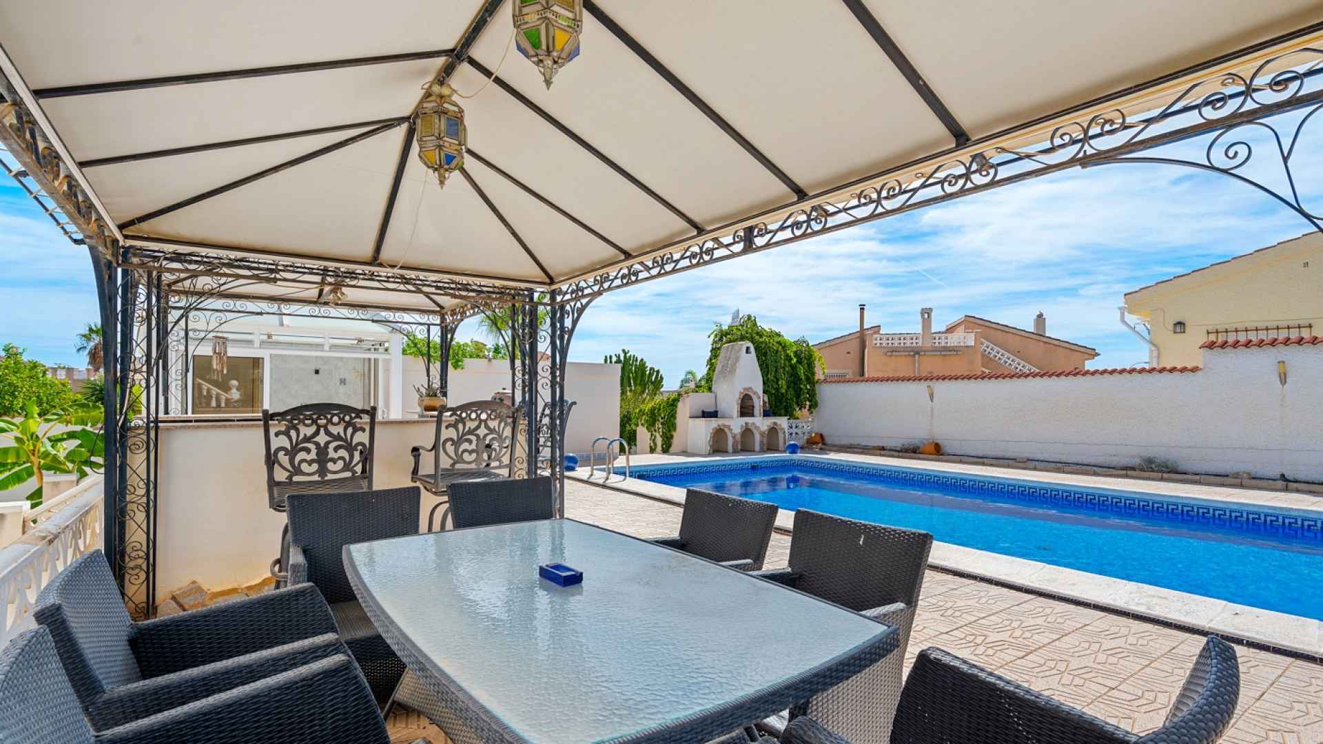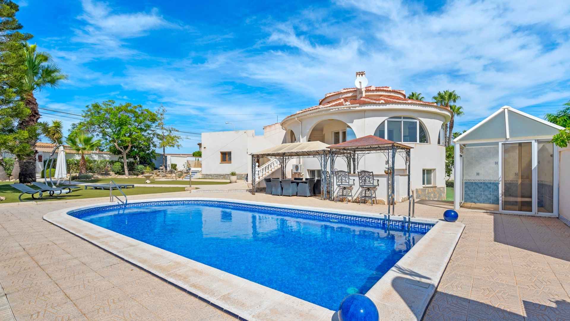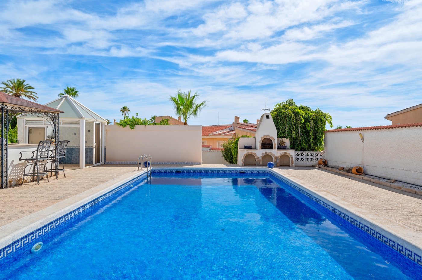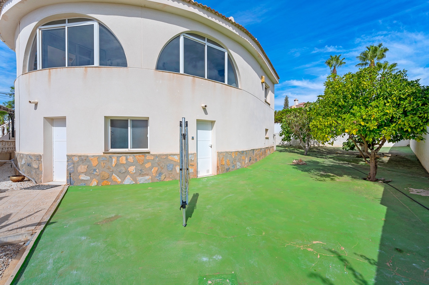 This Impressive, Attractive, five bedroom three bedroom detached villa is located in a quiet residential of Ciudad Quesada on the Costa Blanca South. Within a short 5 minute drive you will find a good choice of amenities down on the golf course including; a main brand supermarket, bars, restaurants along with the new clubhouse. Within easy walking distance you have the pretty Recorral nature park with its lovely lakes and picnic area. The main Quesada high street is just a short drive away where you will find a great choice of amenities such as; banks, shopping boulevards, supermarkets, bars, cafes, restaurants and much more. The nearest lovely sandy beaches are just a 10 minute drive away at Guardamar del Segura.
