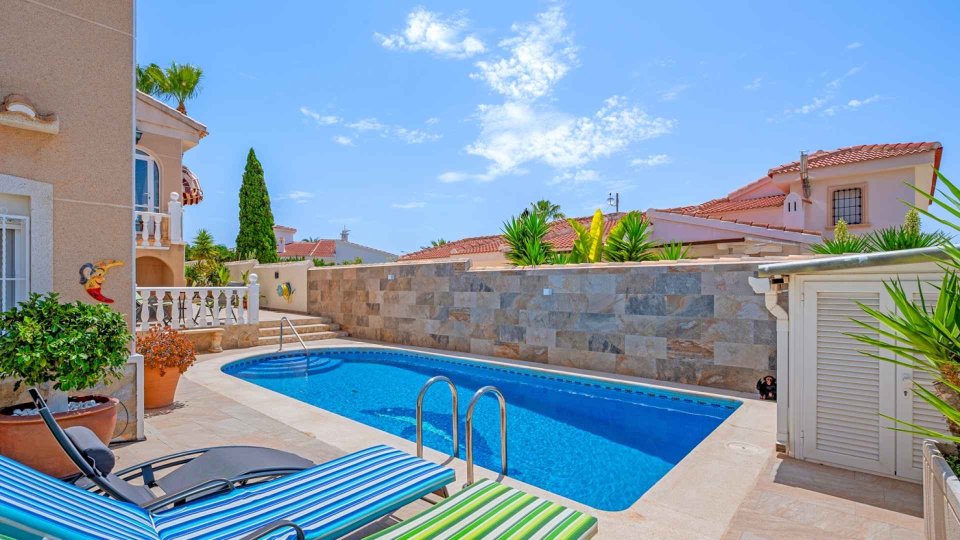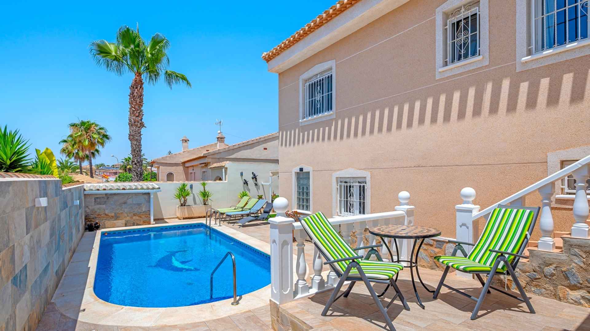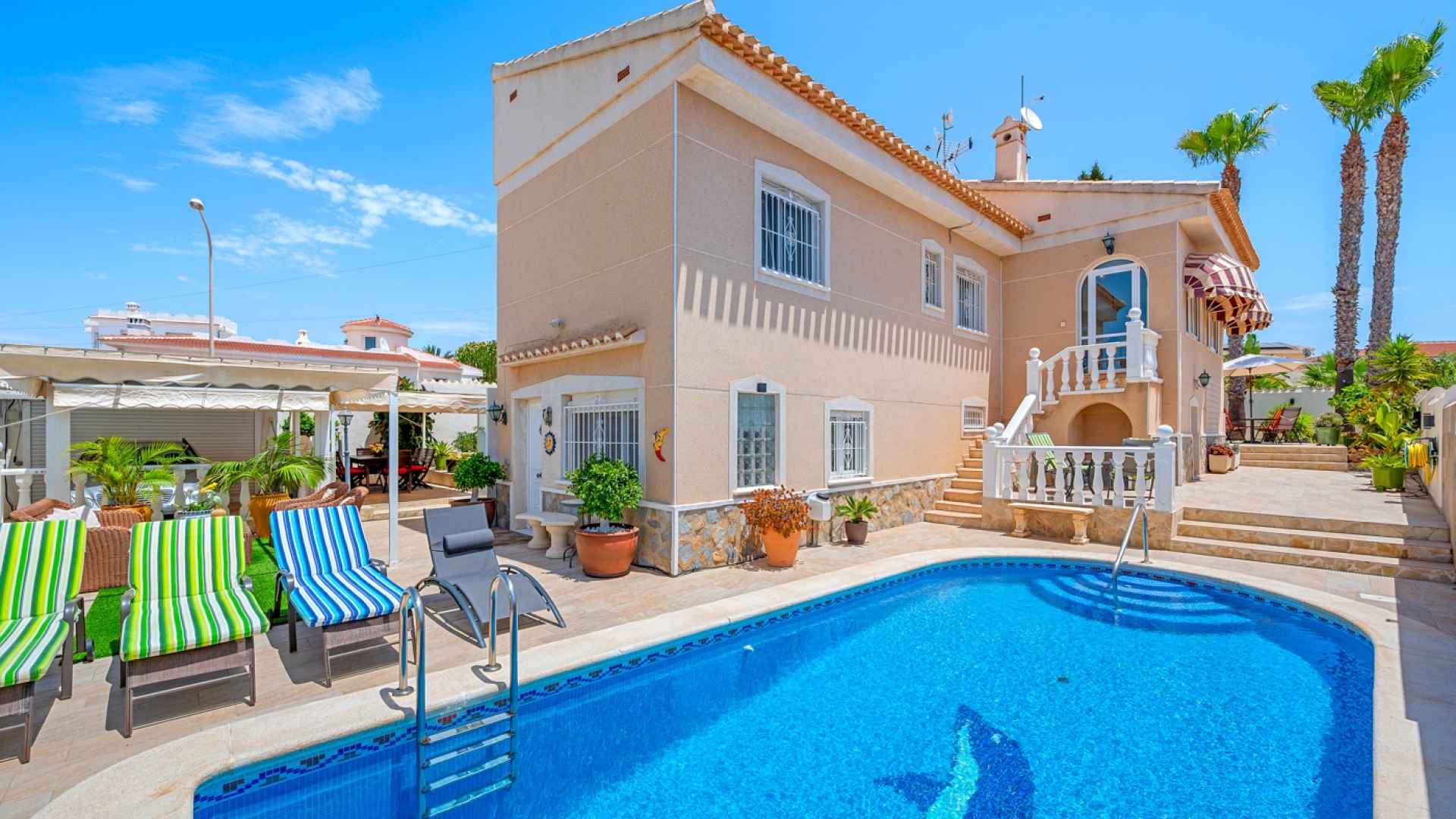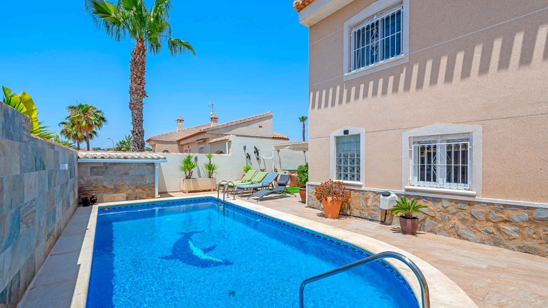 This Stunning and Extremely Spacious, three bedroom, three bathroom Mediterranean style detached villa is located in the very sought after Painters Road area of Ciudad Quesada on the Costa Blanca South. Situated within walking distance to several local amenities including local restaurants and bars, plus the popular Bowls and Snooker club. Also within walking distance you have the ever popular main Quesada high street where you will find a wealth of amenities including banks, shopping boulevards, supermarkets and much more... The nearest stunning award-winning sandy beaches can be found in an easy 10 minute drive at Guardamar del Segura or La Mata and for the keen golfer the beautiful La Marquesa golf course is just a 5 minute drive away where you will find another great choice of bars and restaurants.