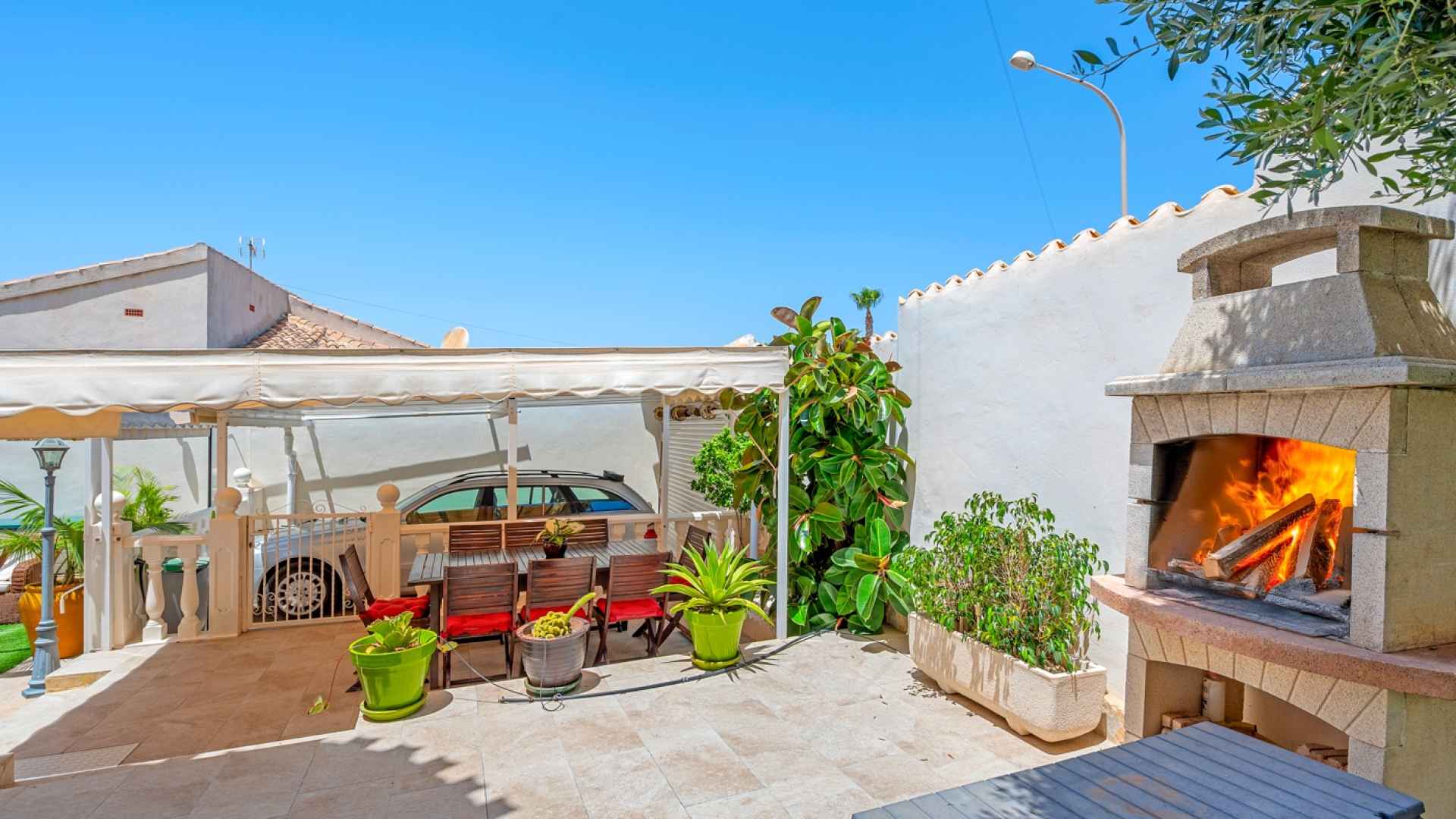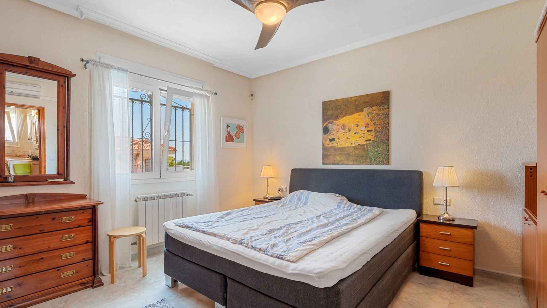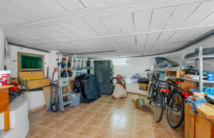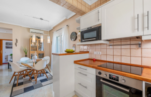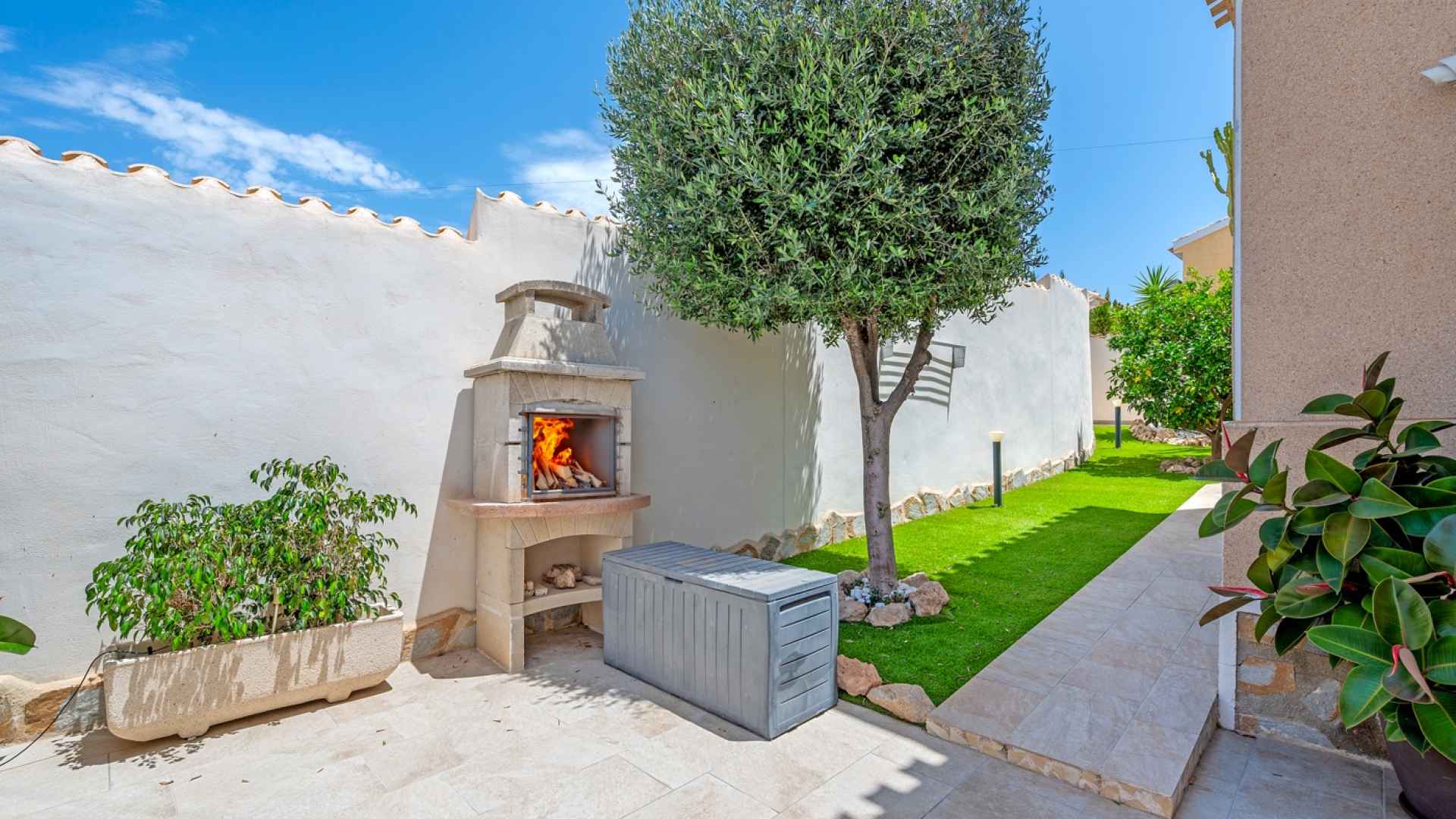 Outside, the villa occupies a generous, South facing plot of 500 m2 which is well maintained, beautifully tiled with a lovely selection of plants. You will also find a very inviting swimming pool (salt water), an outdoor shower, off-road parking along with a carport, a BBQ area, a storage room and several outdoor seating areas, one with a large gazebo offering welcome shade during those hotter months. The garden has automatic irrigation system.