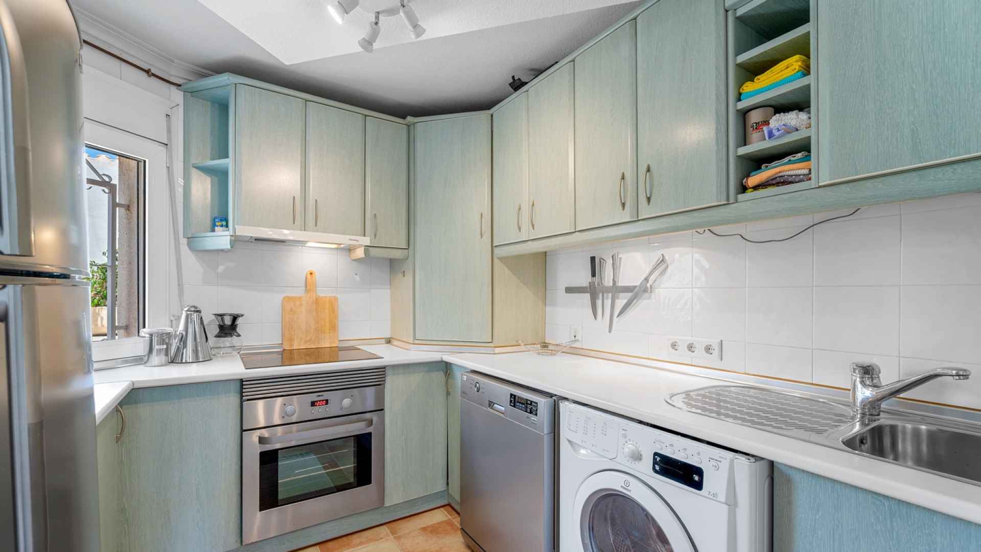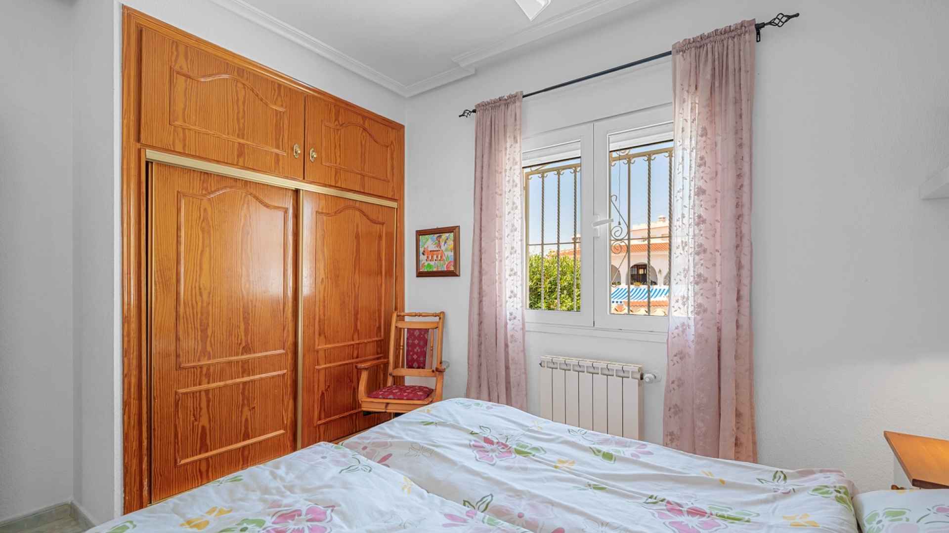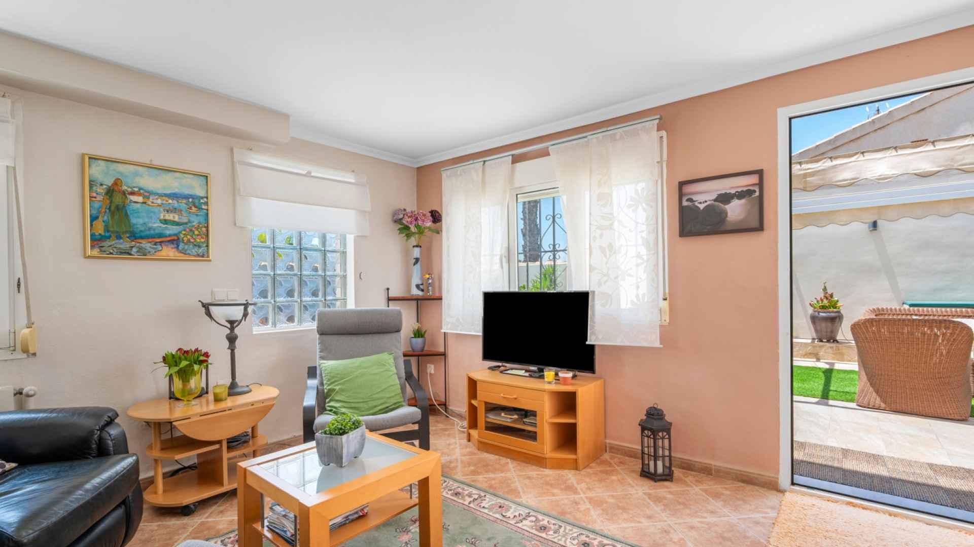 Outside, the villa occupies a generous, South facing plot of 500 m2 which is well maintained, beautifully tiled with a lovely selection of plants. You will also find a very inviting swimming pool (salt water), an outdoor shower, off-road parking along with a carport, a BBQ area, a storage room and several outdoor seating areas, one with a large gazebo offering welcome shade during those hotter months. The garden has automatic irrigation system.