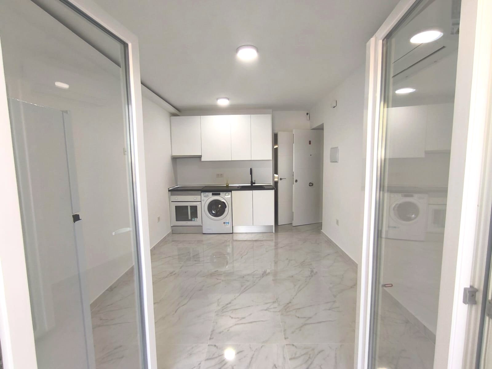 This fully renovated and modernised property comprises of a good size living room which has plenty of room for a sofa bed, an open plan, fitted kitchen, plus a separate and very stylish bathroom with a walk-in shower.
