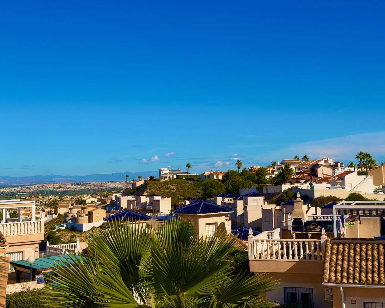 Ciudad Quesada makes up part of the Rojales area in the Southern province of Alicante on the Costa Blanca South. It is located just 7km from the nearest beautiful sandy beaches at Guardamar del Segura and the population is made up of a mixture of nationalities such as Scandinavian, Dutch, German, Belgium, Spanish and British. It has its own bustling high street with many good restaurants, bars, shopping boulevards, supermarkets, petrol stations, medical centers, a, four star luxury spa hotel, Waterpark plus the beautiful La Marquesa golf course. The views from many parts of Ciudad Quesada are wonderful including, salt lake, mountain, countryside and even views of the Mediterranean sea !. The popular town of Torrevieja with its wonderful Marina, seafront promenade and stunning salt lakes is just a 10 minute drive away and the famous Orihuela Costa holiday strip resorts such as Playa Flamenca, Cabo Roig, La Zenia and Punta Prima are just a 20 minute drive away. The area is serviced by two airports; Alicante which can be reached in 40 minutes and the new Corvera airport which can be reached in 55 minutes.