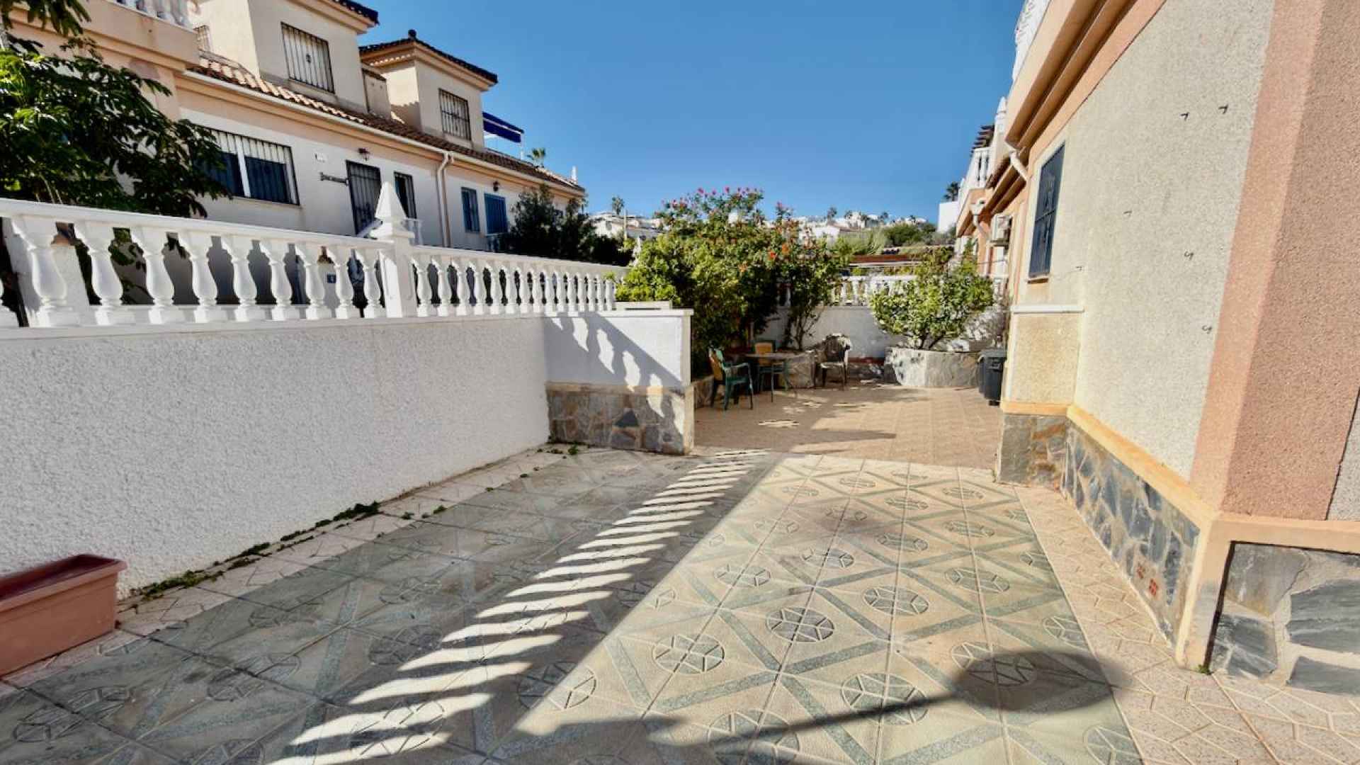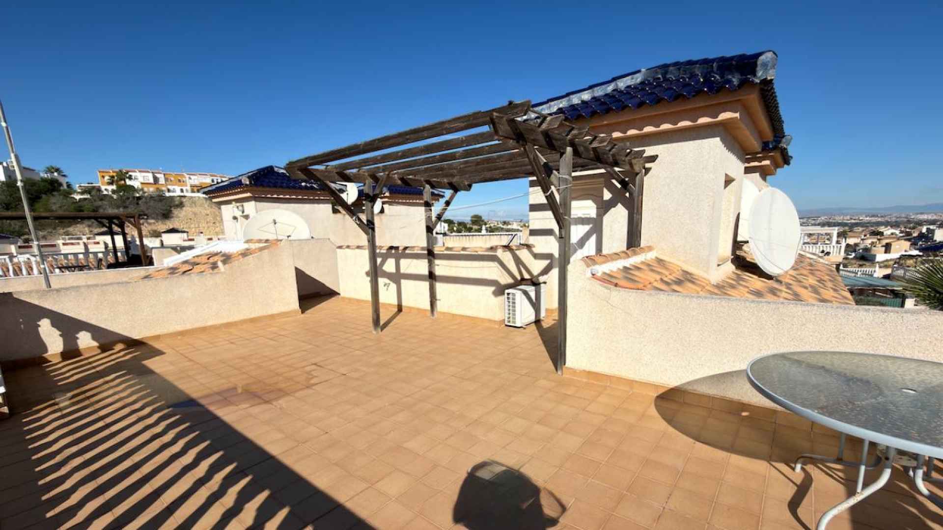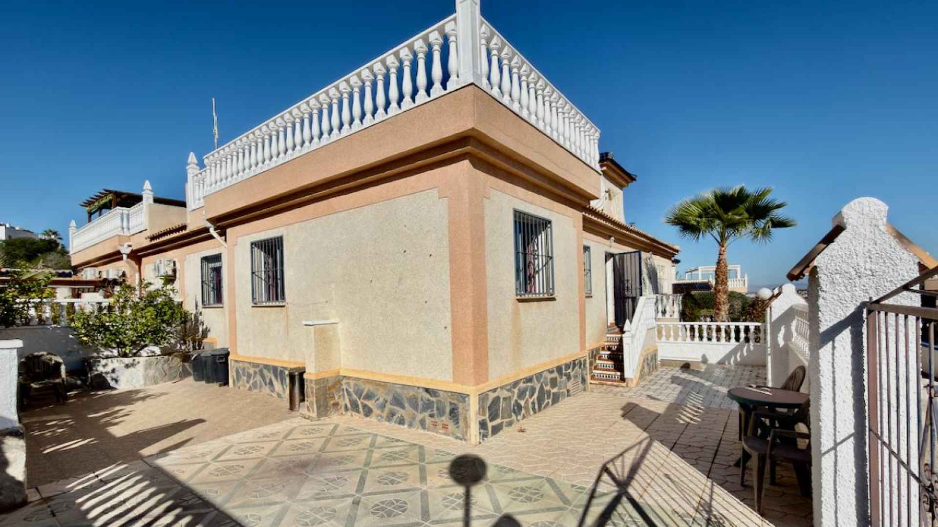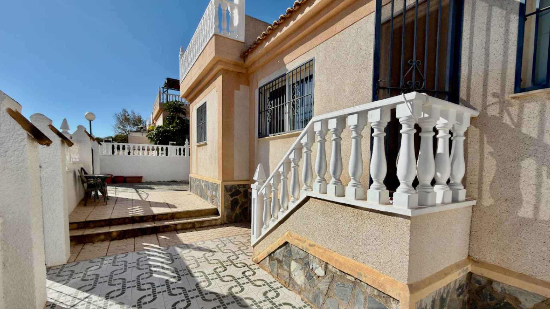 This bright and airy, South-facing, three bedroom, two bathroom, "bluetop" style quad bungalow is located in an elevated part of Ciudad Quesada on the Costa Blanca South. Situated close to a multi purpose Big Shopping store, the Quesada gym and the Snooker and Bowling clubs. There is also a parade of lovely local restaurants and bars nearby plus a new main chain supermarket. In less than a 5 minute drive or 15/20 minute walk you will be down on the stunning La Marquesa golfing area of Ciudad Quesada where you will find a great choice of amenities and in just 5 minutes in the other direction you have bustling Quesada high street with it famous arches, shopping boulevards, banks, bars and restaurants and much much more ... The glorious blue flag beaches of Guardamar del Segura are just a 10 minute drive away.