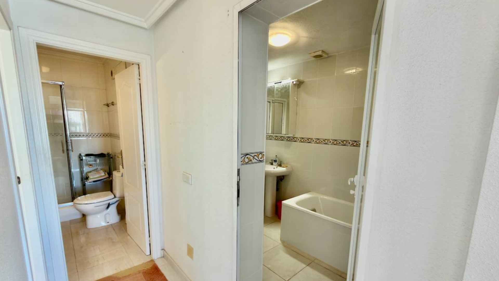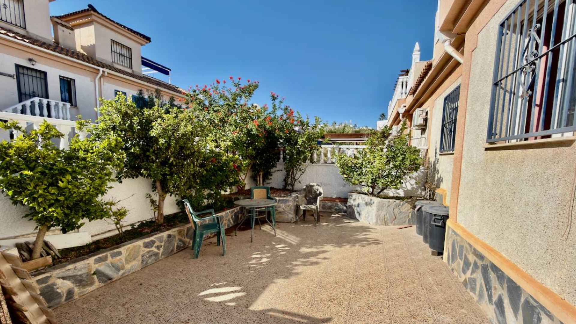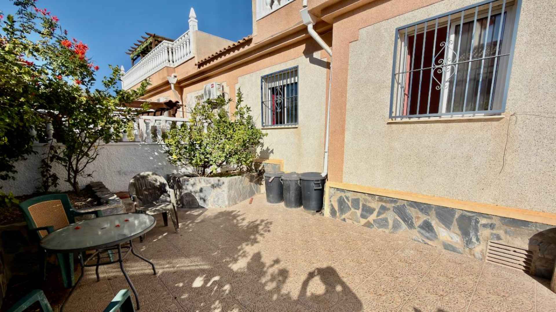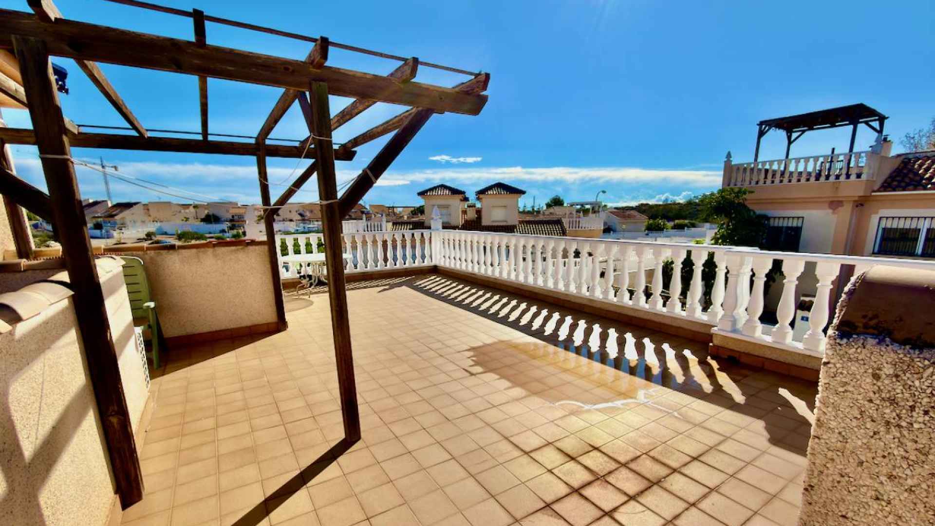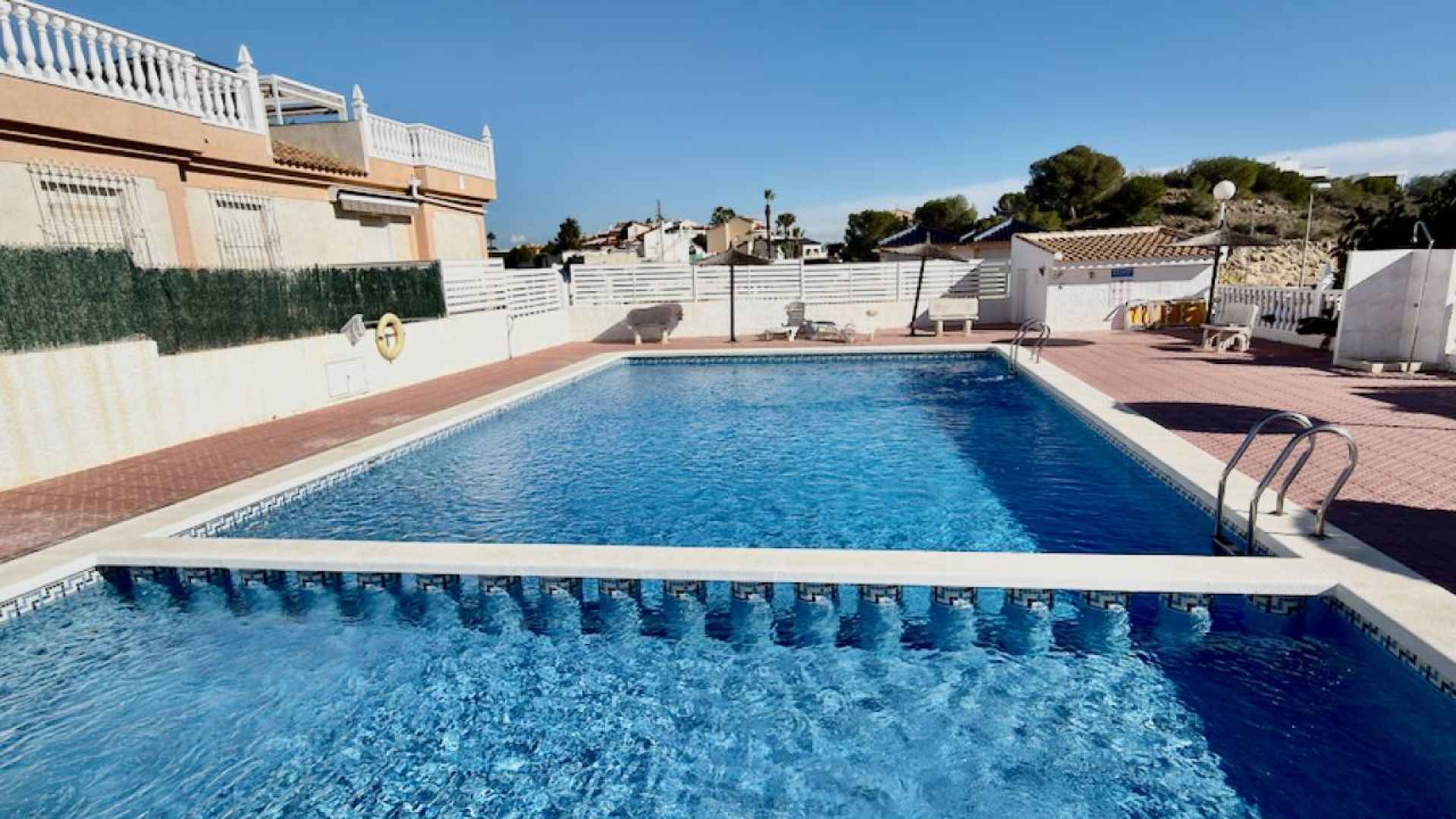 This bright and airy, South-facing, three bedroom, two bathroom, "bluetop" style quad bungalow is located in an elevated part of Ciudad Quesada on the Costa Blanca South. Situated close to a multi purpose Big Shopping store, the Quesada gym and the Snooker and Bowling clubs. There is also a parade of lovely local restaurants and bars nearby plus a new main chain supermarket. In less than a 5 minute drive or 15/20 minute walk you will be down on the stunning La Marquesa golfing area of Ciudad Quesada where you will find a great choice of amenities and in just 5 minutes in the other direction you have bustling Quesada high street with it famous arches, shopping boulevards, banks, bars and restaurants and much much more ... The glorious blue flag beaches of Guardamar del Segura are just a 10 minute drive away.