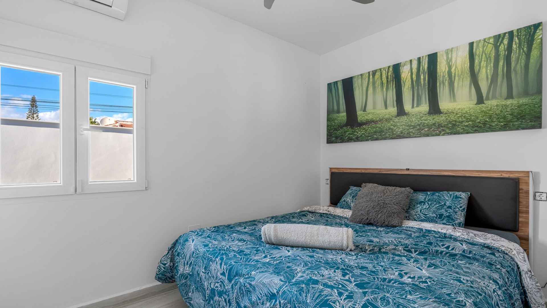 The main floor comprises of; four bedrooms, all equipped with individual air conditioning, two full bathrooms, a spacious and bright living-dining room, and a functional open-plan kitchen with a utility area that integrates seamlessly into the living area.