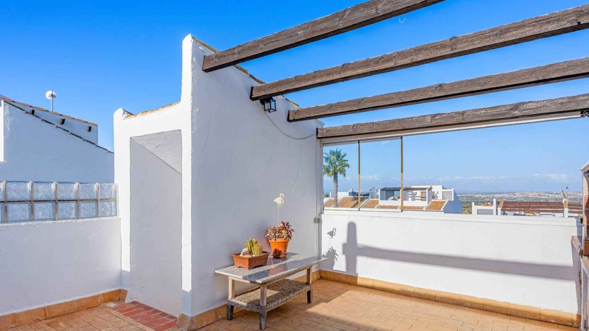 This Wonderful, Spacious, Two Bedroom End-Terraced Townhouse with Solarium, Pool & Sea Views is located in a lovely elevated area of Ciudad Quesada on the Costa Blanca South. Within walking distance you have several nice local bars and restaurants along with a supermarket. The main Quesada high street and La Marquesa golf course are both just a 5 minute drive away where you will find a wealth of amenities such as; shopping boulevards, banks, supermarkets, bars and restaurants. The nearest beautiful sandy beaches can be reached in a 10 minute at Guardamar del Segura.