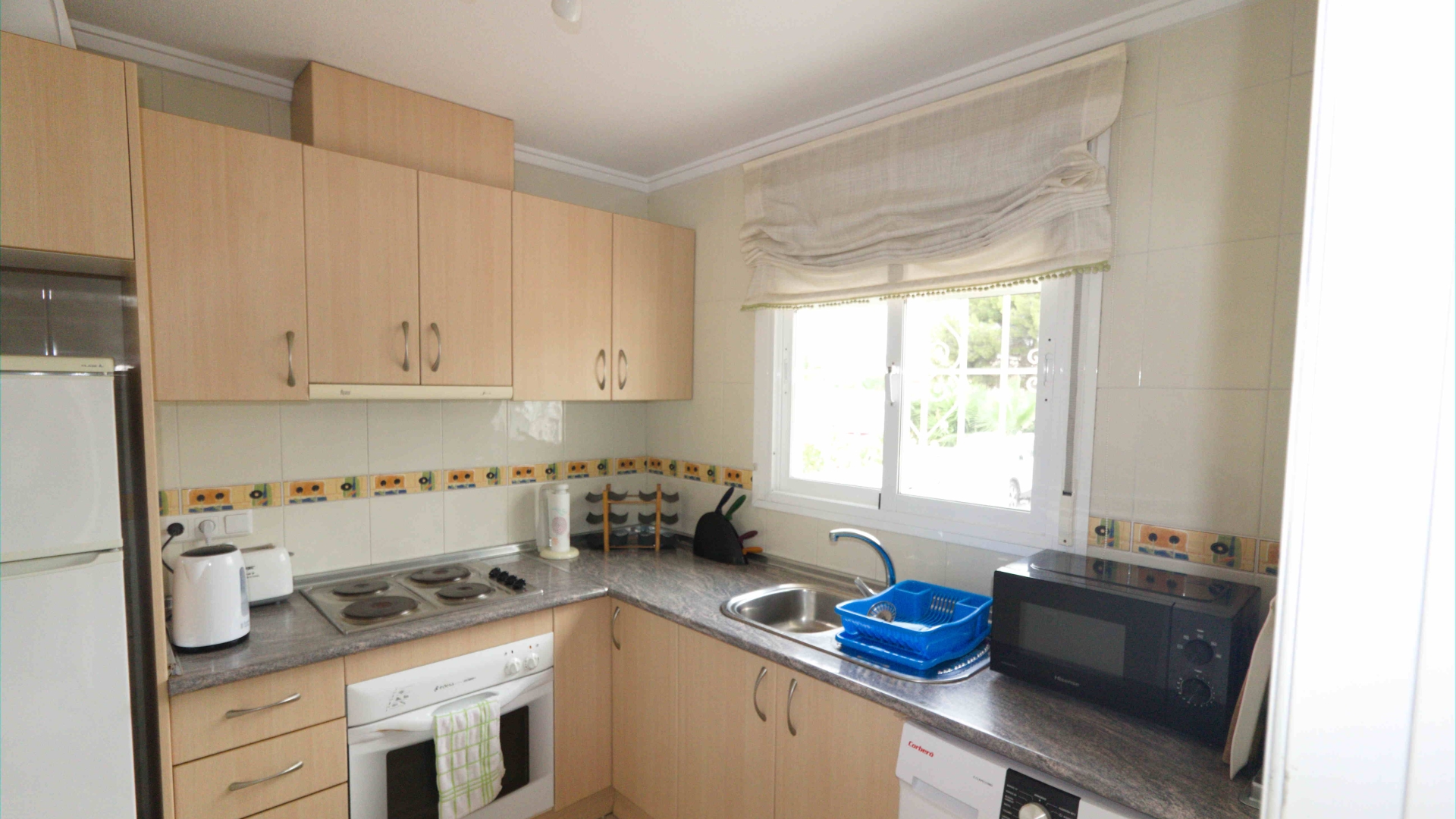 From the kitchen you have a door which leads out to a good size rear sun terrace where you even have room to park your car on the plot, but this area can be used as another nice seating area as the urbanisation has residents off-road parking.