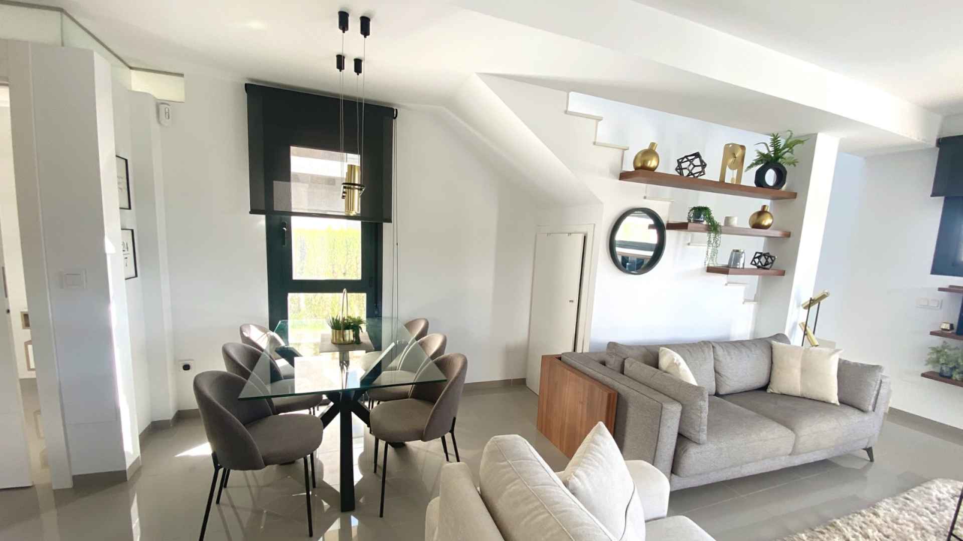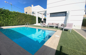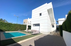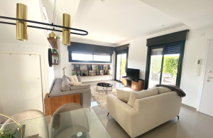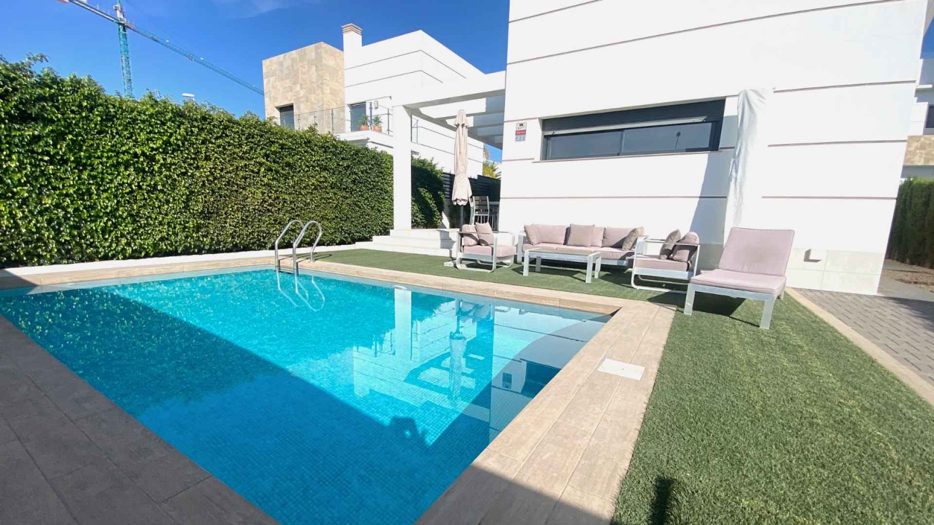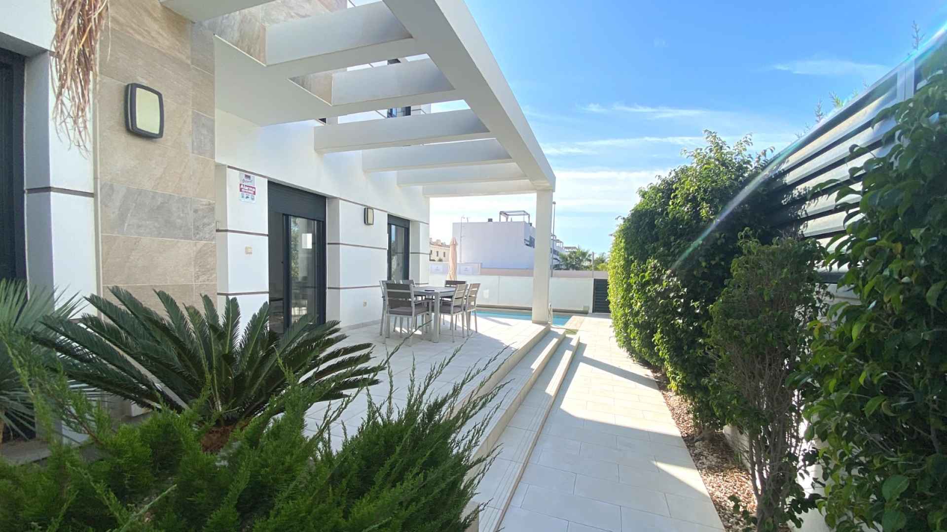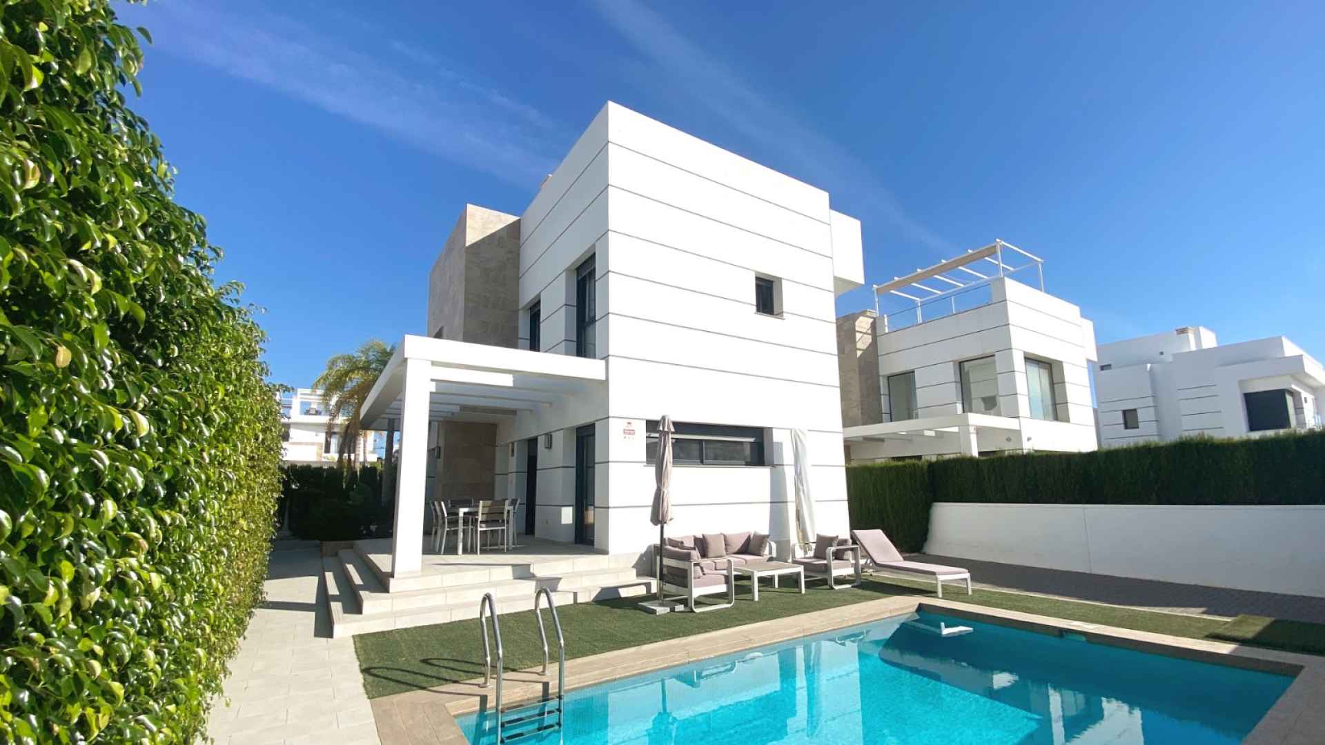 This Attractive, Spacious, Modern Design, three bedroom, three bathroom detached villa is located in the middle of the highly desirable areas of Dona Pepa and Lo Marabu areas of Ciudad Quesada on the Costa Blanca South. The property is situated on a beautiful and well kept gated urbanisation with a fabulous and very large central swimming pool area along with pretty gardens. The property is ideally placed within walking distance to a wealth of amenities including; bars, restaurants, supermarkets, vets and a pharmacy. Also, within walking distance you have the ever popular Quesada high street with its famous arches, banks, supermarkets, shopping boulevards and much more. For the keen golfer you have the beautiful La Marquesa golf course within a short drive and for beach lovers the nearest beautiful sandy beaches can be reached at Guardamar del Segura in an easy 10 minute drive.