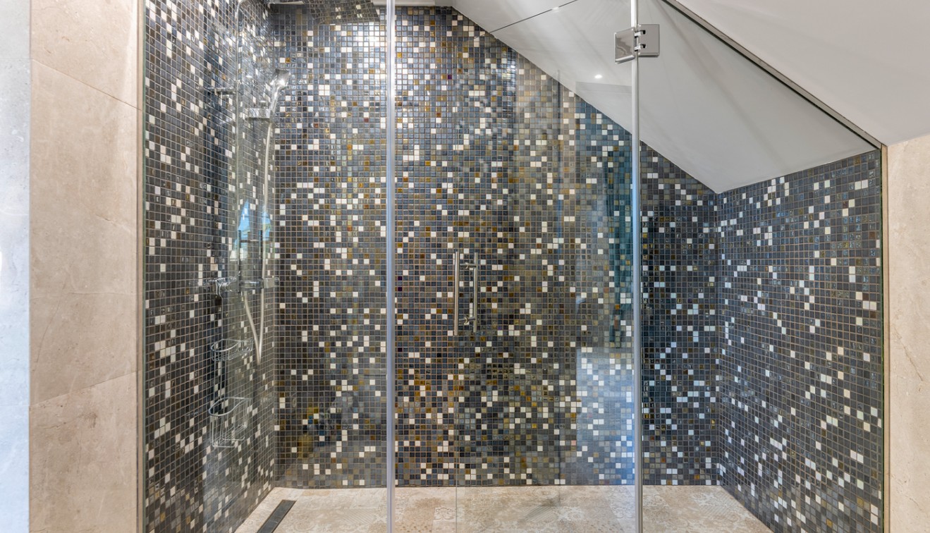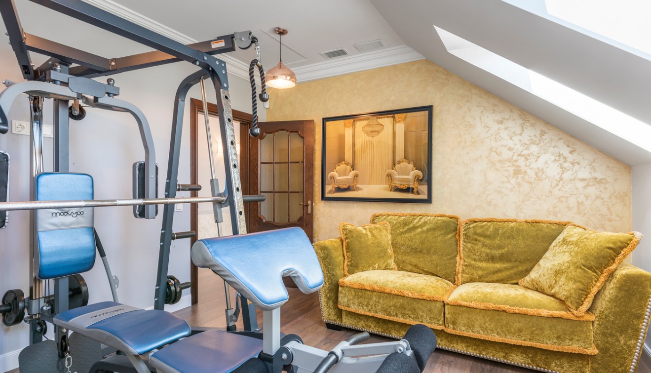 On the second floor you have a big walk in closet, three large bedrooms, one of which has its own lovely sun terrace, plus two bathrooms, one of them en-suite, plus there is a gym area.