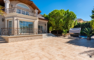 This Attractive, Luxurious, five bedroom, three bathroom detached villa is located in the prestigious area of Doña Pepa, Ciudad Quesada on the Costa Blanca South. This villa is just a short walk from the popular La Laguna Hotel and Spa, where you also have many amenities and bars and restaurants to enjoy! Juts a few minutes drive away you have the main Quesada high street where you will find; bars, restaurants, supermarkets, banks, vets, cafes, shopping boulevards and much much more. The award winning sandy beaches of Guardamar del Segura are just a 10 minute drive away and the beautiful La Marquesa golf just a 5 minute drive away.
