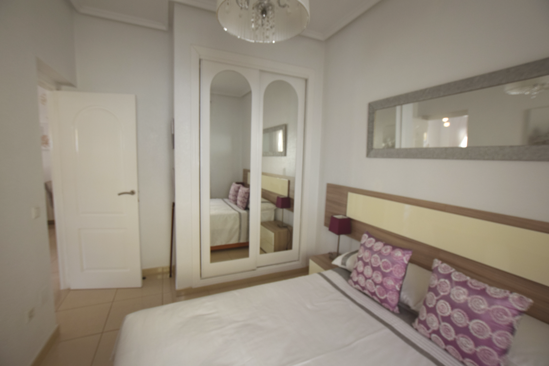This Attractive 7 South-facing, two bedroom, semi-detcahed villa is located in the pretty La Fiesta area of Ciudad Quesada on the Costa Blanca South. Within a short 5 minute drive you will find a good choice of amenities down on the golf course including; a main brand supermarket, bars, restaurants along with the new clubhouse. Within a 15 walk you have the pretty Recorral nature park with its lovely lakes and picnic area, plus a main brand supermarket. The main Quesada high street is just a short drive away where you will find a great choice of amenities such as; banks, shopping boulevards, supermarkets, bars, cafes, restaurants and much more. The nearest lovely sandy beaches are just a 10 minute drive away at Guardamar del Segura.