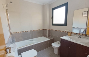 Upstairs you will find two further double bedrooms with fitted wardrobes and air-conditioning plus the family bathroom with bathtub. A door takes you out onto a sun terrace, the perfect spot for coffee in the morning.