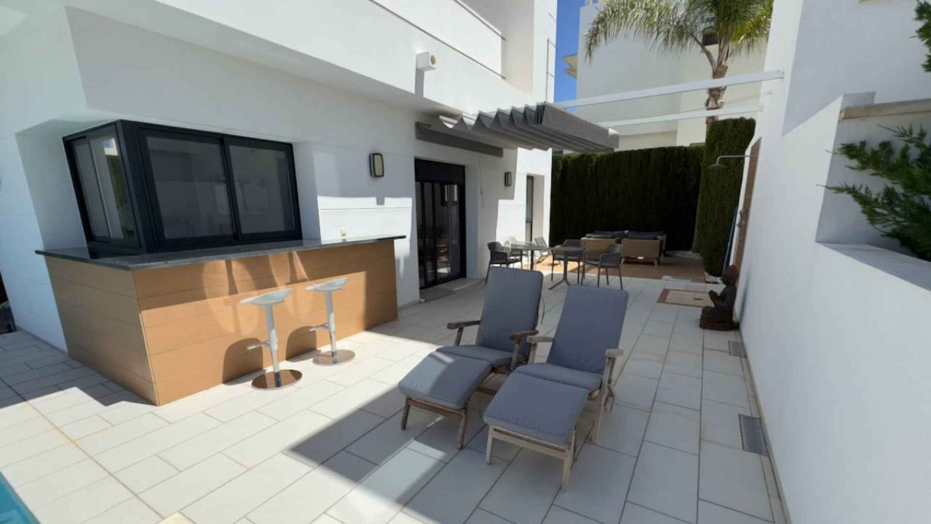 This modern style, immaculately presented, 3 bedroom, 3 bathroom detached villa is located in the popular Lo Marabu area of Ciudad Quesada on the Costa Blanca South. Situated within easy walking distance of many local amenities such as supermarkets, restaurants and bars plus it is also close to Dona Pepa and its lovely four star spa hotel. The very popular Quesada high street with its famous arches and a wealth of amenities is also within walking distance where you will find; shopping boulevards, banks, shops, bars, restaurants, supermarkets and much more. The stunning La Marquesa golf course and the family Aqua Park are also close by. The nearest beautiful sandy beaches can be found at Guardamar del Segura in a short 10 minute drive and for the keen golfer there are several terrific golf courses very nearby including; La Marquesa, La Finca, Las Colinas and Vistabella.
