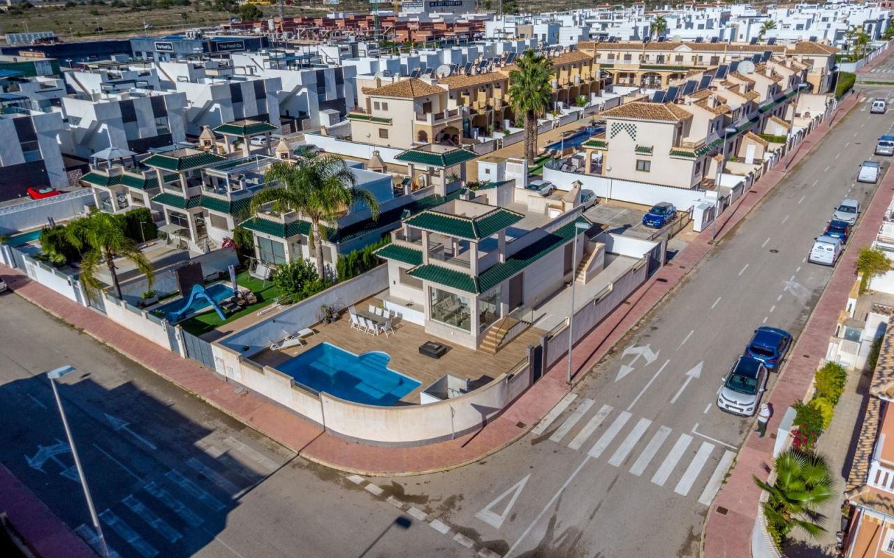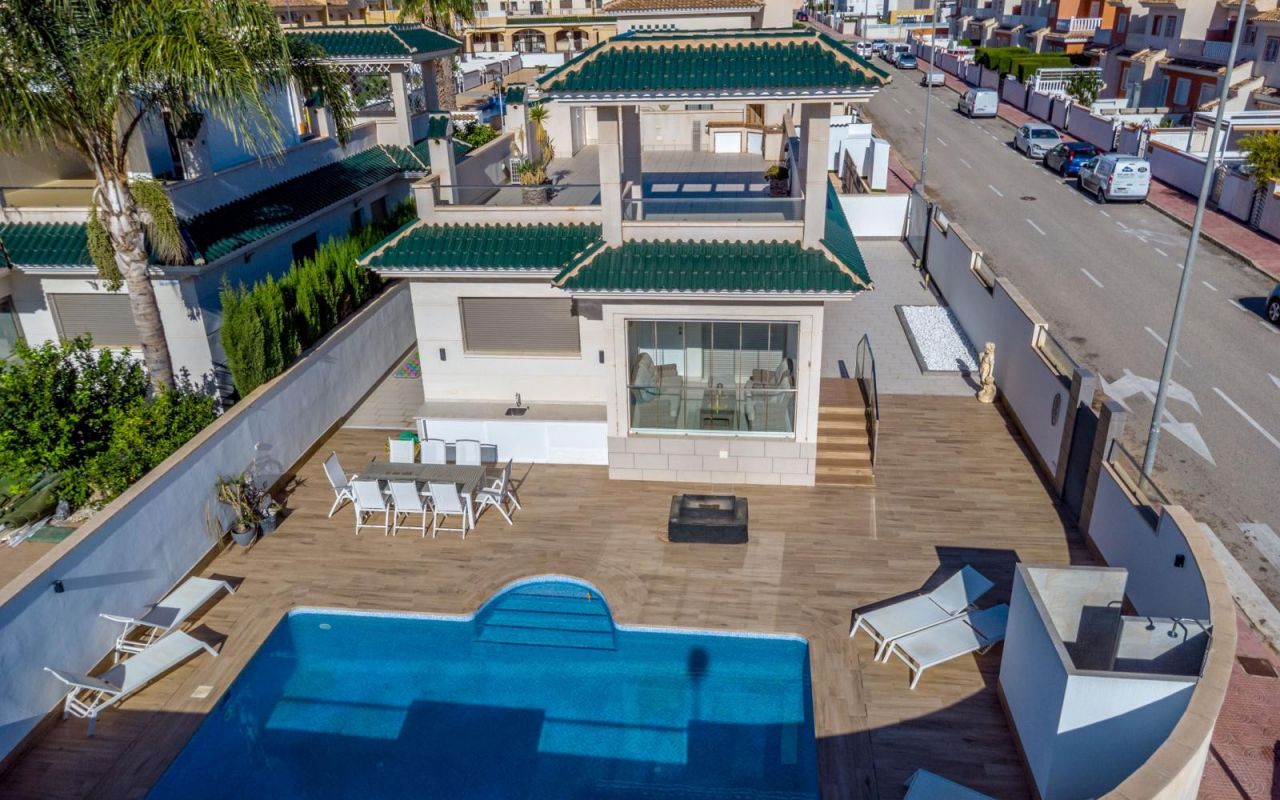 This Stunning, Beautifully Presented, three bedroom, two bathroom detached villa is located in the popular Lo Marabu area of Ciudad Quesada on the Costa Blanca South. Ideally situated within easy walking distance of many local amenities such as supermarkets, pharmacy, vets, restaurants and bars plus it is also close to Dona Pepa and its lovely four star spa hotel. The very popular Quesada high street is also within a 20 minute walk or less than 5 minutes by car where you will find a wealth of amenities including; shopping boulevards, banks, shops, bars, restaurants, supermarkets, petrol station, bowling alley, mini golf and much more. The nearest beautiful sandy beaches can be found at Guardamar del Segura in a short 10 minute drive and for the keen golfer there are several terrific golf courses nearby including; La Marquesa, La Finca, Las Colinas and Vistabella. Quesada also has its own family Aqua Park and the Recorral nature park with its lovely lakes and picnic areas.