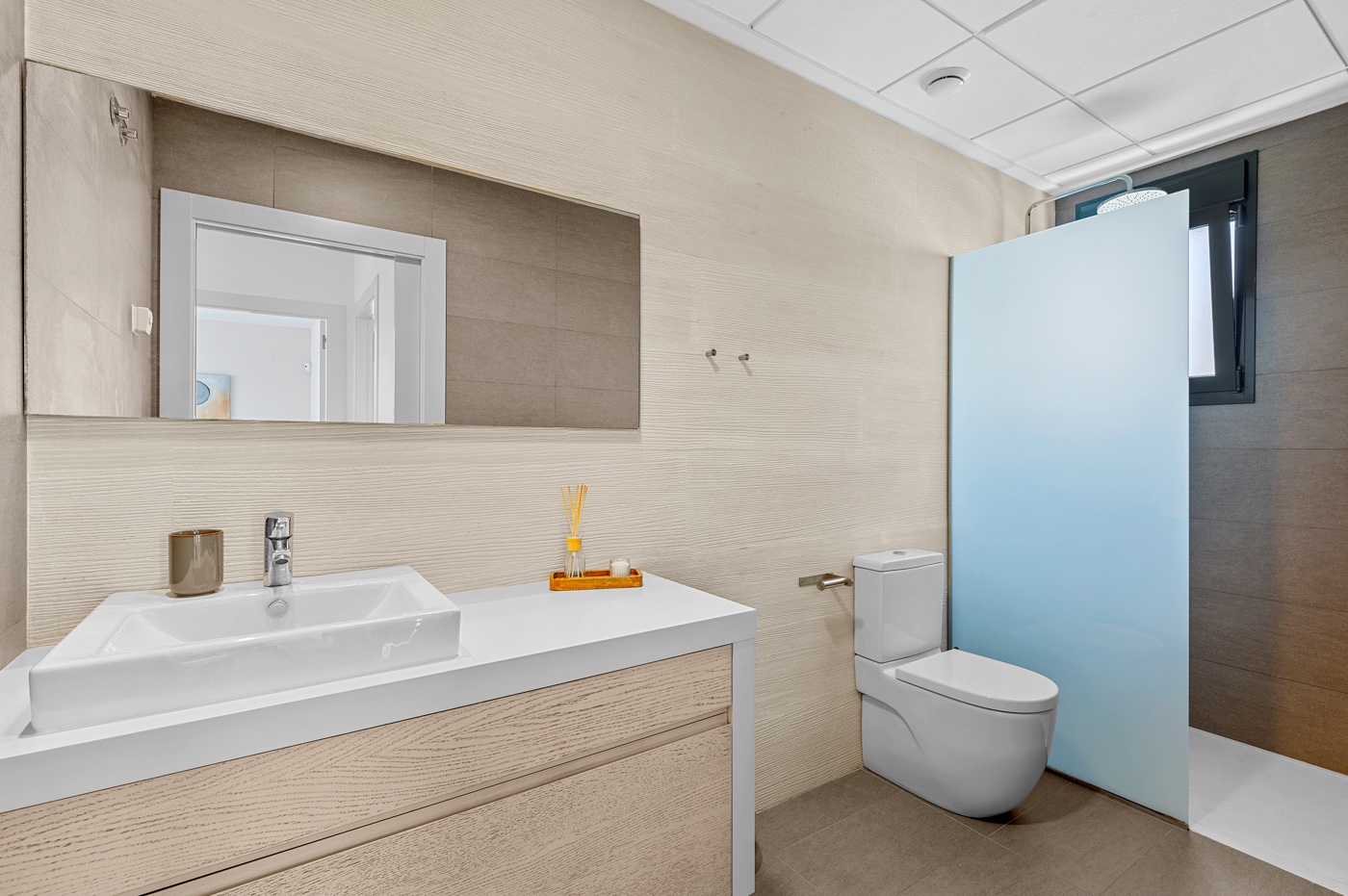 This lovely, South-West facing villa has 120m2 of living space on a 200m2 plot and offers modern living in a prime location.