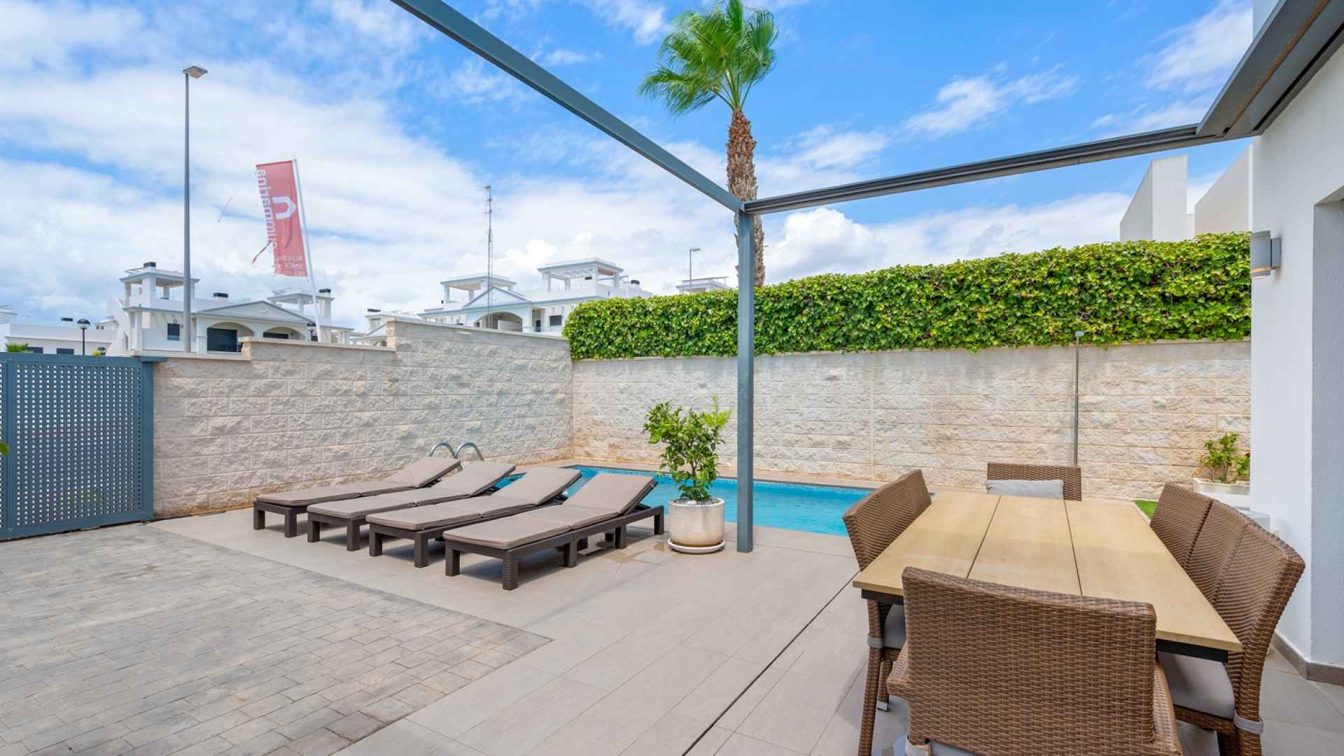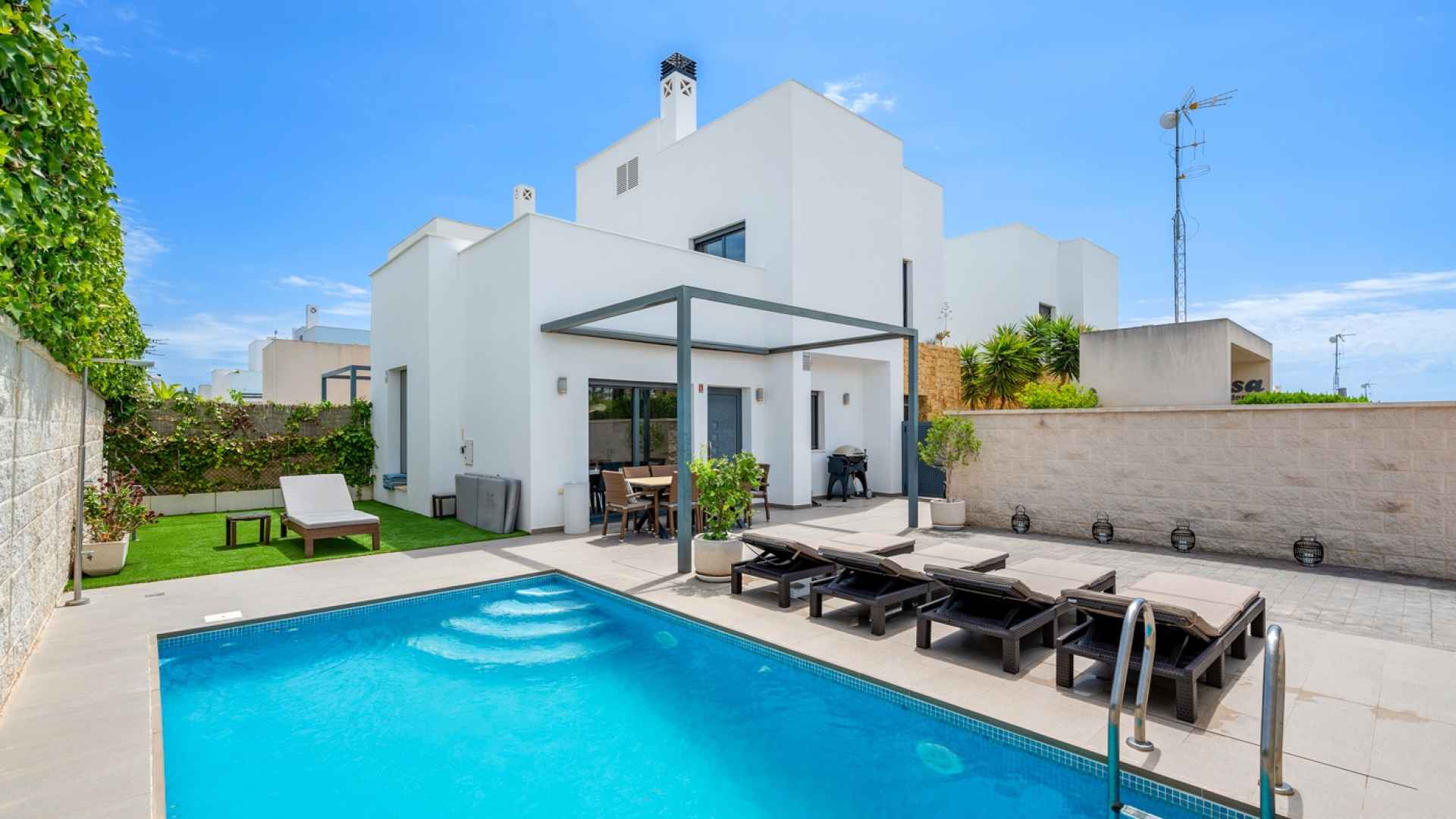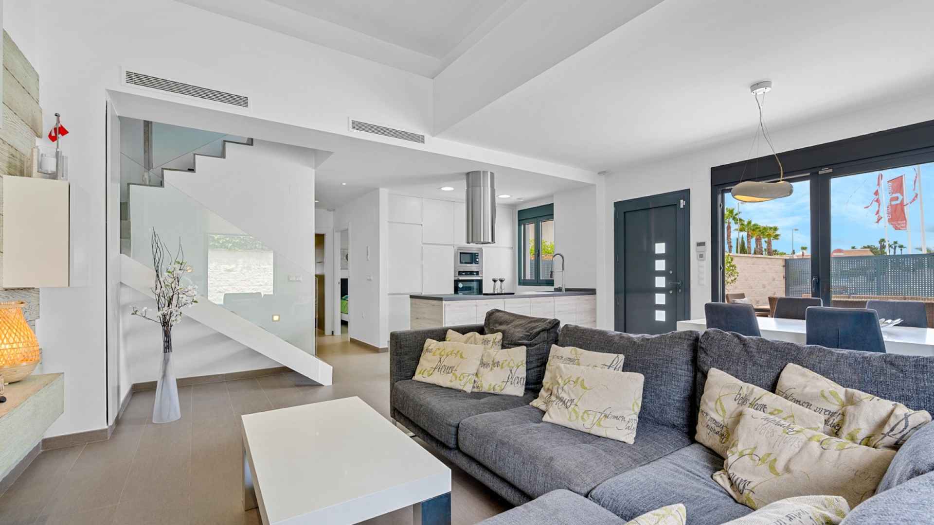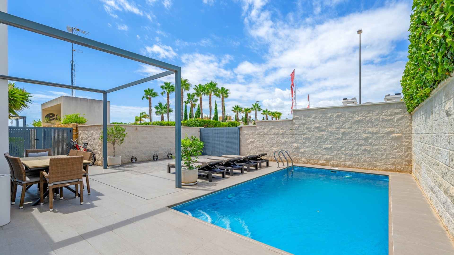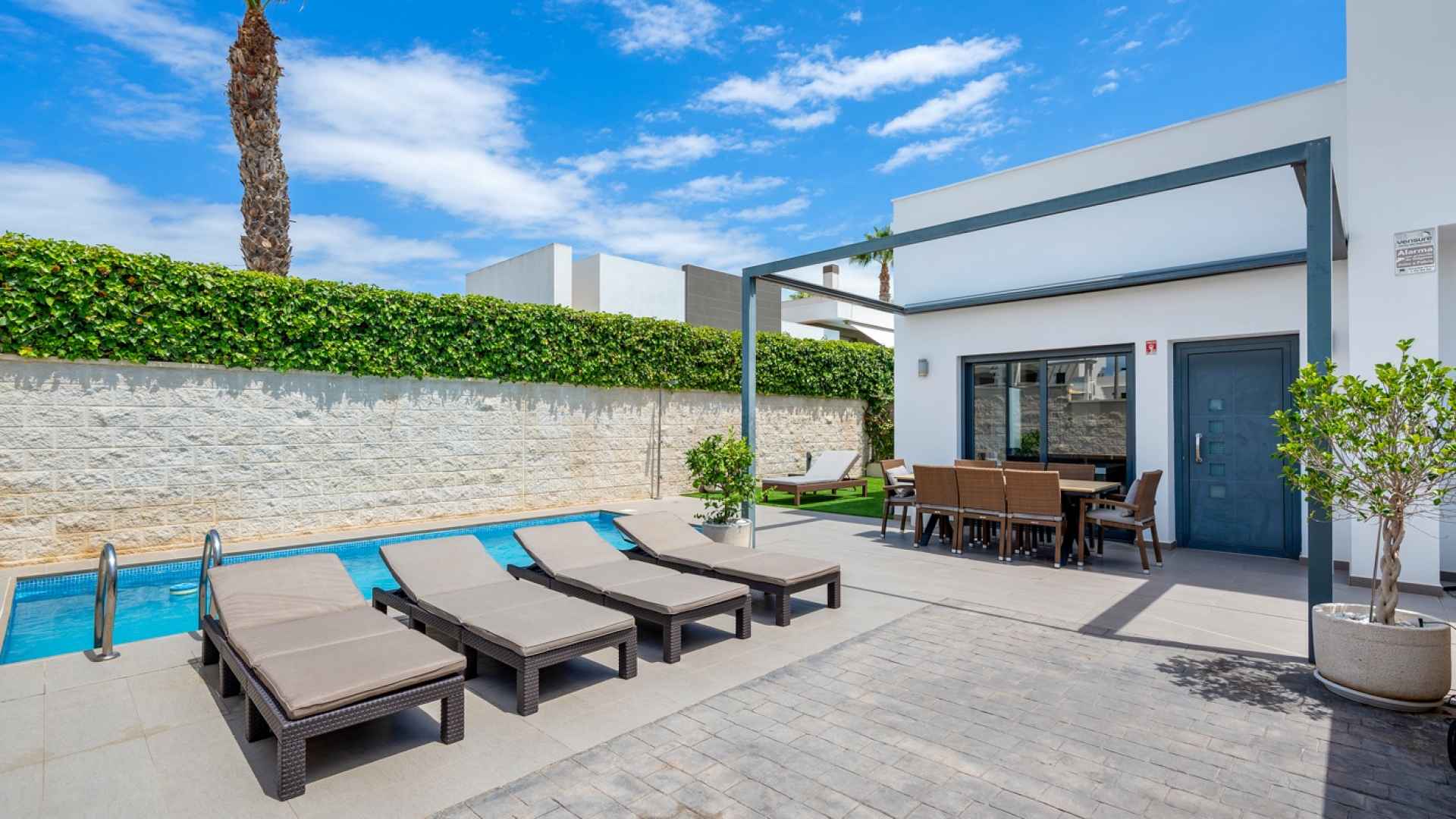 This Stylish and contemporary three bedroom, two bathroom detached villa is located in the very sought after area of Pueblo Bravo, Ciudad Quesada on the Costa Blanca South. Within easy walking distance you have some local bars and restaurants, a private school plus a main brand supermarket. Nearby you will find the wonderful Quesada high street with a wealth of amenities and services including; restaurants, bars, supermarkets, banks and two shopping boulevards. The very desirable area of Dona Pepa with its 4* luxury spa hotel, the family Aqua Park and the stunning La Marquesa golf club with its lovely clubhouse are all close The nearest stunning sandy beaches of Guardamar del Segura are less than a 10 minute drive away.