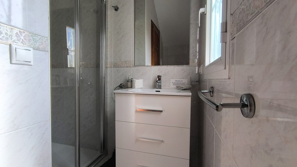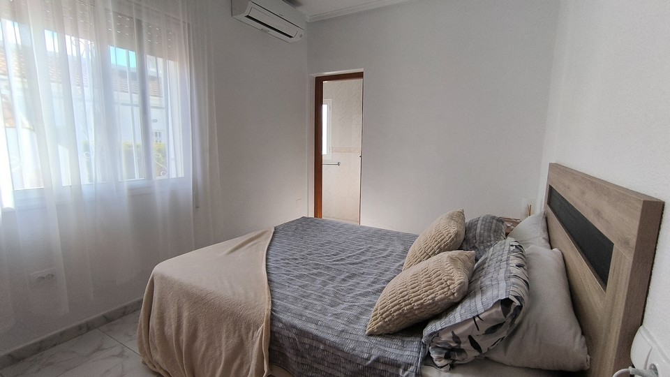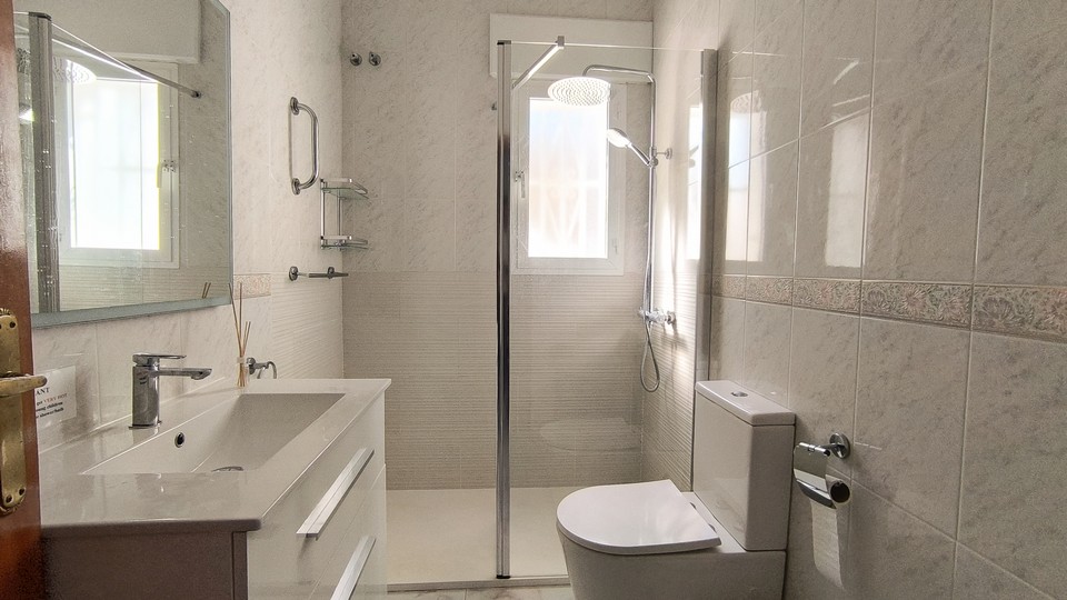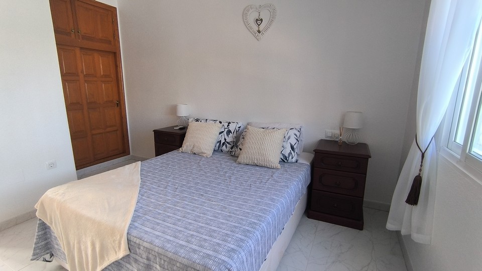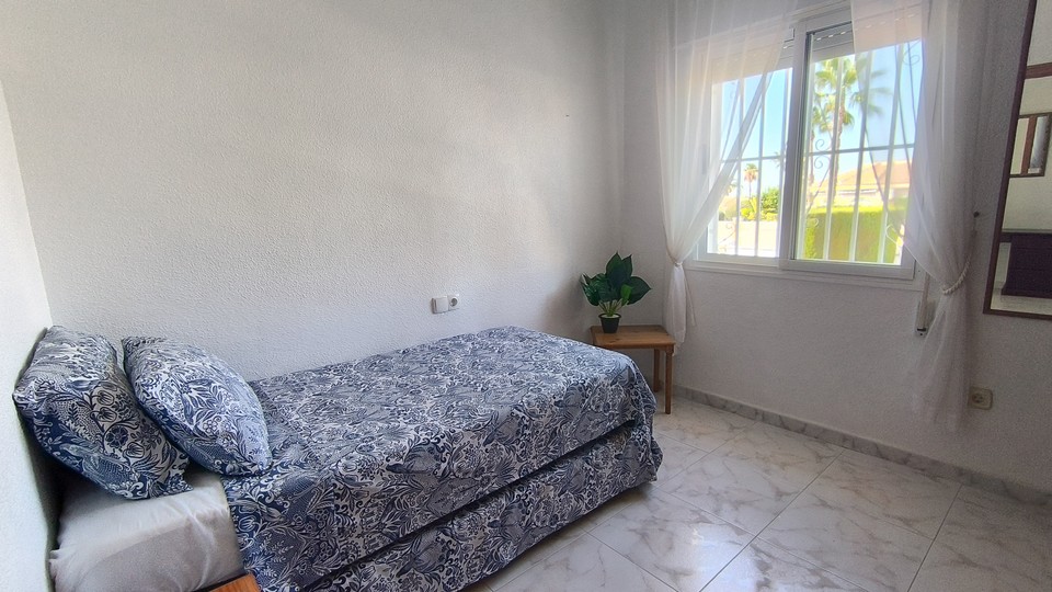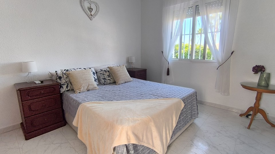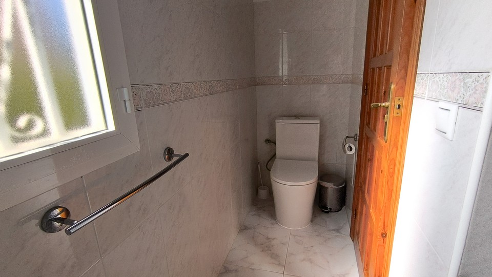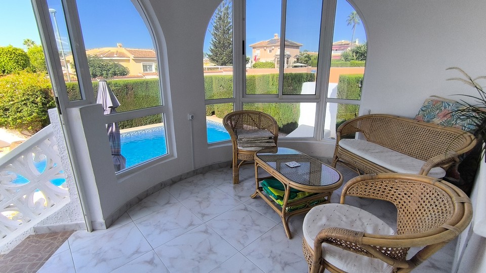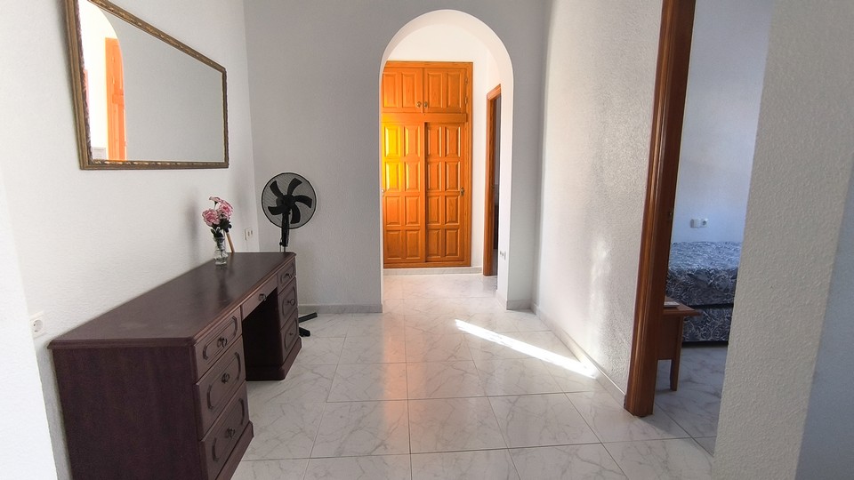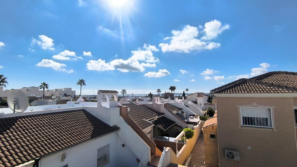 This Attractive and well presented three bedroom, two bathroom detached villa is located in the highly desirable area of Pueblo Bravo, Ciudad Quesada on the Costa Blanca South. Within walking distance you will find; a main brand supermarket, bars, restaurants, and a private school. Also very nearby you have the local amenities of Dona Pepa to include; a pharmacy, bars, restaurants, medical centre, language school plus the lovely La Laguna spa hotel. An easy 5 minute drive will take you into the very popular main Quesada high street which offers a further wealth of amenities and services including; restaurants, bars, supermarkets, banks, petrol station, bowling alley and two shopping boulevards. Also close by is the beautiful La Marquesa golf course with its lovely clubhouse, a main brand supermarket plus several bars and restaurants. The pretty Recorral Nature Park with its lovely lakes and picnic areas and the Rojales family Aqua park are also just a short drive away. The nearest stunning sandy beaches can be reached in an easy 10 minute drive at Guardamar del Segura.