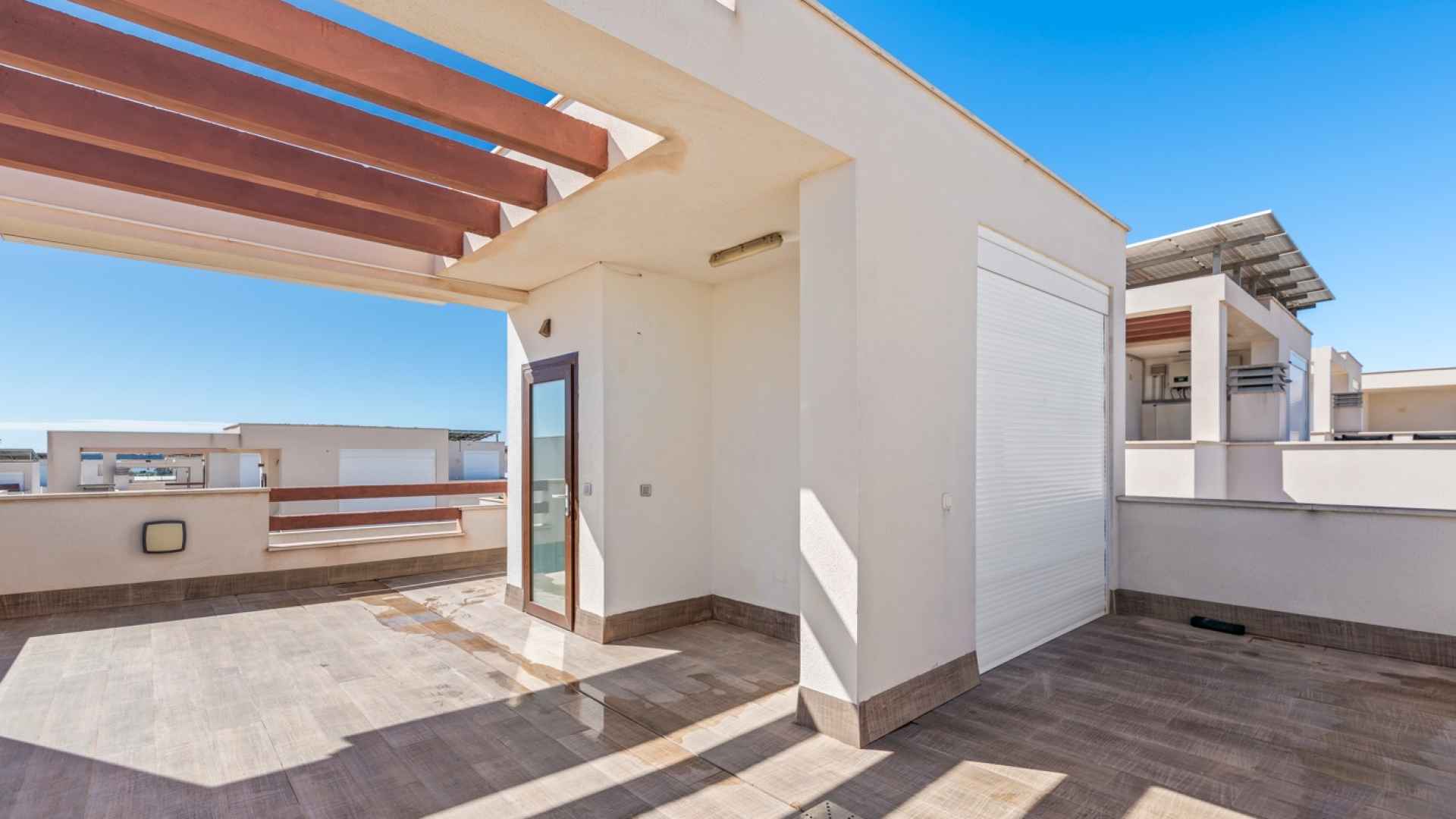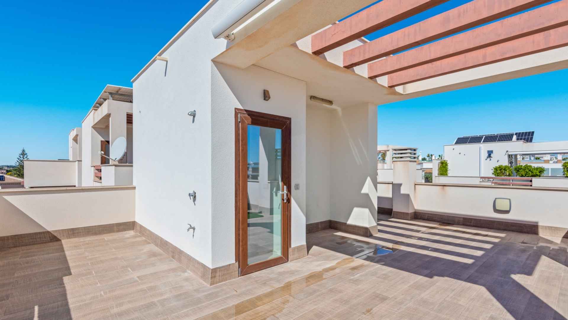 The upper floor has a solarium with space for an outdoor kitchen and a jacuzzi installation.