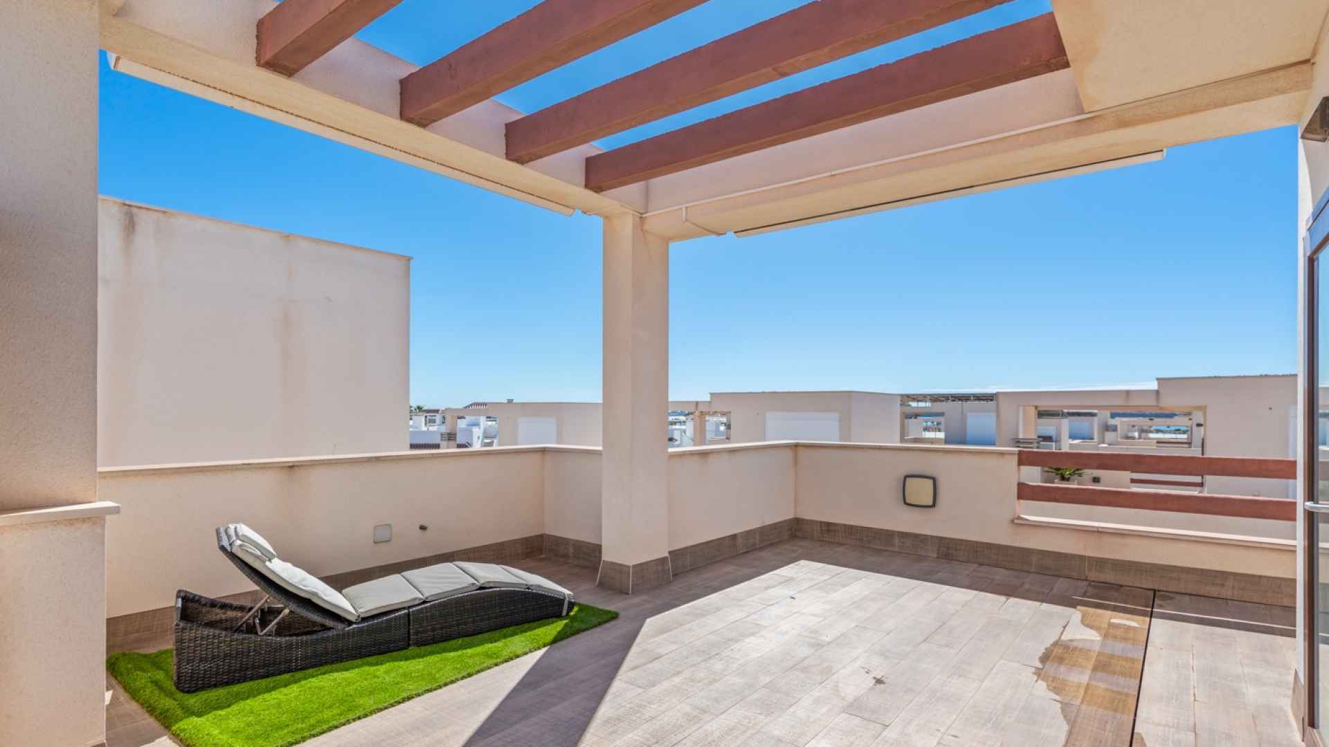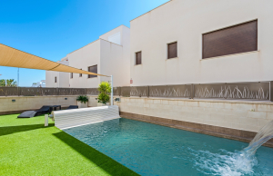 This Stunning, Spacious & Beautifully presented, three bedroom, three bathroom villa is located in the highly desirable area of Pueblo Bravo, Ciudad Quesada on the Costa Blanca South. Within walking distance you will find; a main brand supermarket, bars, restaurants, and a private school. Also very nearby you have the local amenities of Dona Pepa to include; a pharmacy, bars, restaurants, medical centre, language school plus the lovely La Laguna spa hotel. An easy 5 minute drive will take you into the very popular main Quesada high street which offers a further wealth of amenities and services including; restaurants, bars, supermarkets, banks, petrol station, bowling alley and two shopping boulevards. Also close by is the beautiful La Marquesa golf course with its lovely clubhouse, a main brand supermarket plus several bars and restaurants. The pretty Recorral Nature Park with its lovely lakes and picnic areas and the Rojales family Aqua park are also just a short drive away. The nearest stunning sandy beaches can be reached in an easy 10 minute drive at Guardamar del Segura.