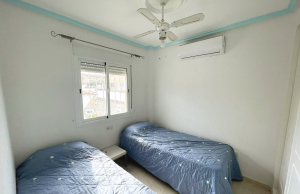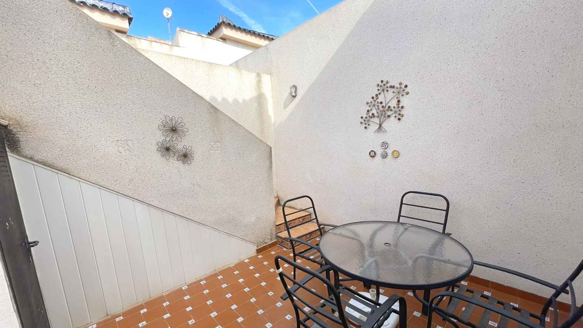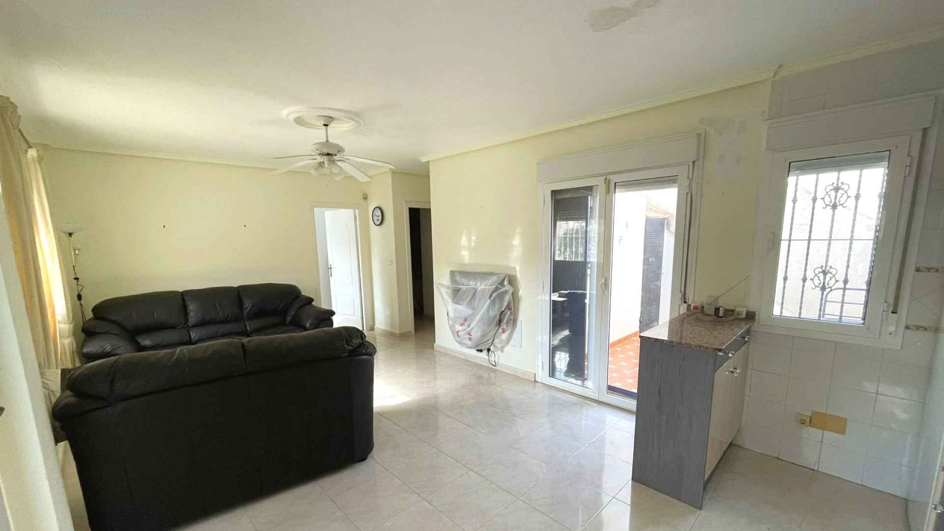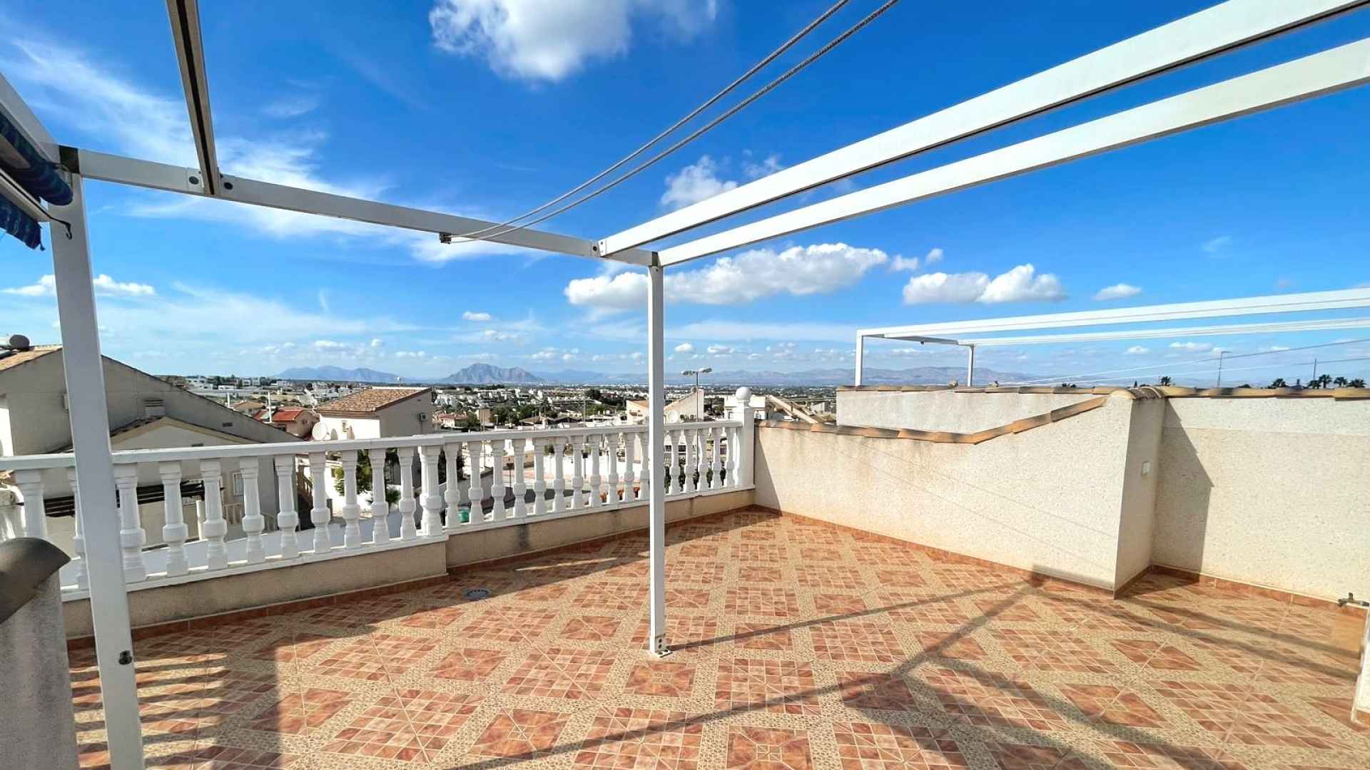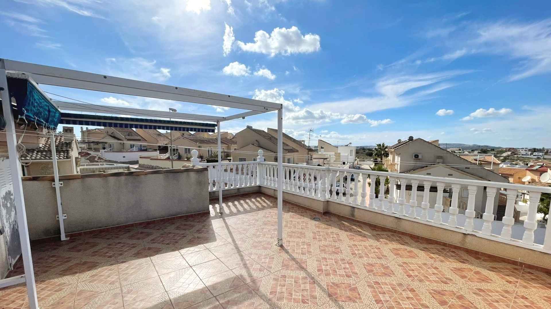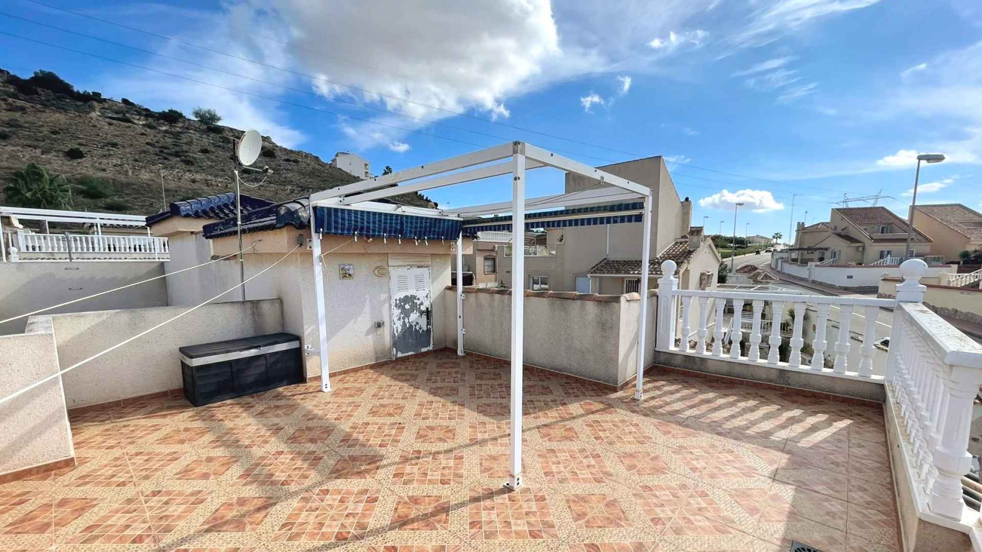 This Lovely, South-facing, two bedroom, two bathroom "bluetop" style quad bungalow is located in a lovely quiet residential area of Benimar/Rojales Hills Hills on the Costa Blanca South. Situated between the thriving towns of Rojales & Ciudad Quesada and within a 5 minute drive or 15/20 minute walk of the popular Benimar commercial centres where you will find a great choice of; bars, restaurants, supermarkets. Benimar is a popular residential area and plays host to an array of nationalities. At the entrance there are two large commercial centres consisting of a great choice of bars, restaurants, shops, and even a Veterinary hospital. There is also a large park and recreational area which boasts a boat lake and stream, playground, seating areas, pedestrian and bicycle paths plus a woodland and barbeque area along with a new cafe! he nearest stunning beaches at Guardamar del Segura can be reached in an easy 10–15-minute drive and for the keen golfer you have a fabulous choice of courses in the area including; La Finca, La Marquesa and Las Colinas. Also nearby is the family aqua Park in Rojales Hills.