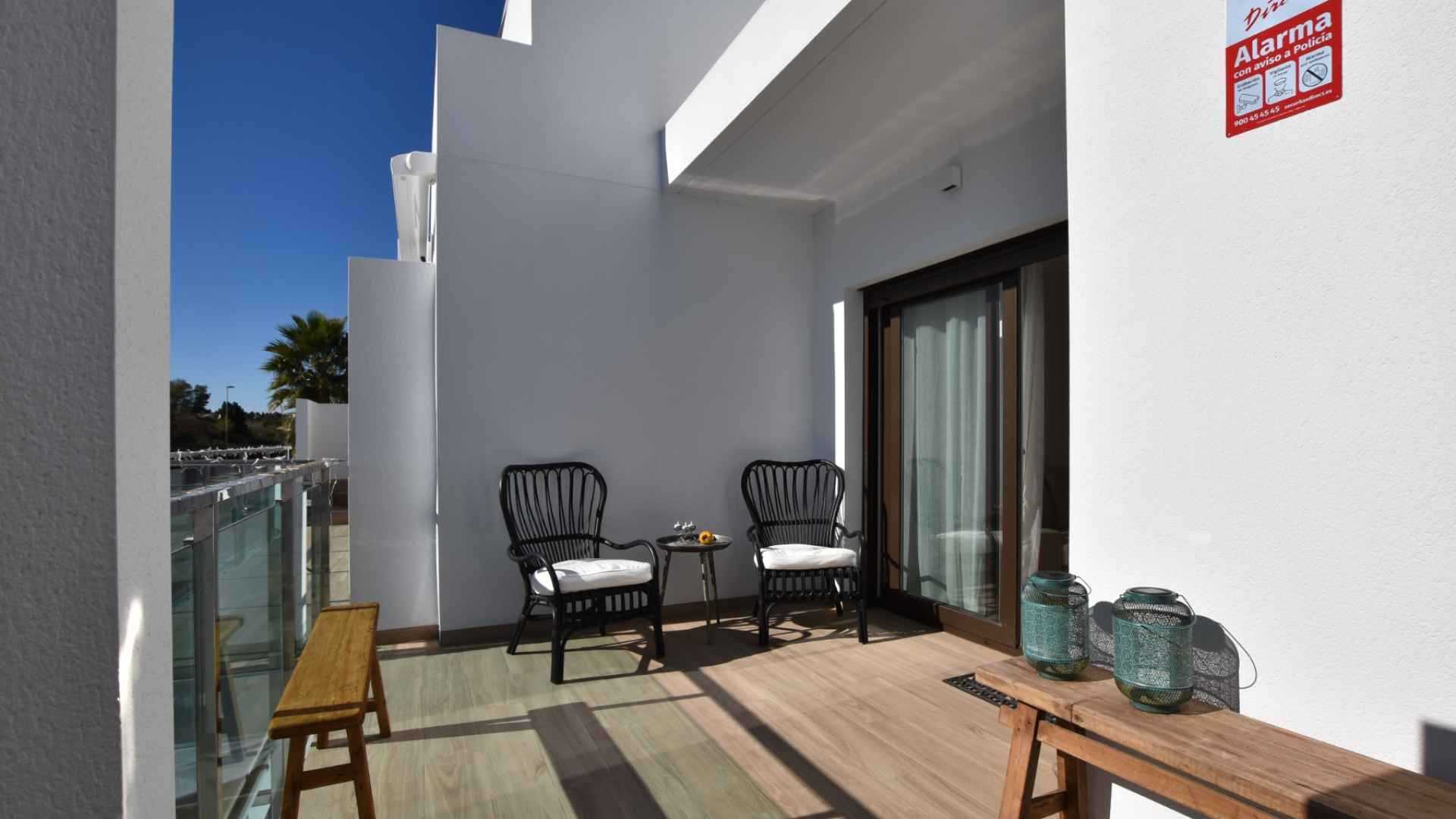 This Spacious and very nicely presented, contemporary style two bedroom, two bathroom penthouse apartment is located in the popular area of Entre Naranjos, Vistabella Golf on the Costa Blanca South. Within easy walking distance you will find a wide range of bars and restaurants including; a pharmacy, supermarket, golf course, club house, driving range, tennis courts and much more ... The towns of Torremendo and Los Montesinos are just a short drive away and the popular coastal resorts of the Orihuela Costa such as; Playa Flamenca, La Zenia and Cabo Roig are also only a 20 minute drive away each with their own amenities and lovely sandy beaches. For the keen golfer you also have some other fabulous golf courses nearby such as; Las Colinas, La Marquesa, La Finca, Campoamor, Las Ramblas and Villamartin.