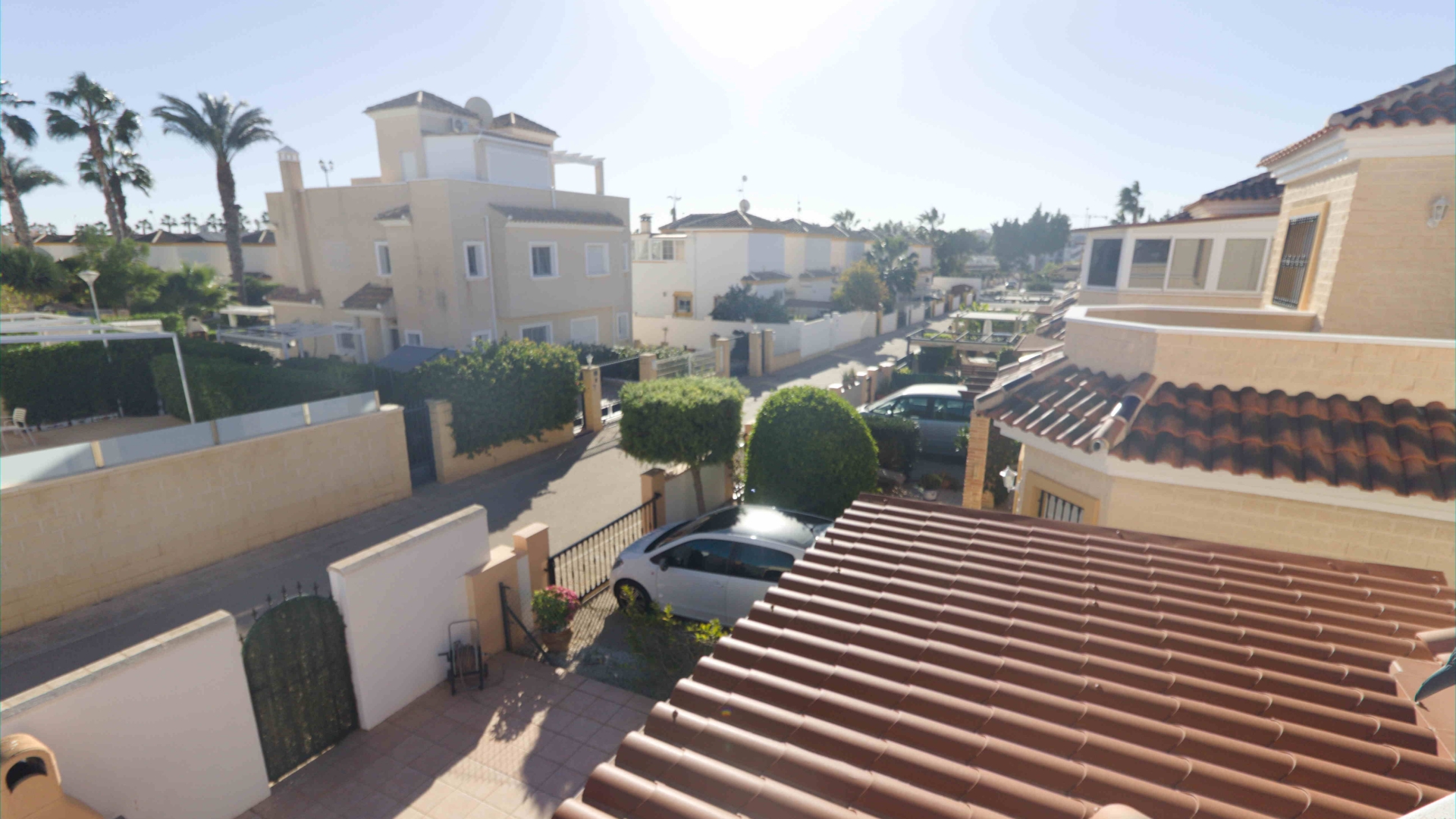 This Fabulous, Spacious & Immaculately presented, three bedroom corner plot “Lagomar Style” detached villa is located on the pretty and very desirable residential urbanisation of El Raso, Guardamar Del Segura on the Costa Blanca South. The villa makes up part of an established community which benefits from a large gated swimming pool and wonderful green areas. This property is within walking distance to a great choice of amenities at the two local commercial centres which include; bars, restaurants, a mini supermarket, pharmacy, vets, plus a local bus route into Guardamar del Segura where you will find the nearest stunning sandy blue flag beaches. The very popular town of Ciudad Quesada with its La Marquesa golf course, Aqua Park and bustling high street is a 5 minute drive away as is the nearest large main brand supermarket. El Raso also has its own entrance to the Lemon Tree Sunday market.