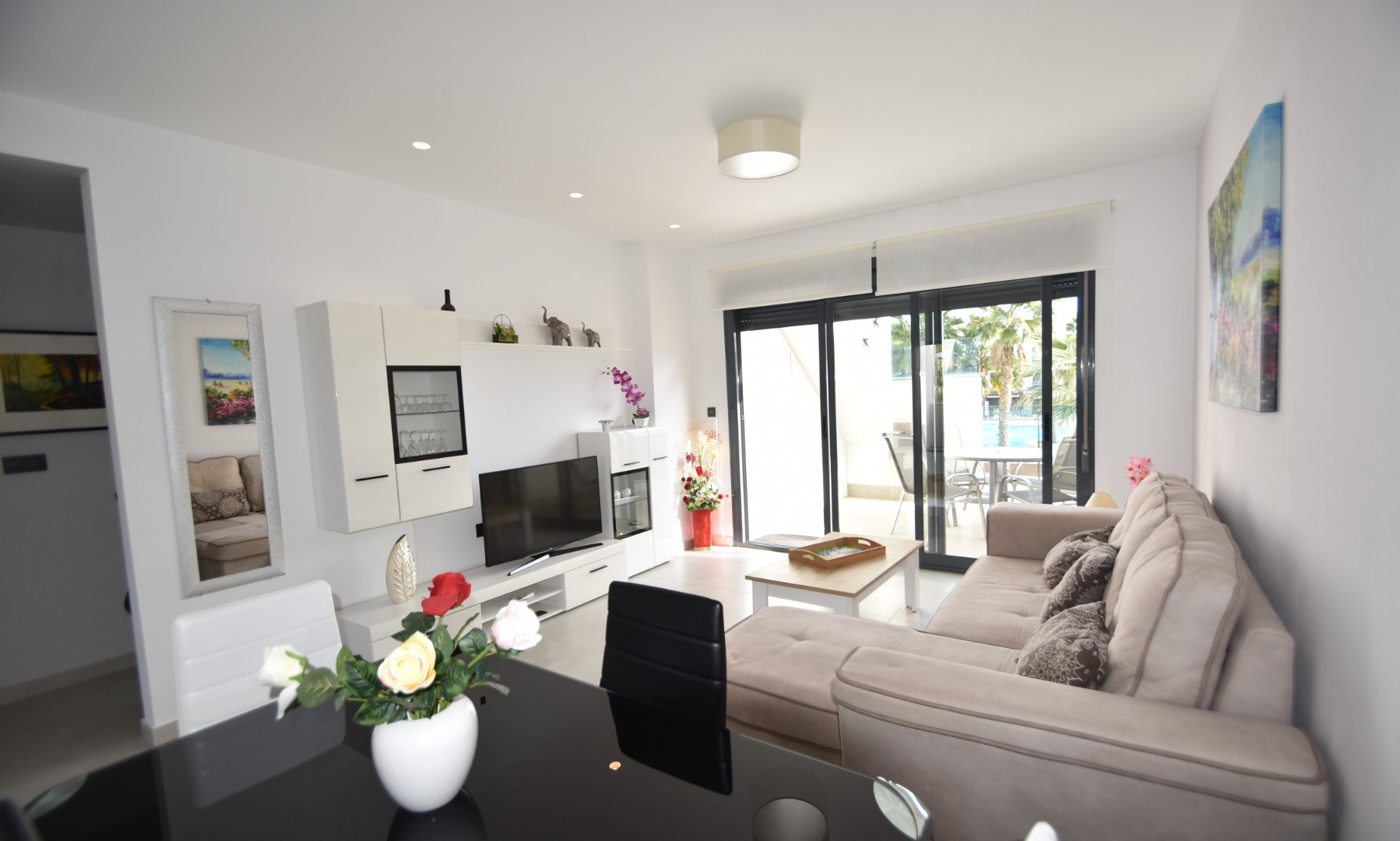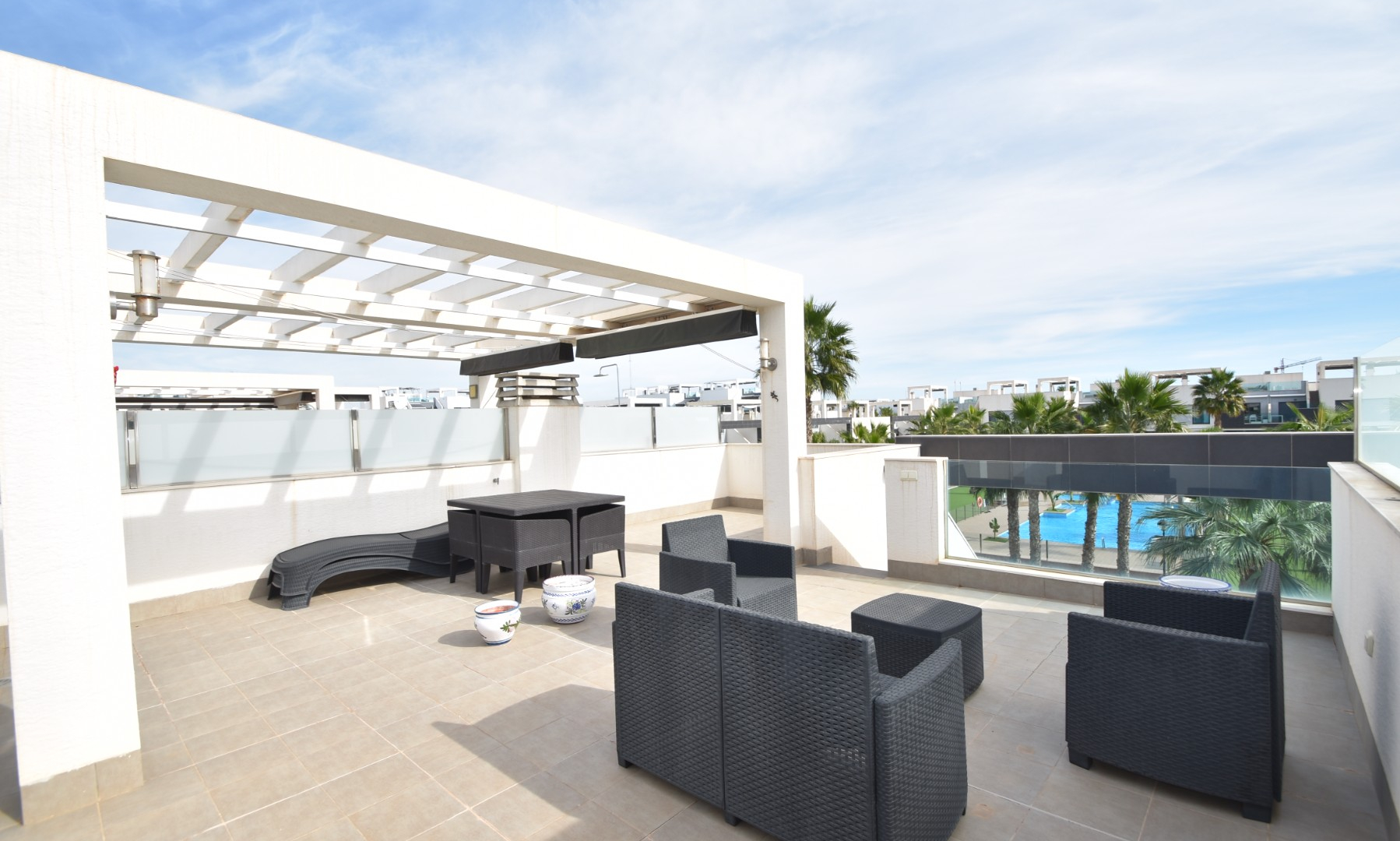 This Fabulous, Modern style, two bedroom, two bathroom penthouse apartment is located in the highly sought-after residential area of El Raso, Guardamar del Segura on the Costa Blanca South. Within walking distance you will find a great choice of amenities including; bars, restaurants, supermarket, pharmacy, hairdressers, vets, a local bus route plus El Raso also has its own entrance into the very popular Sunday Lemon Tree Market. The stunning sandy beaches of El Moncayo and Guardamar del segura are just a 5 minute drive away with La Mata beach and its wonderful boardwalk also just a 10 minute drive away. For the keen golfer there are plenty of fantastic golf courses nearby including; La Finca, La Marquesa, Villamartin, Campoamor and Las Ramblas.