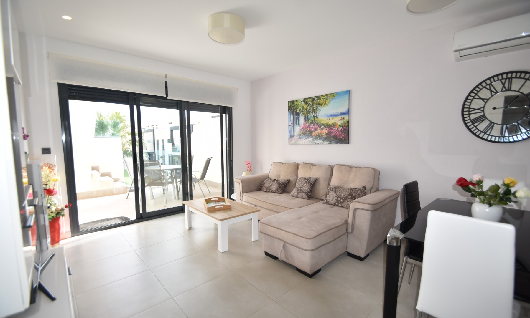 The apartment has many extras including air conditioning and heating, LED lighting in the kitchen and bathrooms, sun shades on the terrace, and is sold fully furnished and ready to move into!
