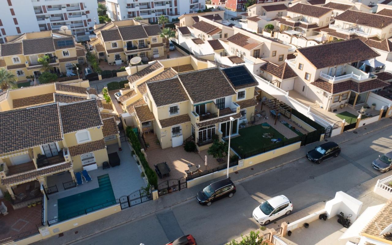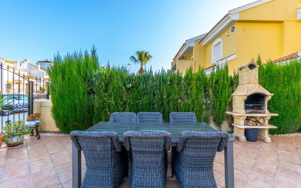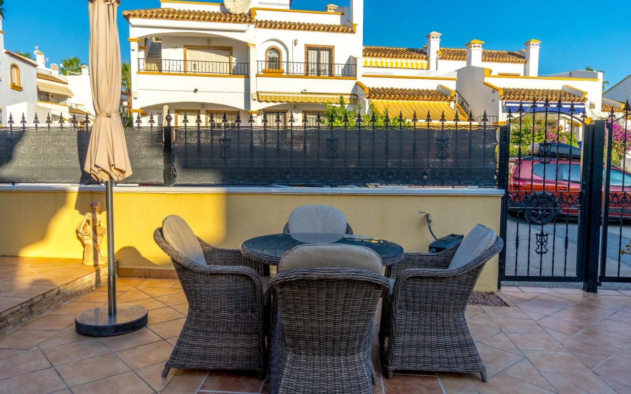 This Delightful, nicely presented, three bedroom, two bathroom semi-detached villa is located in Costa Flamenca Golf II, Los Dolses, Orihuela Costa on the Costa Blanca South. Its location is privileged as it is close to a wide range of shops, restaurants and services and within walking distance of the famous La Zenia Boulevard shopping centre, known for its wide variety of fashionable shops, restaurants and leisure areas. For golf lovers, there are three 18-hole golf courses within 2 km. The AP-7 motorway is only 1 km away, offering excellent connections to the region and for the beach lovers there are sandy beaches all along the Orihuela Costa holiday strip within an easy 5/10 minute drive.