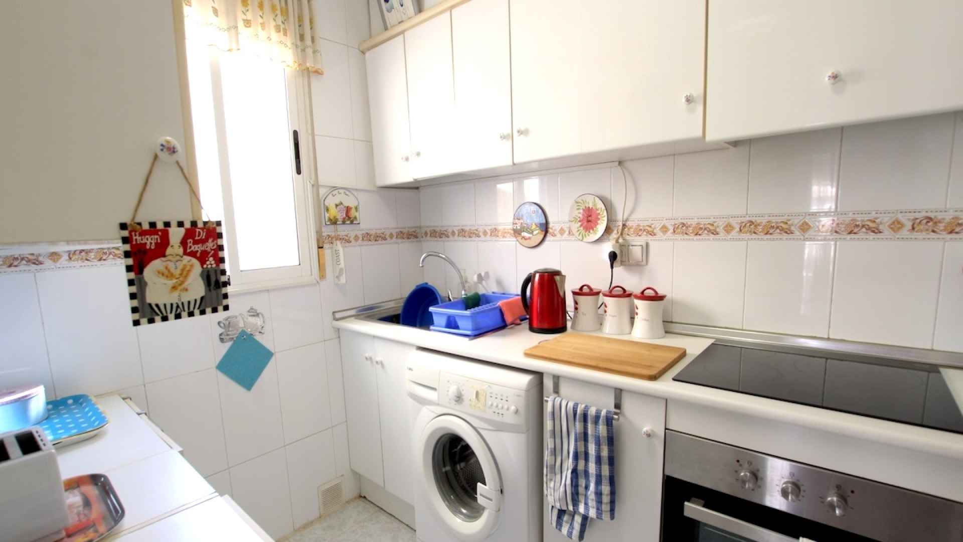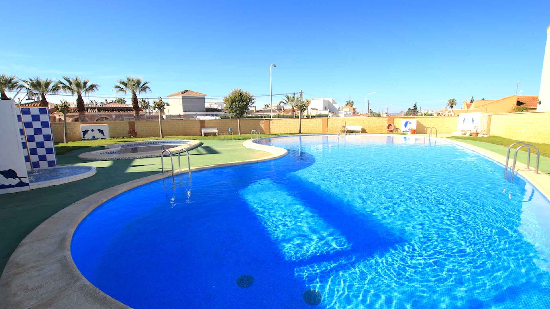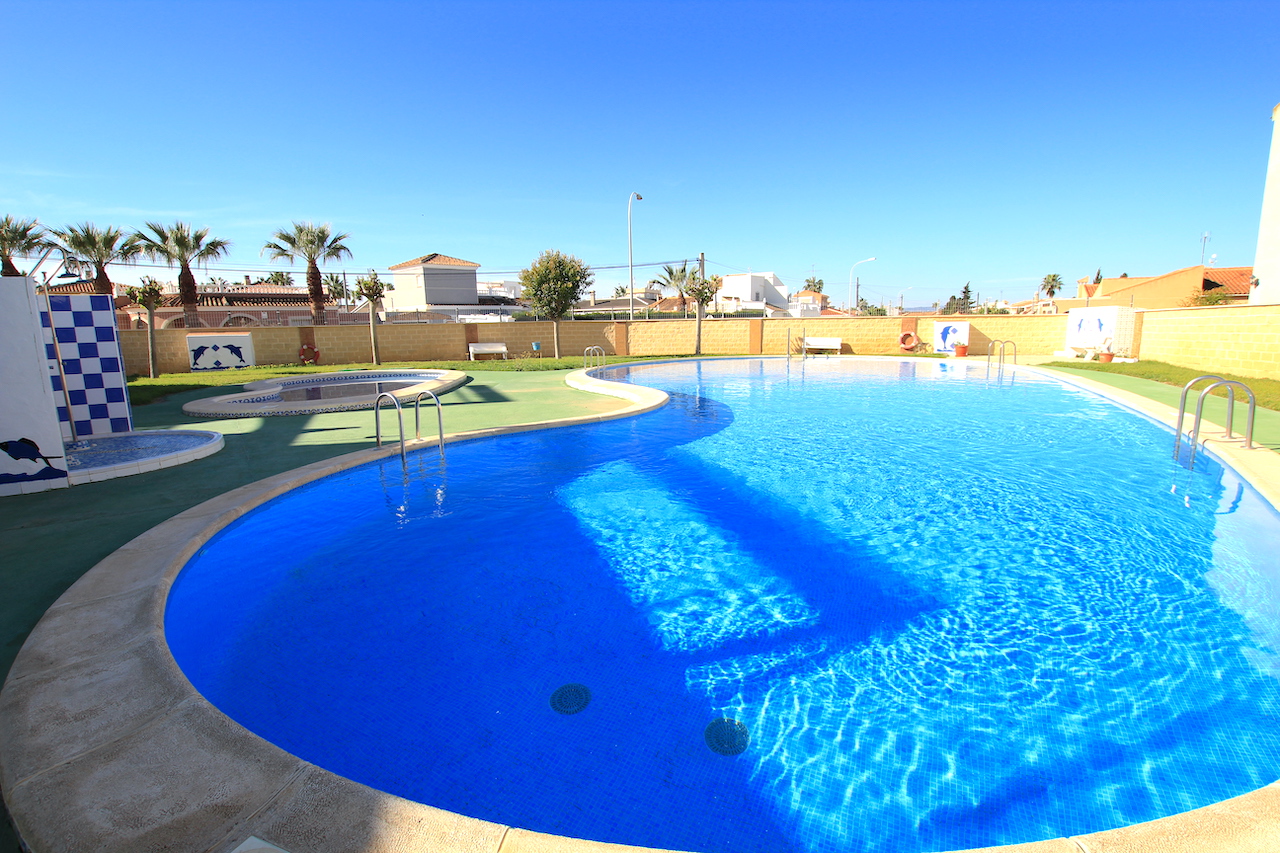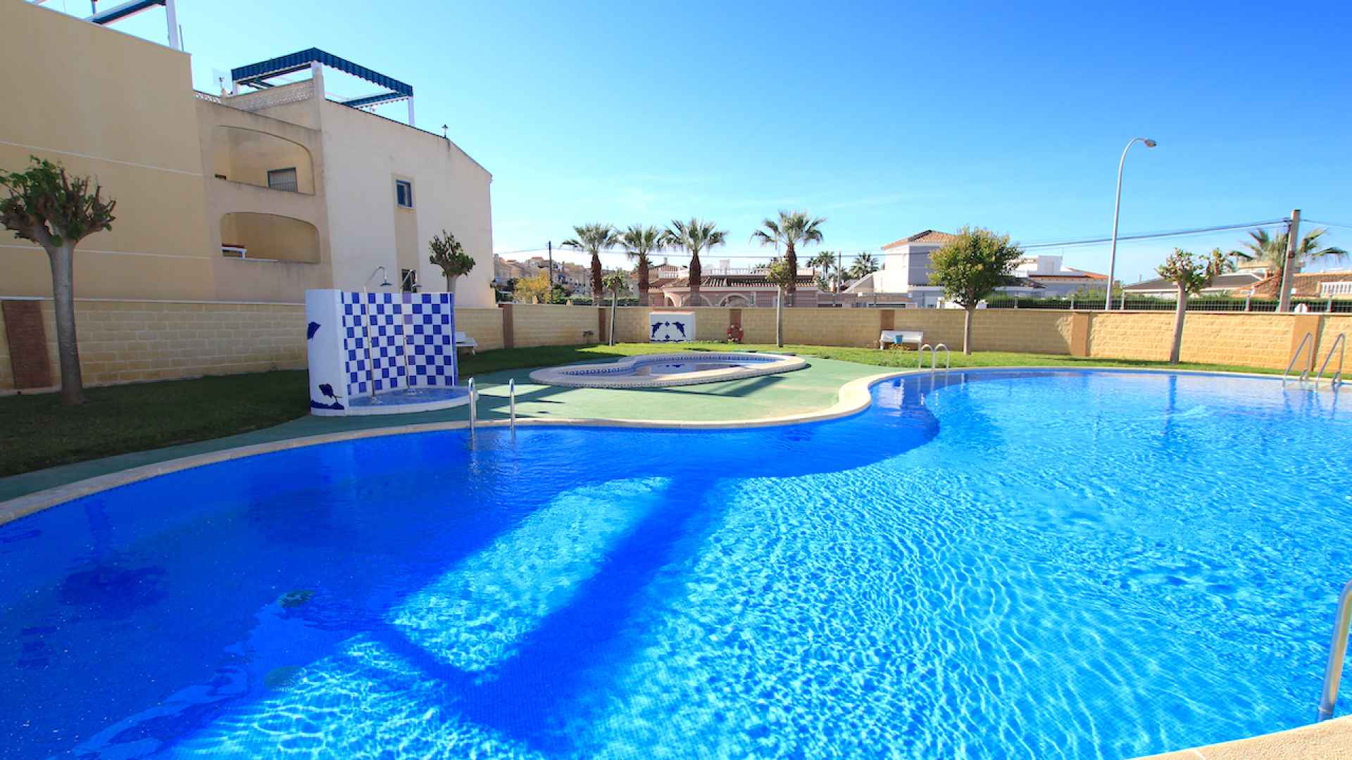 This nicely presented, two bedroom top floor is located in the popular El Chaparral area of Torrevieja on the Costa Blanca South. The area is surrounded by an abundance of amenities and has a main bus route that will take you into the main part of the city. The property is situated on a well maintained urbanisation with a lovely communal pool and garden area. In just a 5 minute drive you will find the wonderful Habaneras shopping mall, Carrefour superstore plus a multi-screen cinema and bowling alley. Also nearby you have a great choice of sandy beaches and coves along with the wonderful seafront promenade and Marina. For the keen golfer there are some wonderful golf courses in the area including; Villamartin, Campoamor, Las Ramblas, La Finca & La Marquesa.