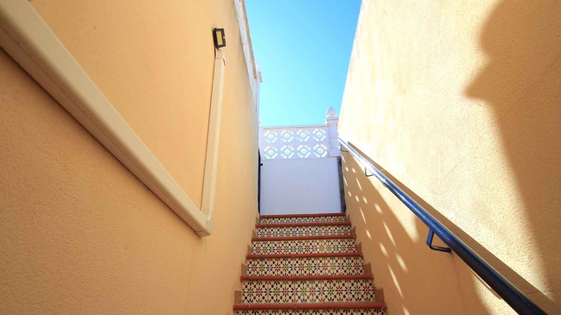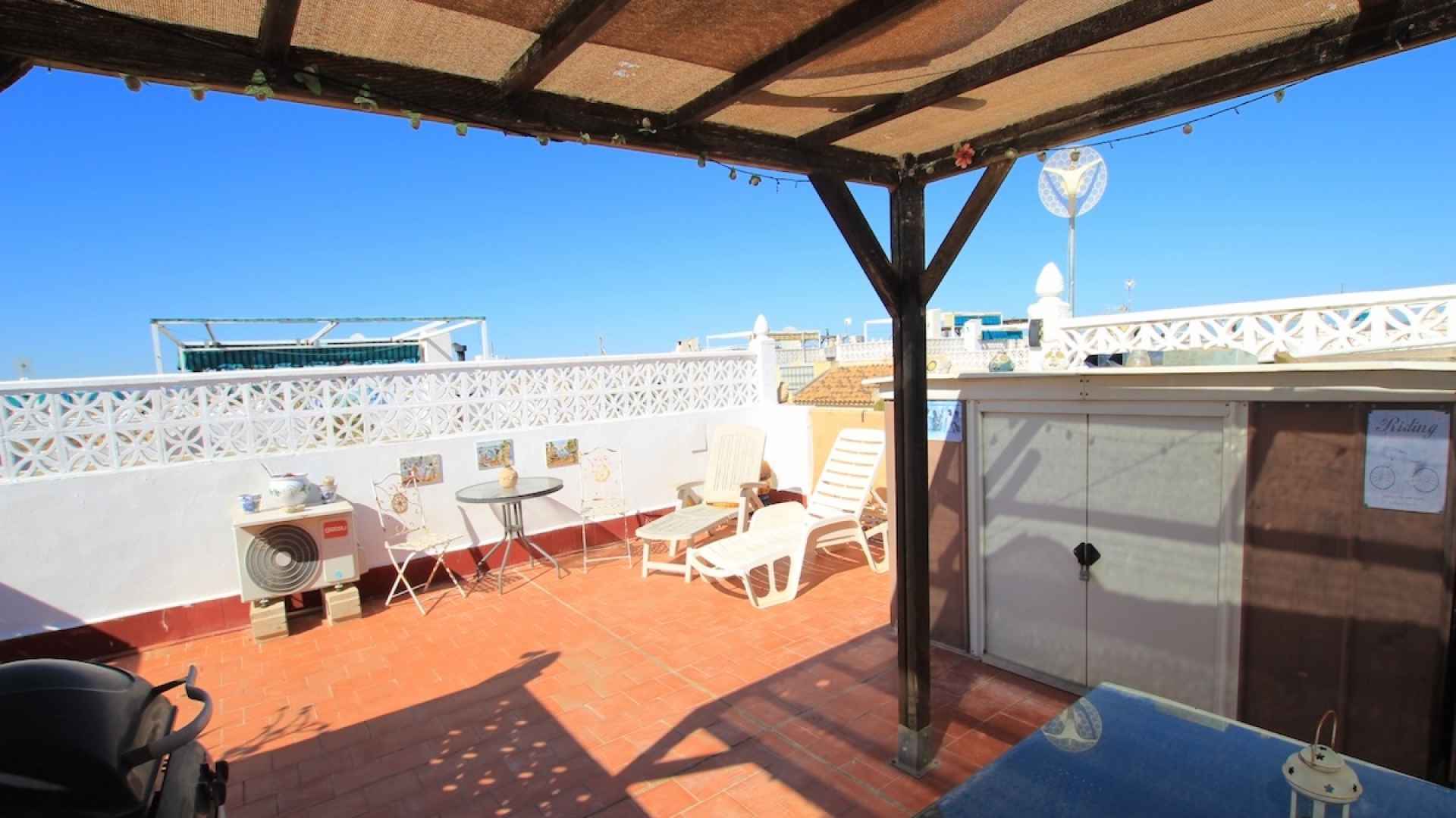 External stairs lead up to a spacious, private sun-drenched private solarium, thoughtfully designed for year-round enjoyment. This impressive outdoor space includes a covered dining area and plenty of room for sunbathing and entertaining under the Spanish sun.