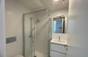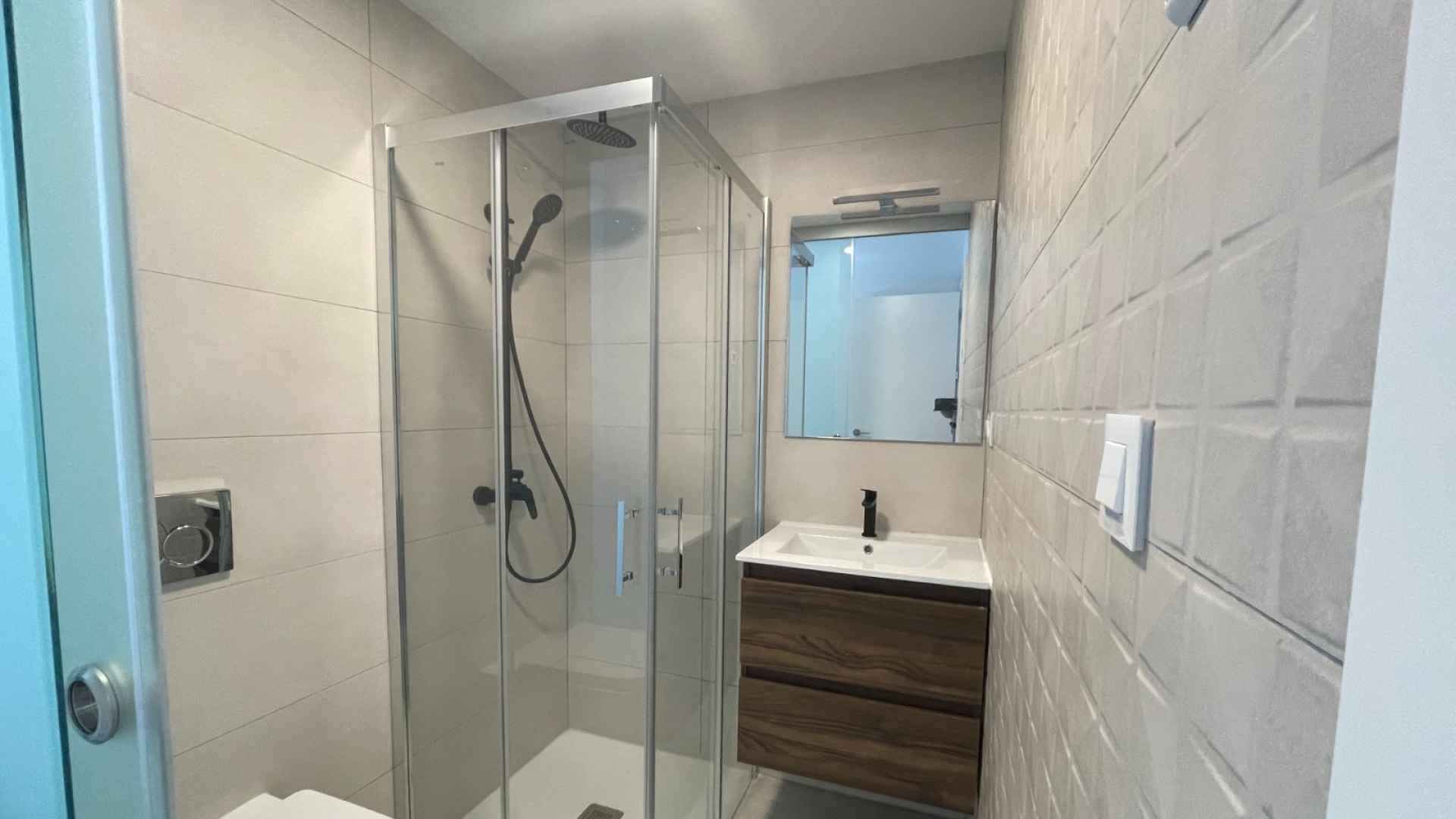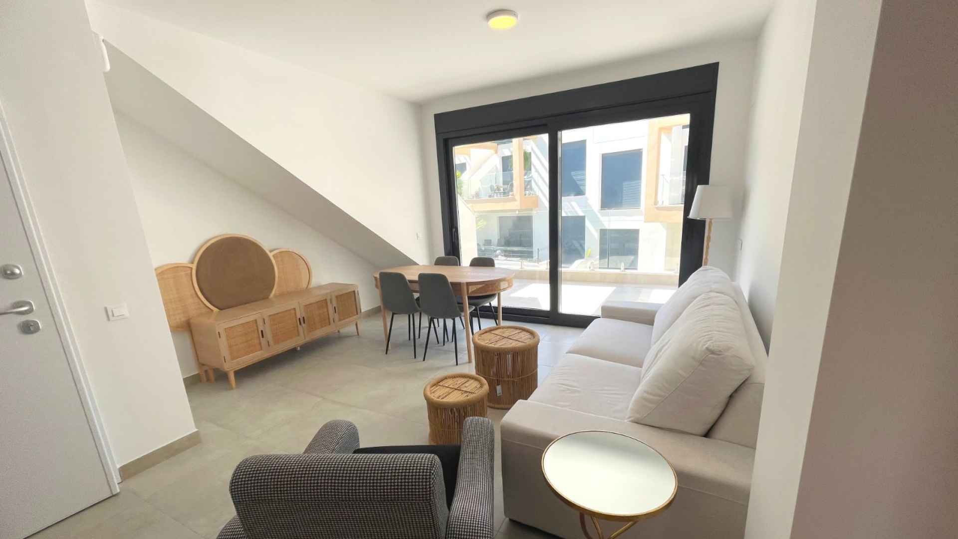 Built in 2023, this stylish first-floor apartment boasts a modern design and bright interior. The open-plan living area features double sliding doors leading out to a partly covered sun terrace with views over the beautifully laid out communal pool area. The spacious fitted kitchen which is open plan to the living room offers ample work and storage space along with a breakfast bar. There are also two double bedrooms, both with built-in wardrobes, and two sleek shower rooms with under floor heating, one of which is en-suite.