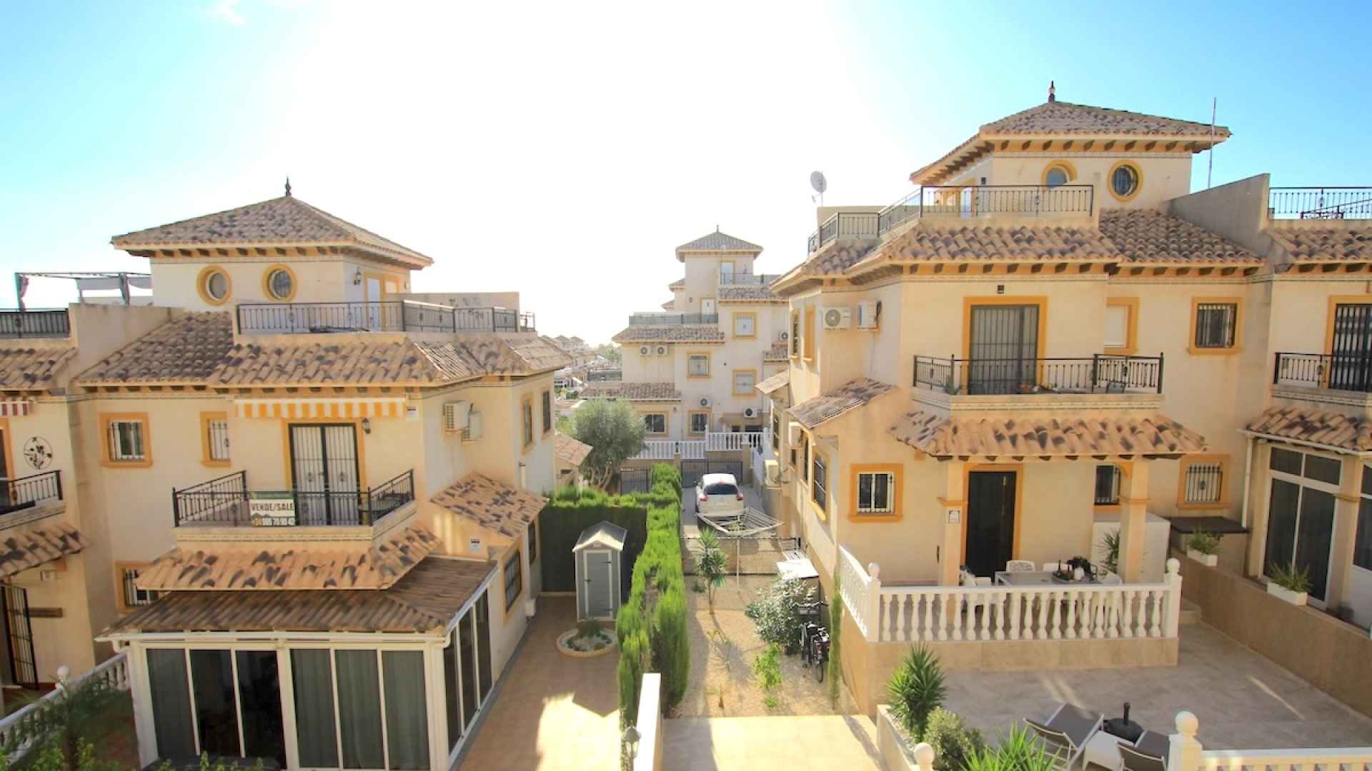 Villamartin is a very popular area on the Orihuela Costa with its own beautiful golf course and with the Las Ramblas and Campoamor courses just a short drive away. The lovely sandy beaches of the Orihuela Costa are also nearby, as are the holiday resorts such as Playa Flamenca, Punta Prima, Cabo Roig, La Zenia and Campoamor. Villamartin itself has many amenities such as shops, restaurants, bars, banks & supermarkets as well as the famous Villamartin Plaza with its many restaurants and bars set amongst tropical plants and Spanish tiling. Villamartin also has its own international school called El Limonar. Both Alicante and Corvera airports can be reached in a 45/50 minute drive.